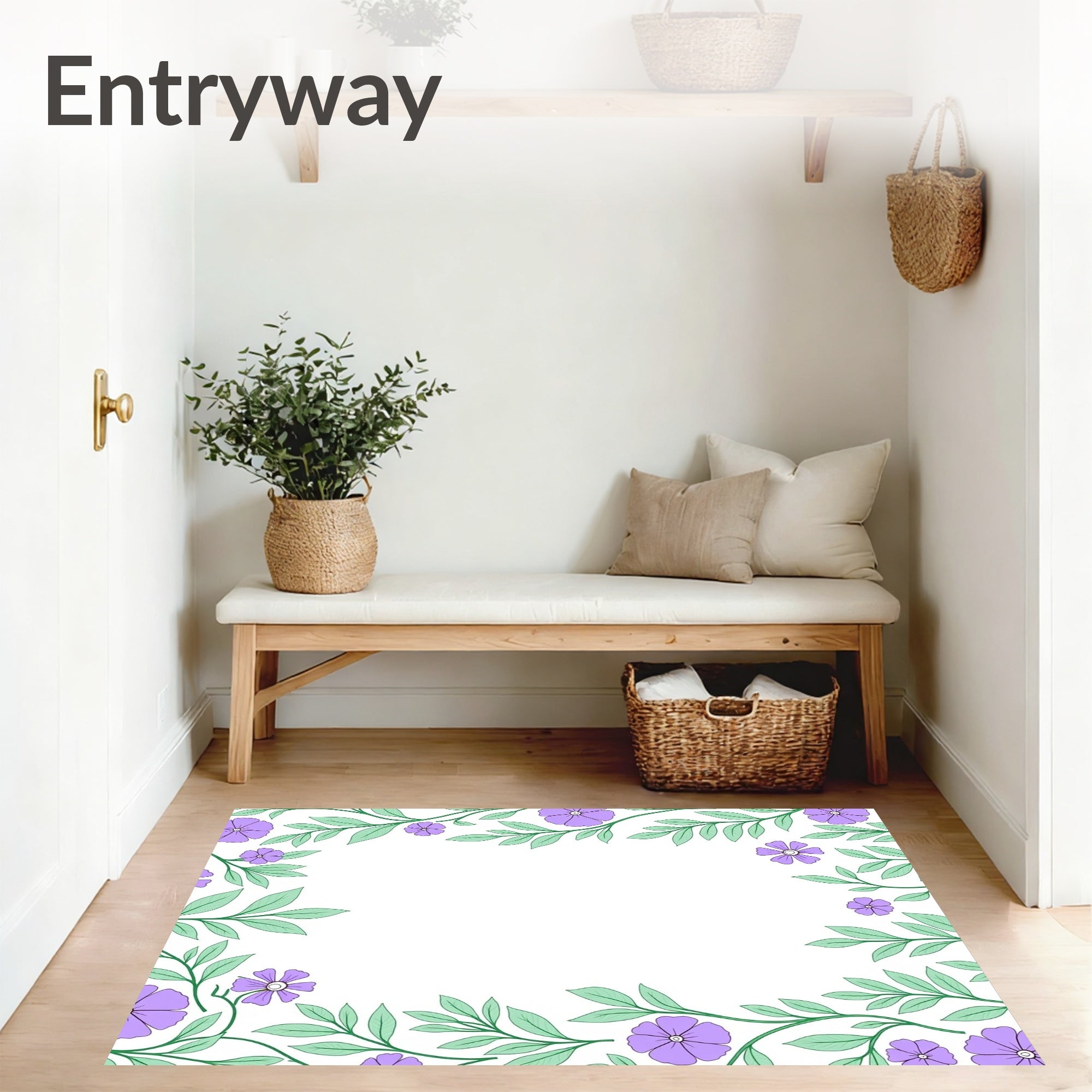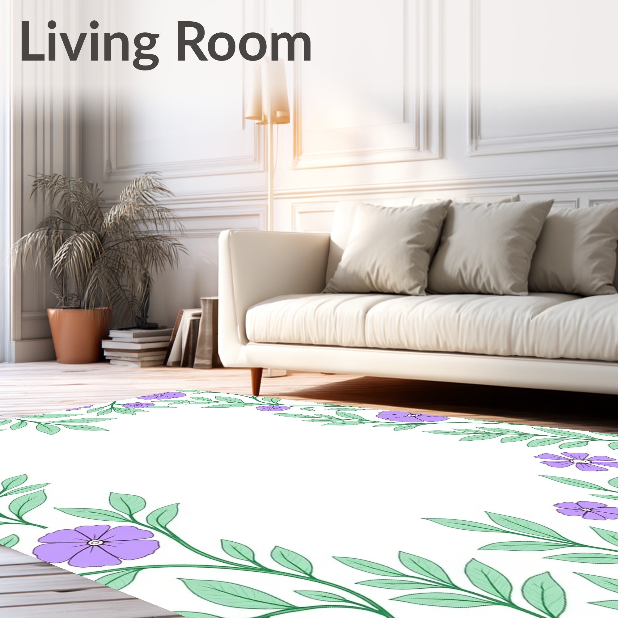 Flatwoven High Traffic Area Rug, Floral Botanical Flannel Personal Image Text Engraving, Non Slip, Stain Resistant, Washable Area Rugs for Living Room, Bedroom (Purple) Overview: