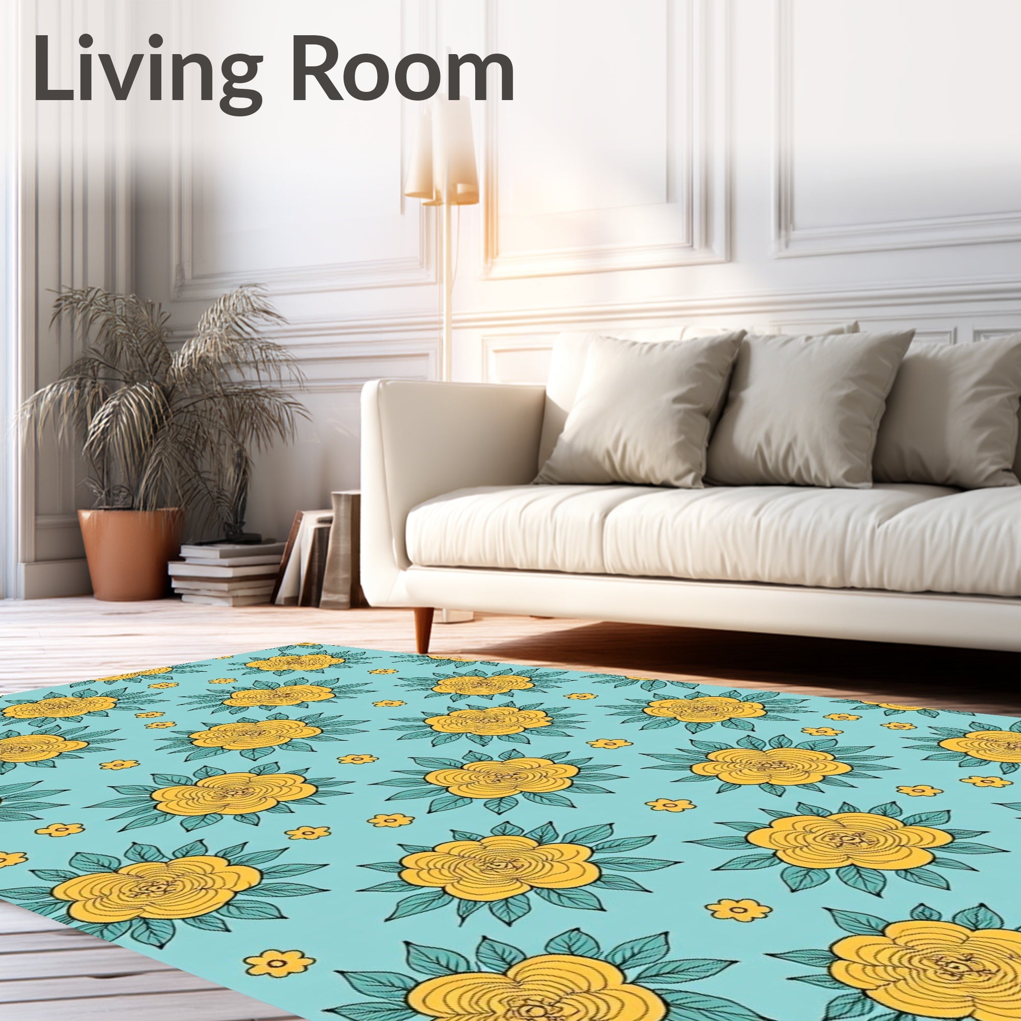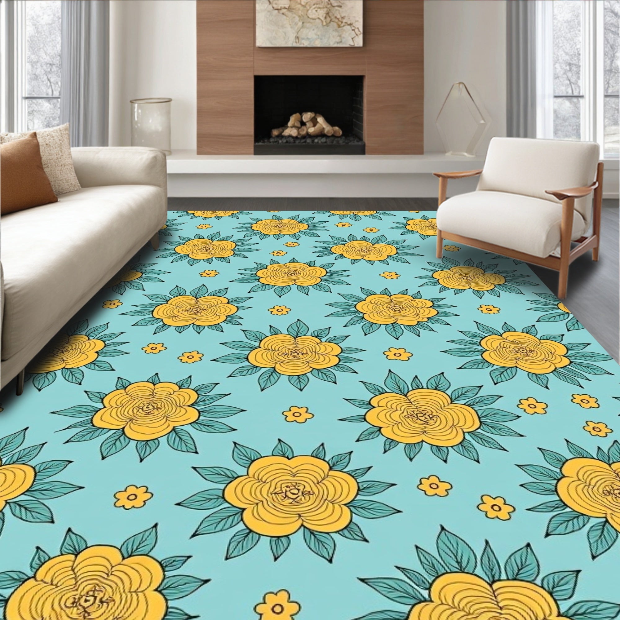 Flatwoven High Traffic Area Rug, Floral Bouquet Arrangement, Non Slip, Stain Resistant, Washable Area Rugs for Living Room, Bedroom (Yellow) Overview:
