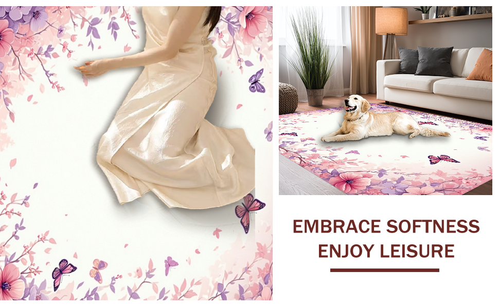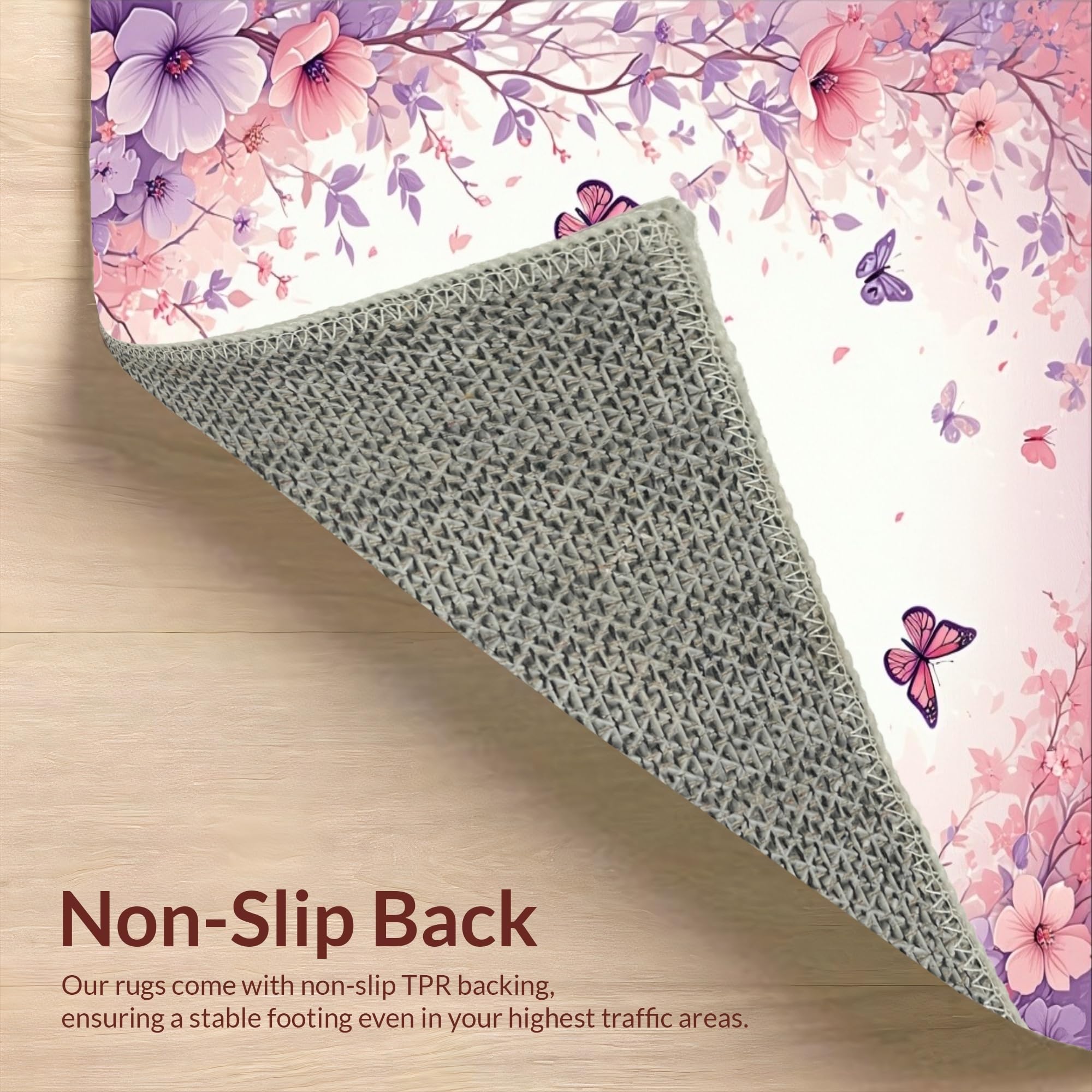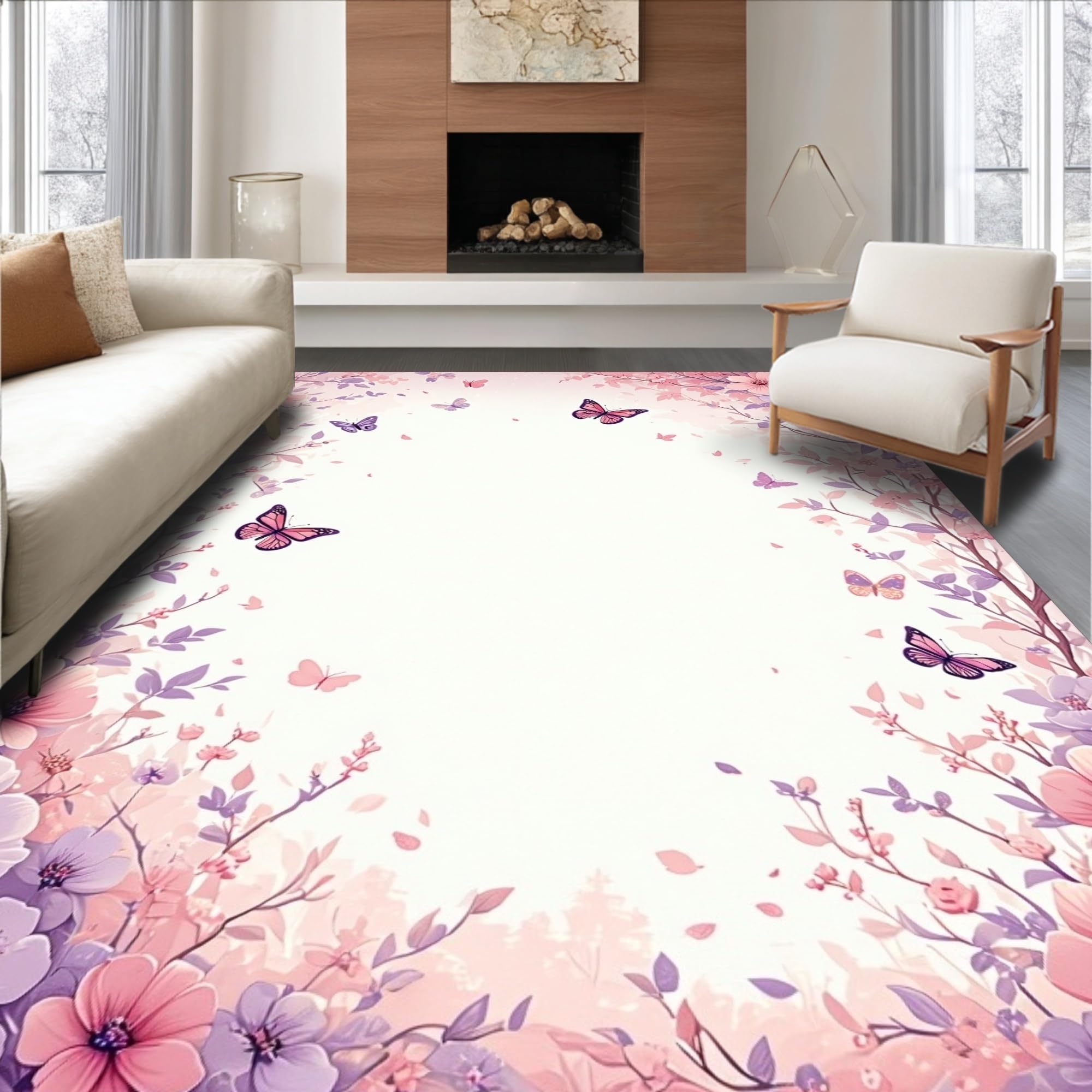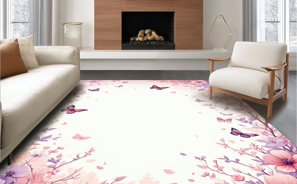 Ultra Soft Area Rug, Non Slip, Stain Resistant, Washable Area Rugs for Living Room, Bedroom, Floral Butterfly Pastel Aesthetic(Pink) Overview: