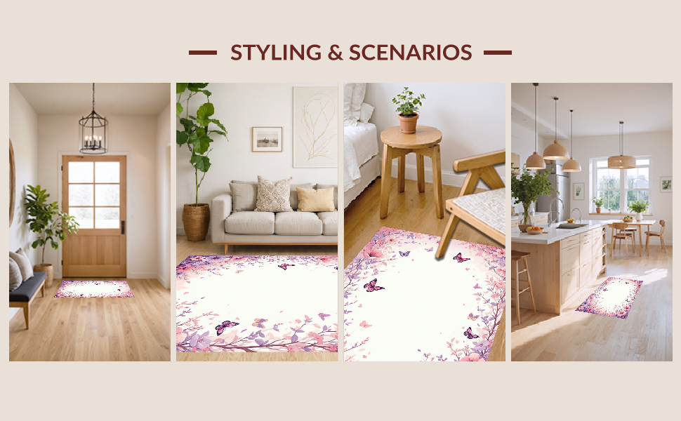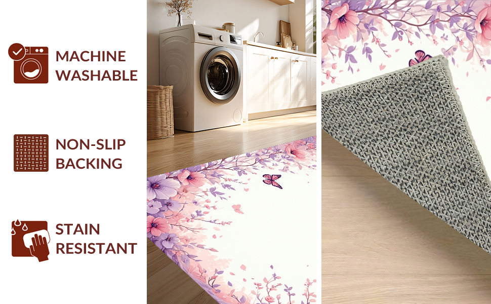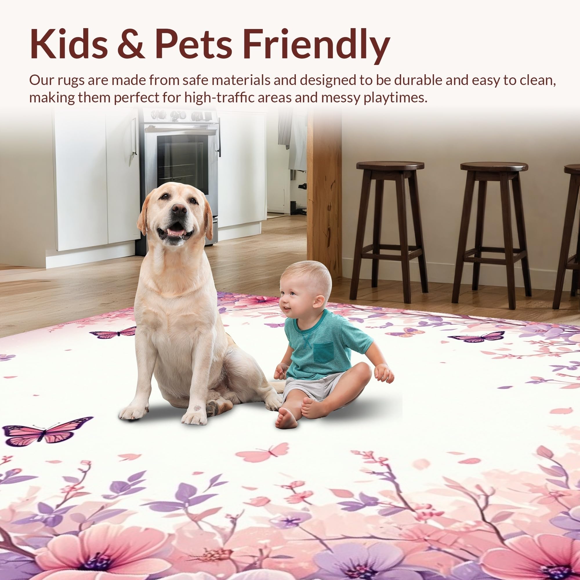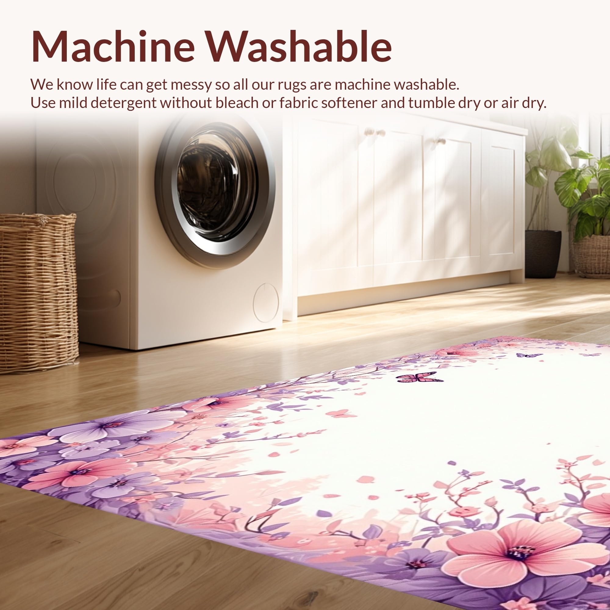 Ultra Soft Area Rug, Non Slip, Stain Resistant, Washable Area Rugs for Living Room, Bedroom, Floral Butterfly Pastel Aesthetic(Pink) Overview: