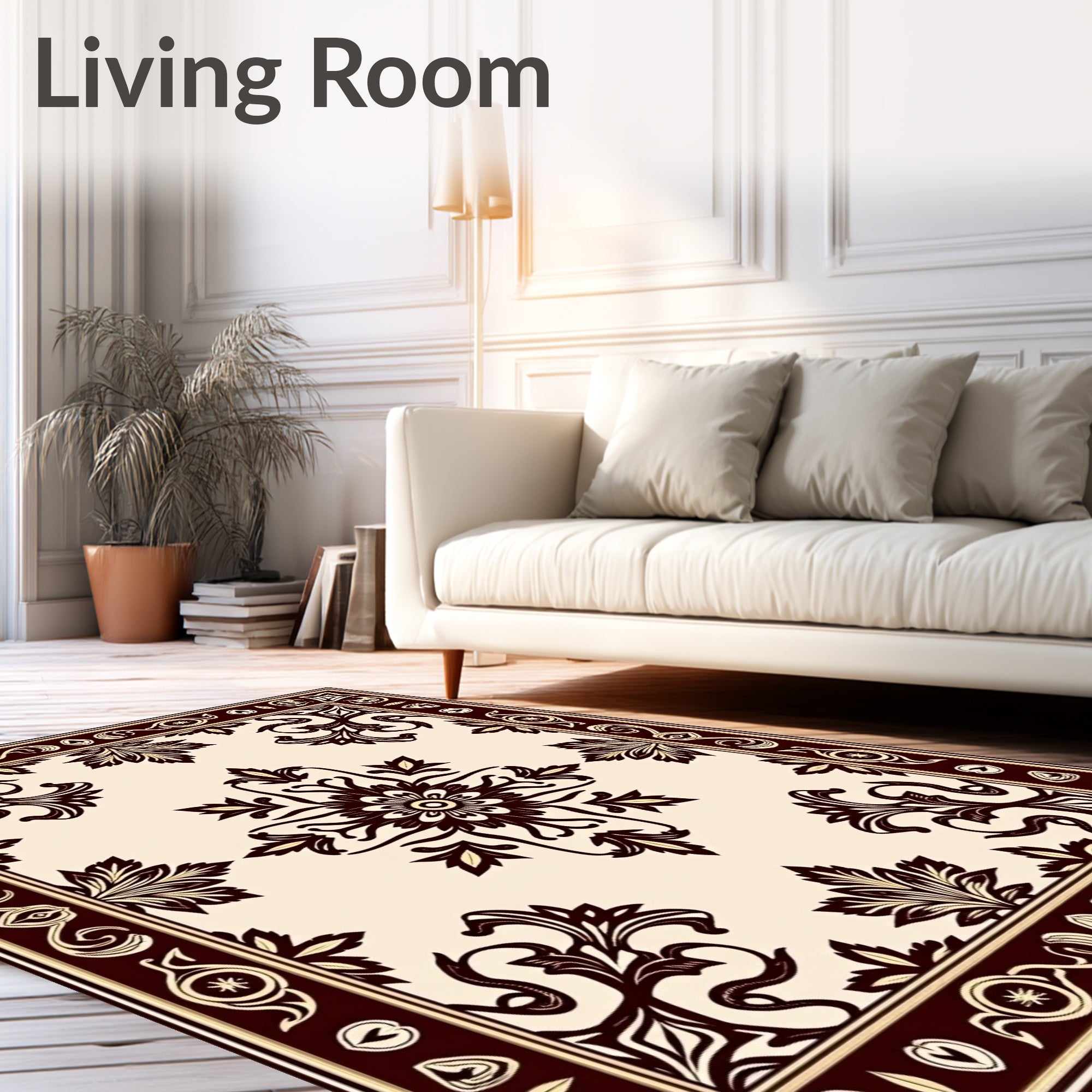 Ultra Soft Area Rug, Non Slip, Stain Resistant, Washable Area Rugs for Living Room, Bedroom, Floral Damask Inspired Layout with Ornamental Swirls(Beige) Overview: