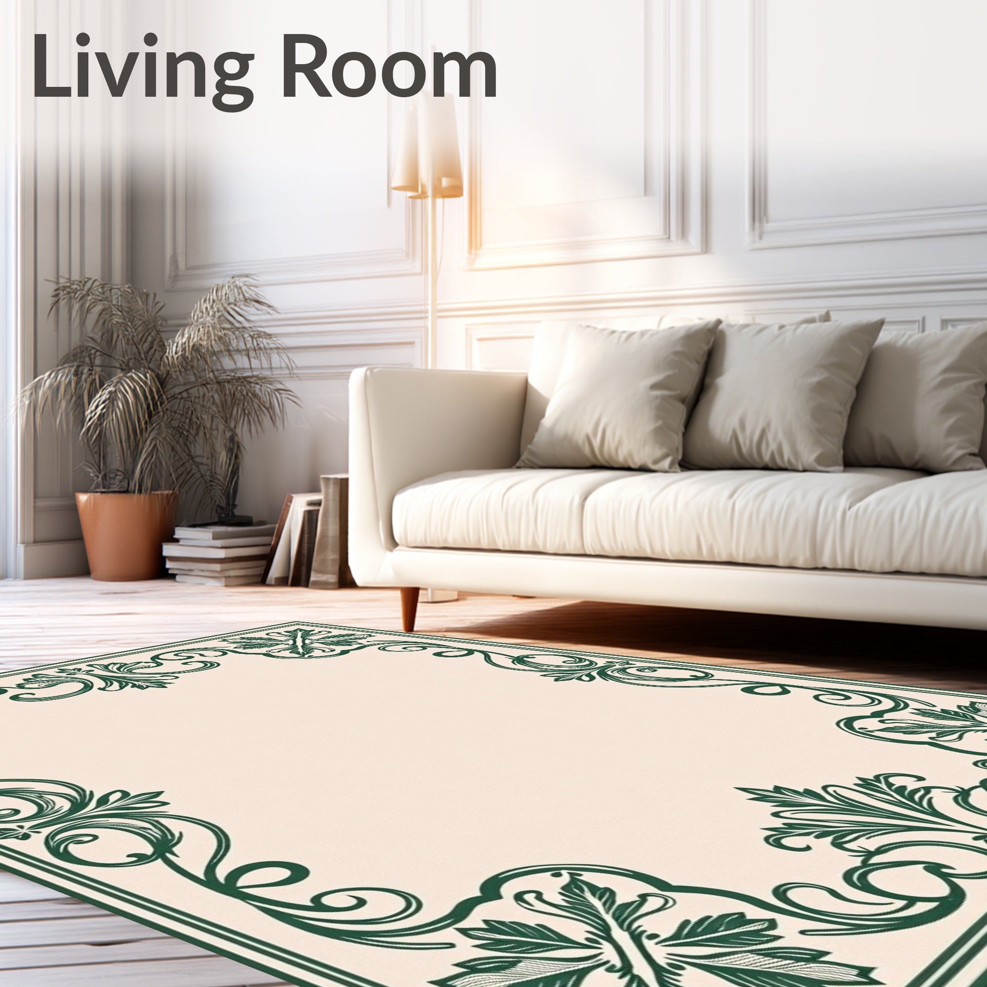 Ultra Soft Area Rug, Non Slip, Stain Resistant, Washable Area Rugs for Living Room, Bedroom, Floral Damask with Anti Slip Rubber Foundation(Ivory) Overview: