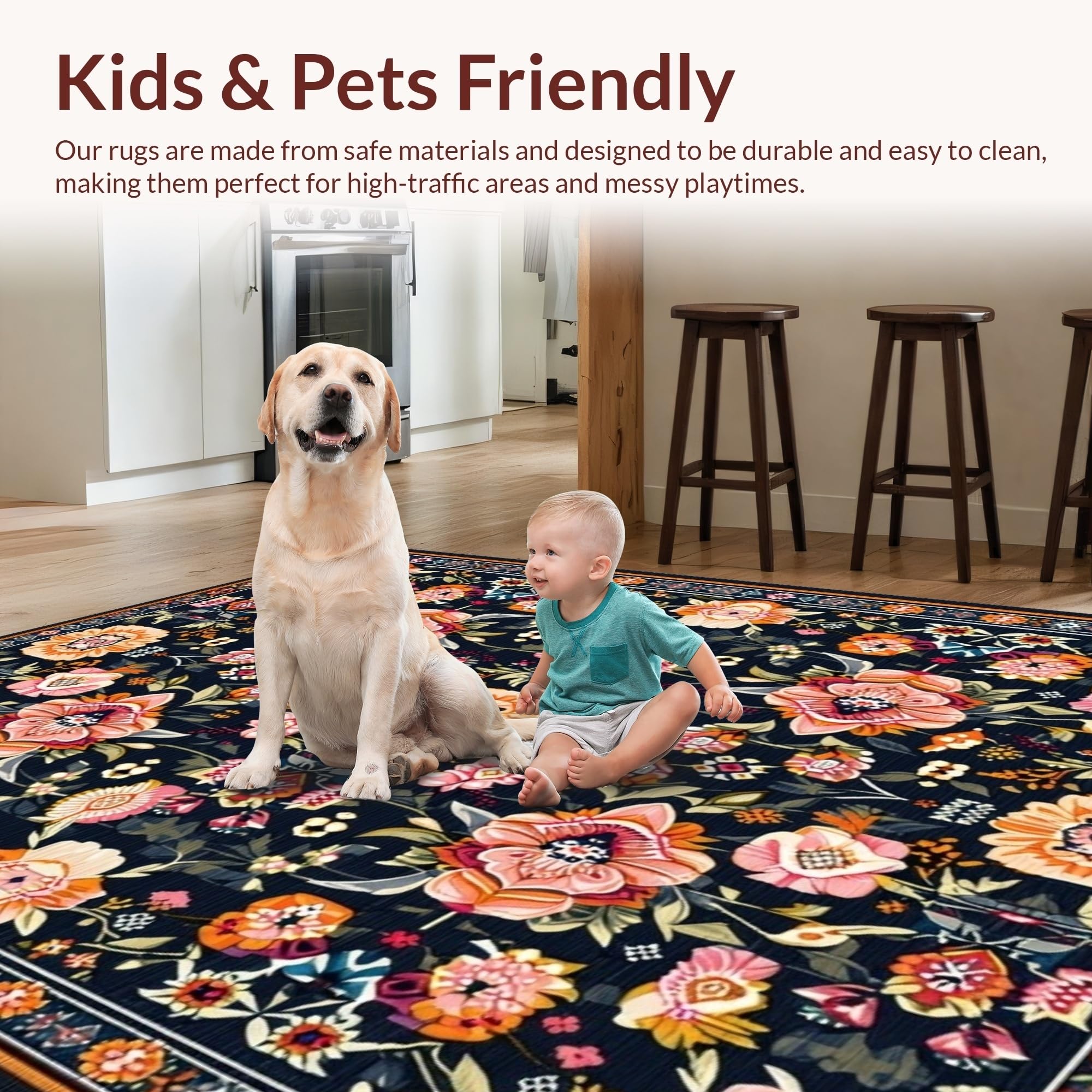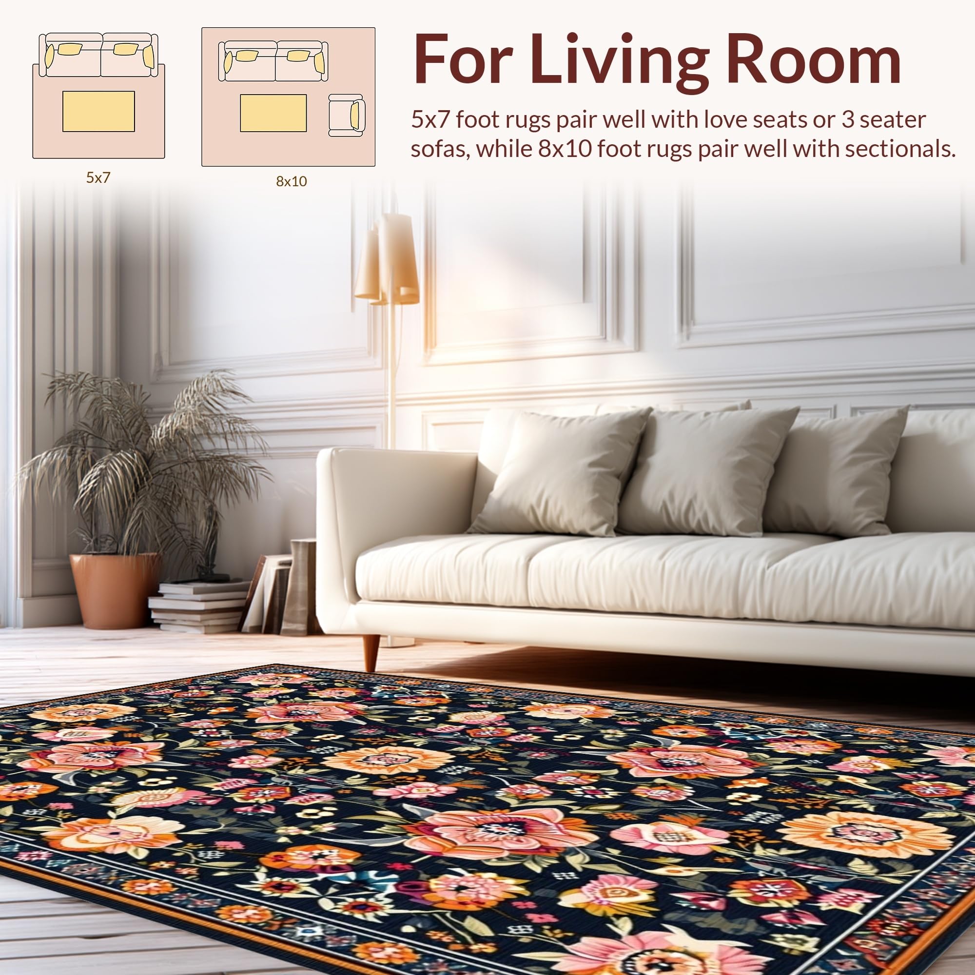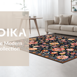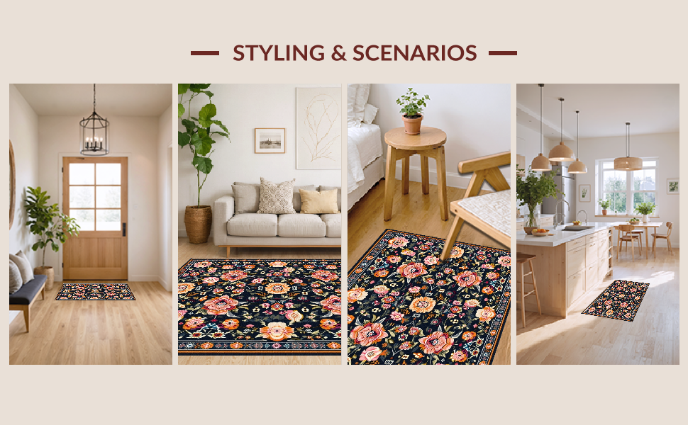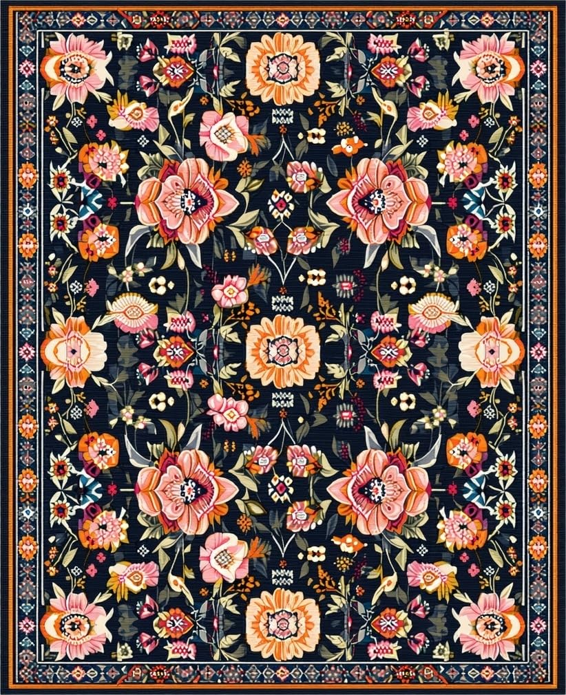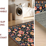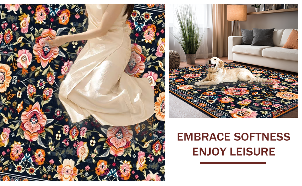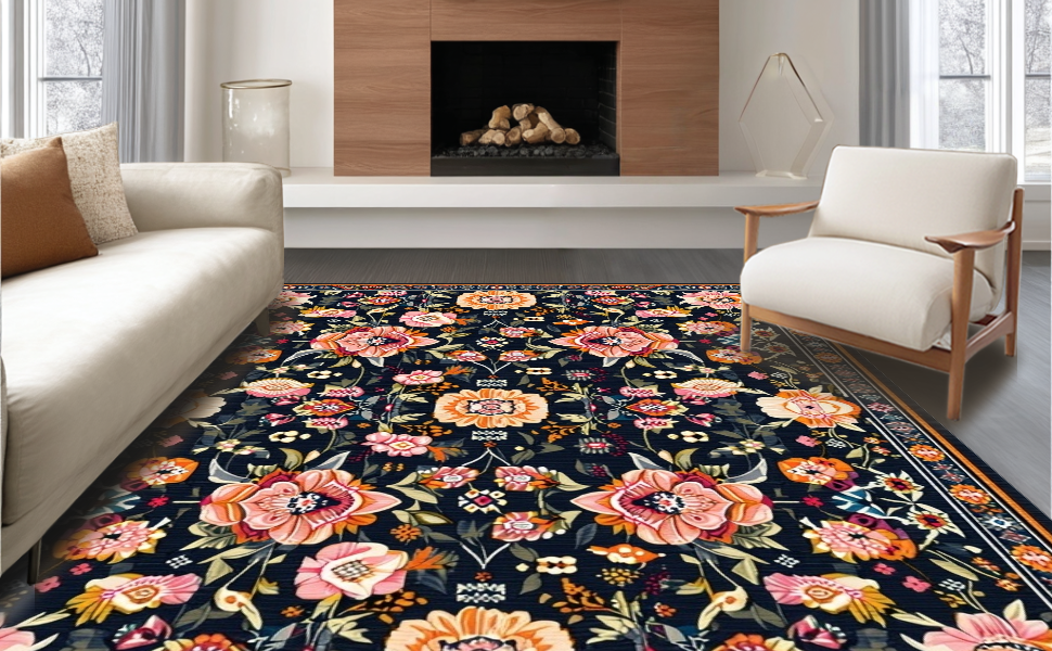Ultra Soft Area Rug, Non Slip, Stain Resistant, Washable Area Rugs for Living Room, Bedroom, Floral Elegance in Black Tones(Black) Overview: