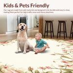 Ultra Soft Area Rug, Non Slip, Stain Resistant, Washable Area Rugs for Living Room, Bedroom, Floral Fusion Area Rustic Country Style Pink and Sage(Ivory) Overview:
