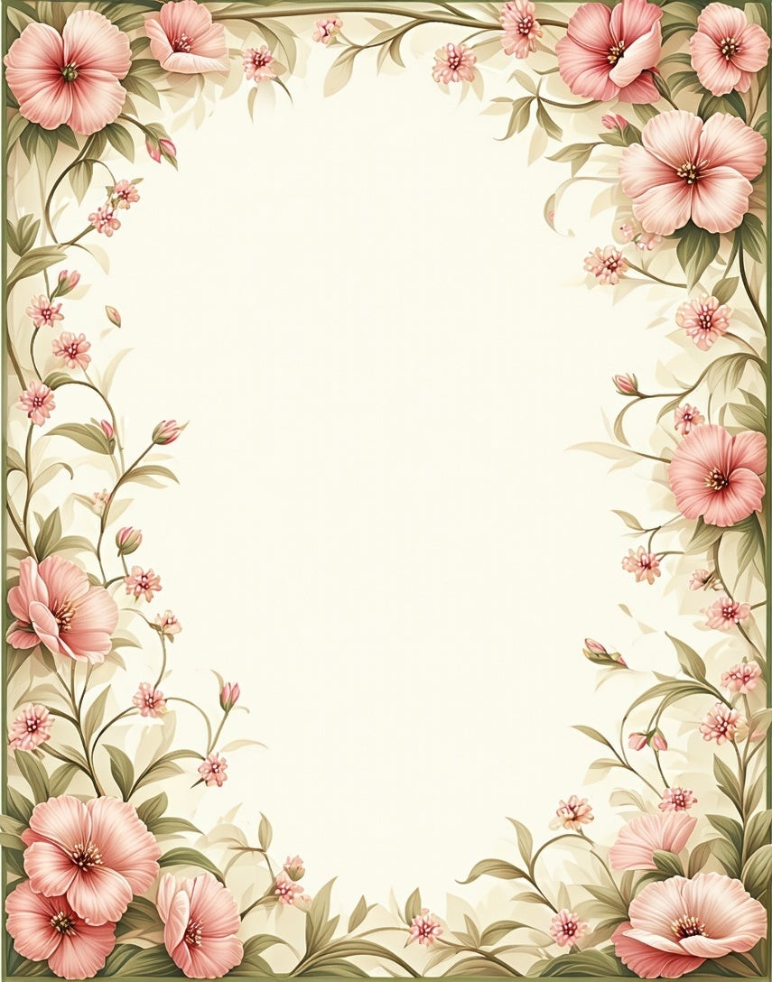 Floral Rustic Country Style Pink and Sage(Ivory)