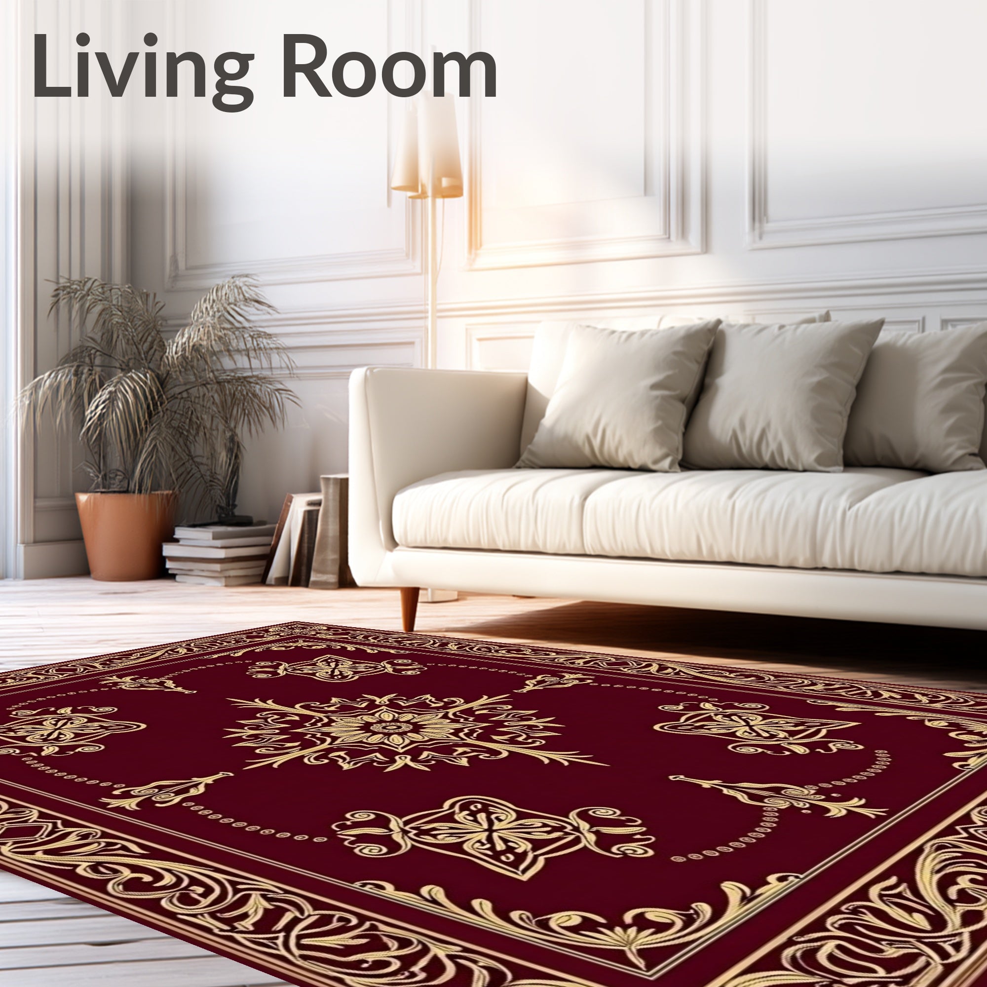 Ultra Soft Area Rug, Non Slip, Stain Resistant, Washable Area Rugs for Living Room, Bedroom, Floral Interlacing Botanical Jewel(Red) Overview: