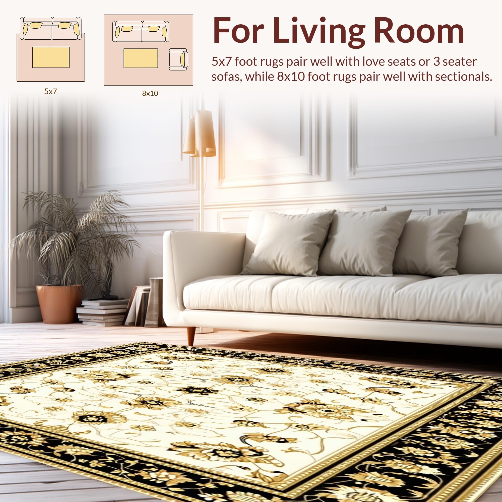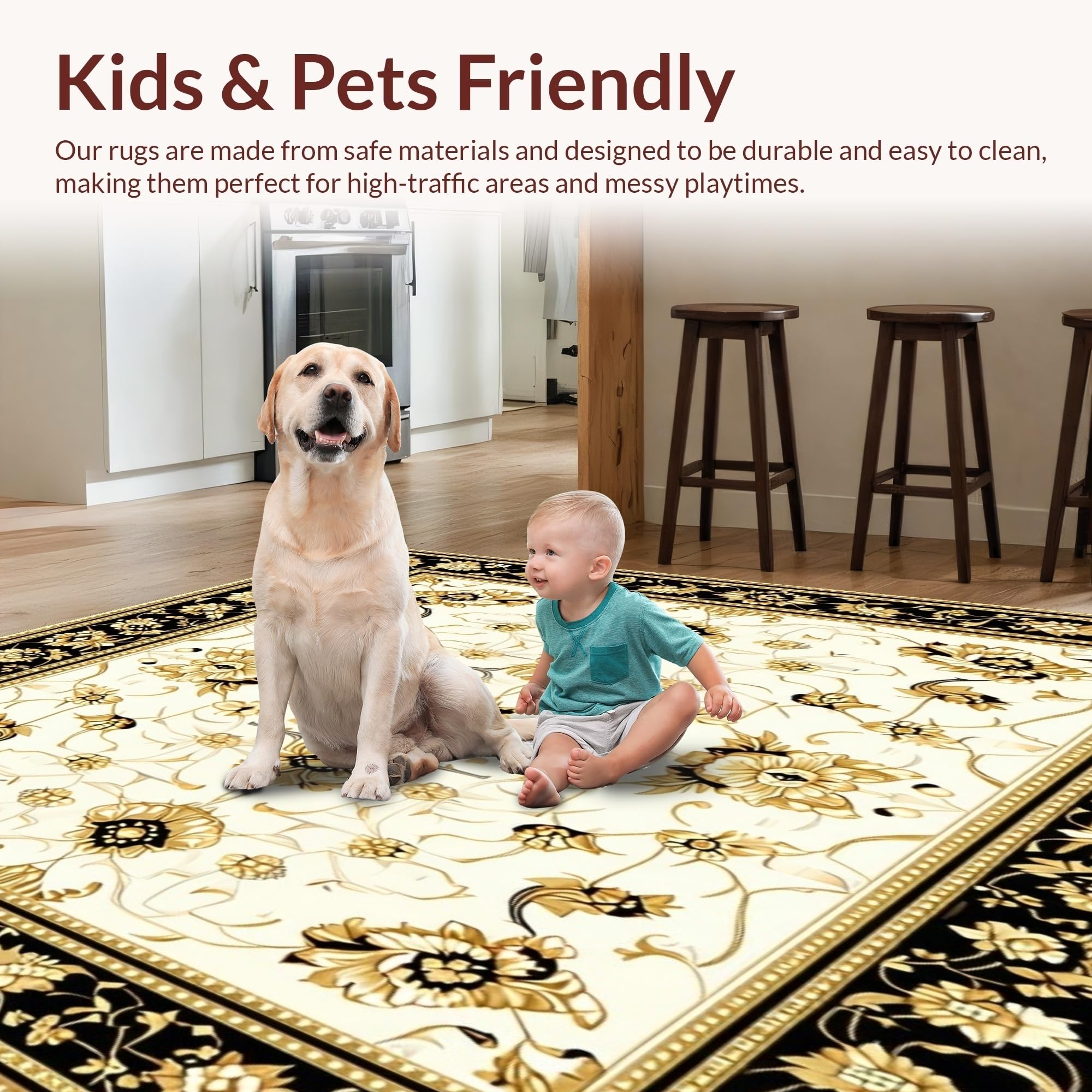 Ultra Soft Area Rug, Non Slip, Stain Resistant, Washable Area Rugs for Living Room, Bedroom, Floral Intricate Table Mat(Beige) Overview: