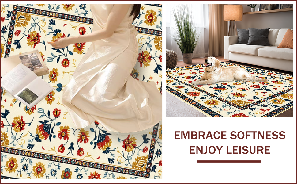 Ultra Soft Area Rug, Non Slip, Stain Resistant, Washable Area Rugs for Living Room, Bedroom, Floral Medallion Vintage(Beige) Overview: