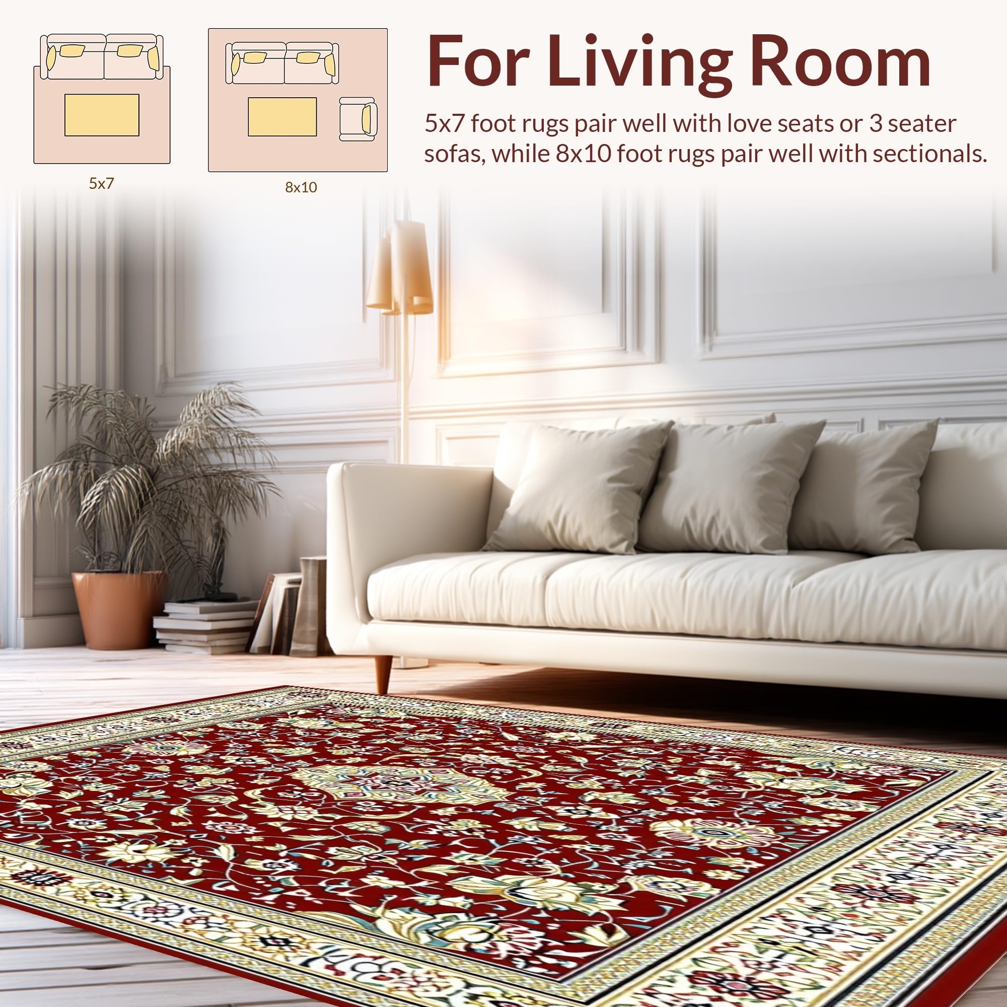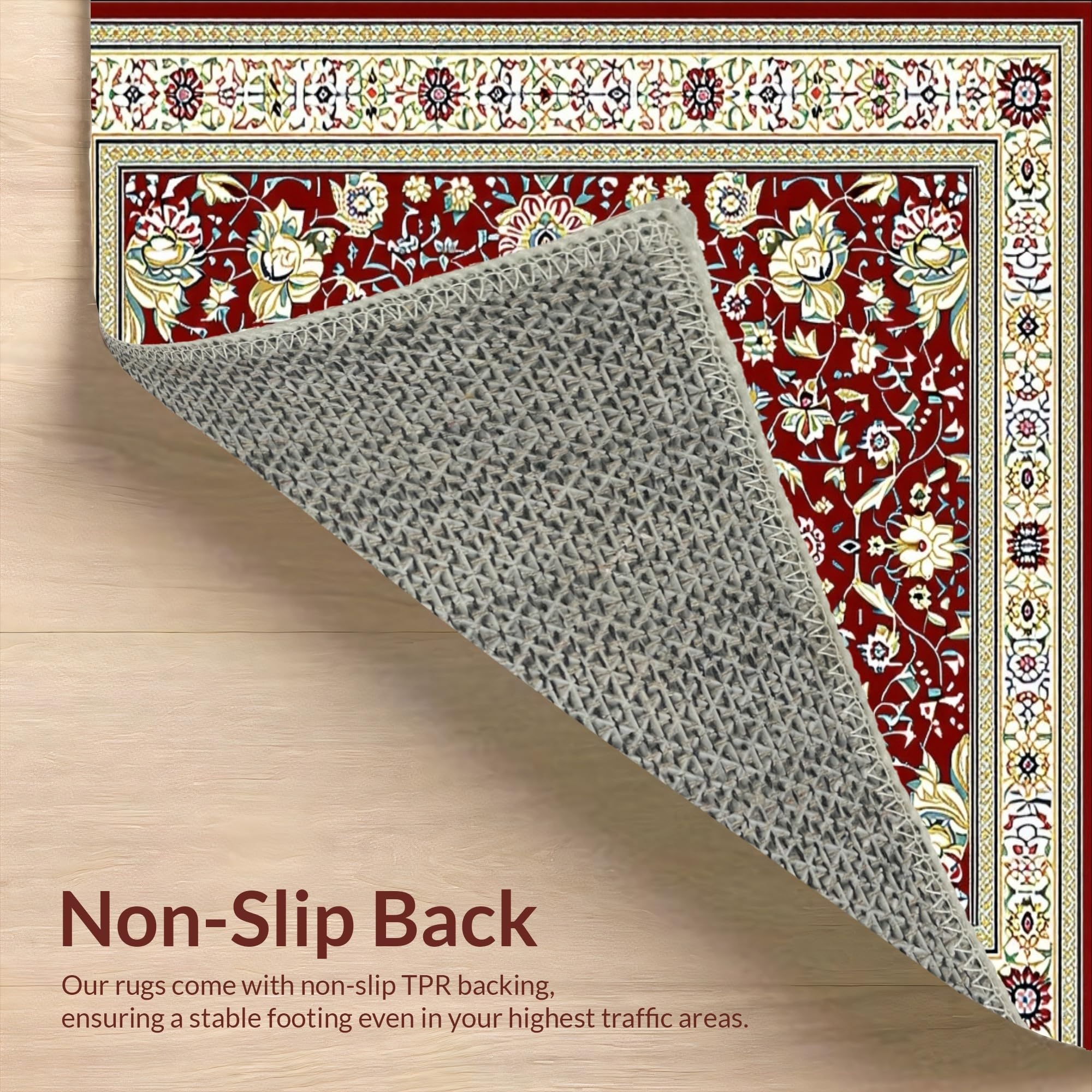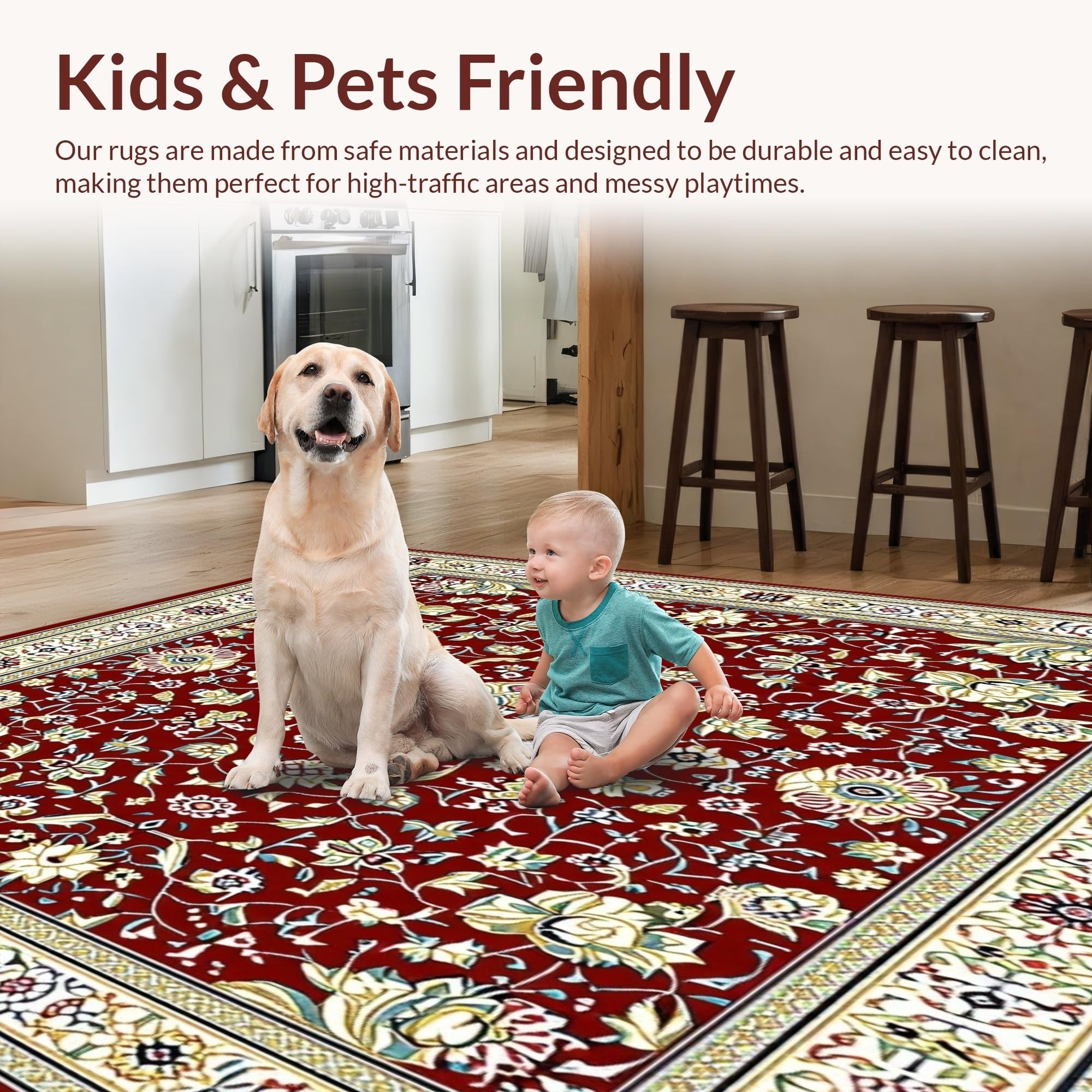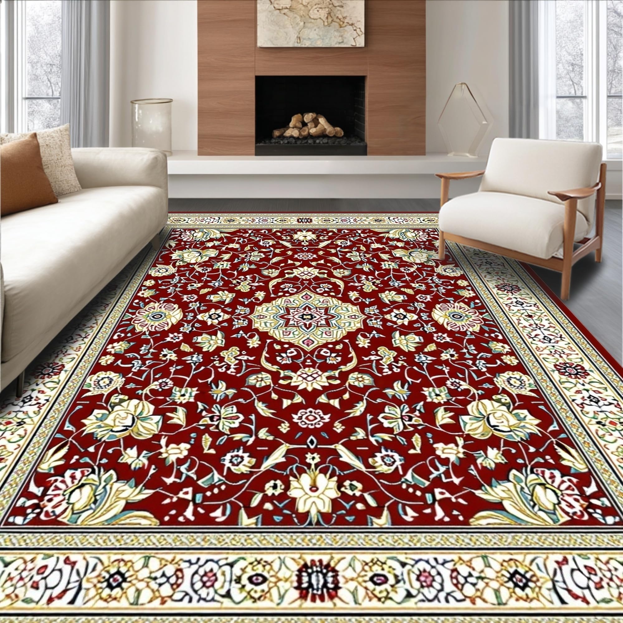 Ultra Soft Area Rug, Non Slip, Stain Resistant, Washable Area Rugs for Living Room, Bedroom, Floral Red Beige Area(Red) Overview: