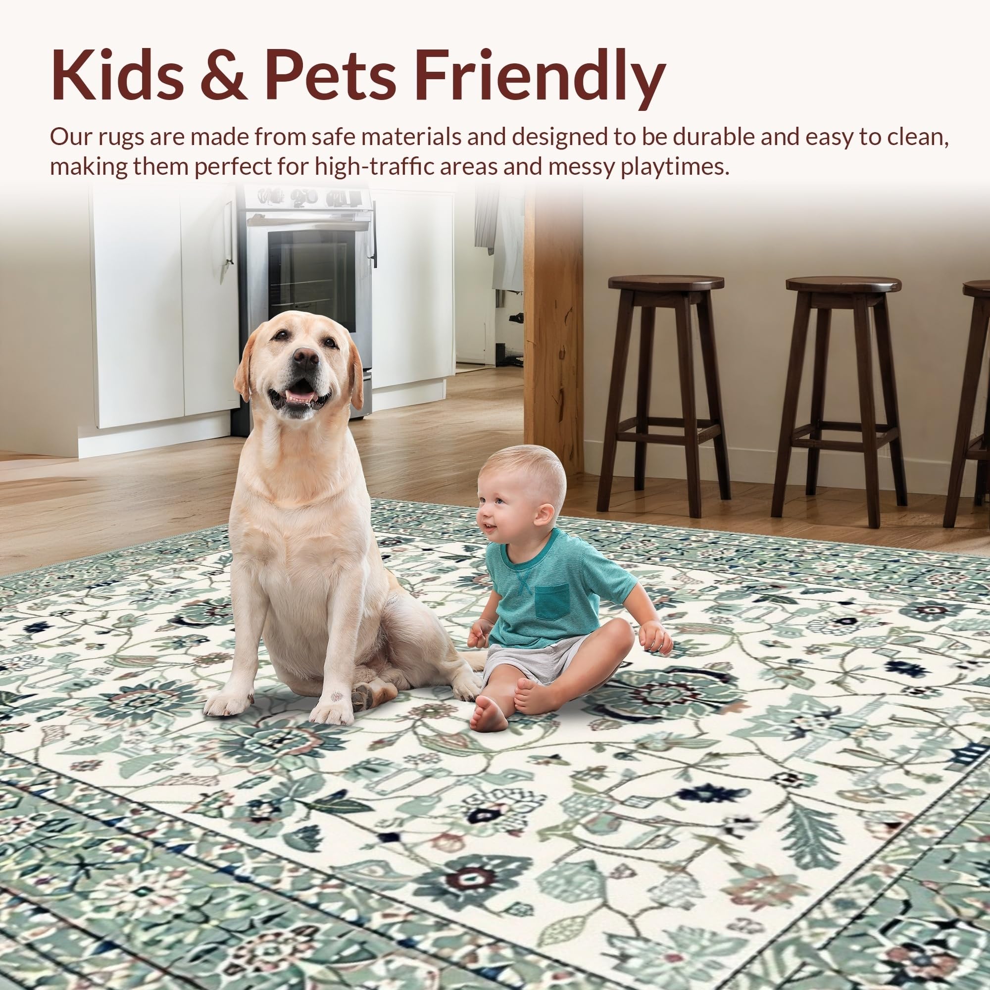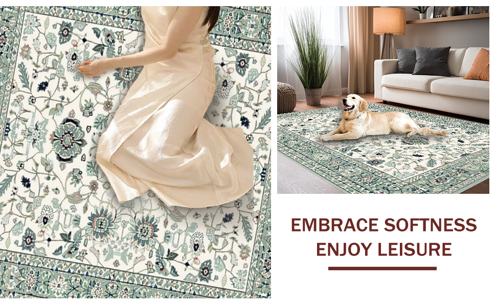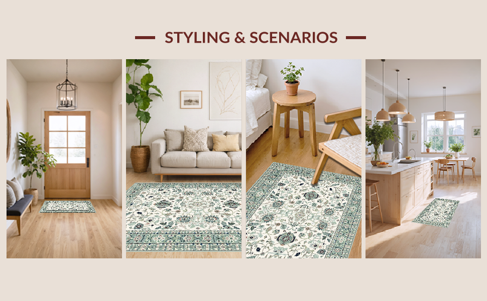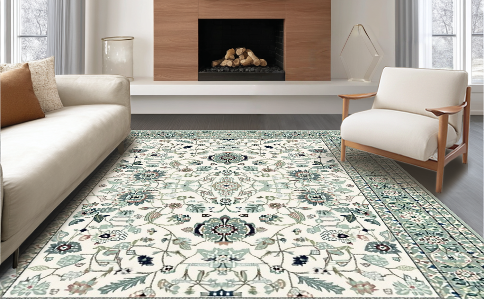 Ultra Soft Area Rug, Non Slip, Stain Resistant, Washable Area Rugs for Living Room, Bedroom, Floral Rustic Cottage Aesthetic(Beige) Overview:
