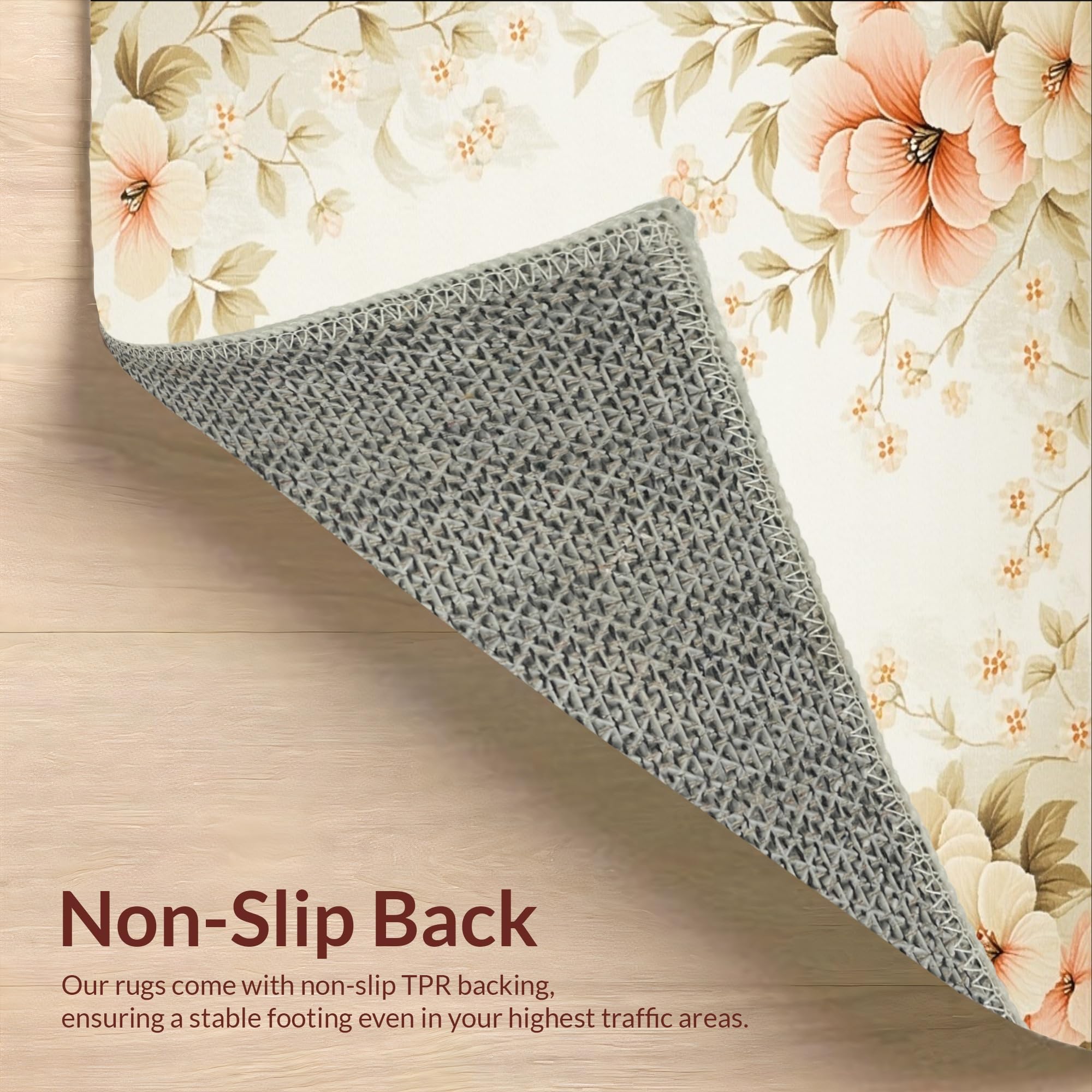 Ultra Soft Area Rug, Non Slip, Stain Resistant, Washable Area Rugs for Living Room, Bedroom, Floral Serenity Beige Elegant Bath Non Slip Shower(Ivory) Overview:
