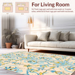 Flatwoven High Traffic Area Rug, Floral Symphony Artistic, Non Slip, Stain Resistant, Washable Area Rugs for Living Room, Bedroom (Ivory) Overview: