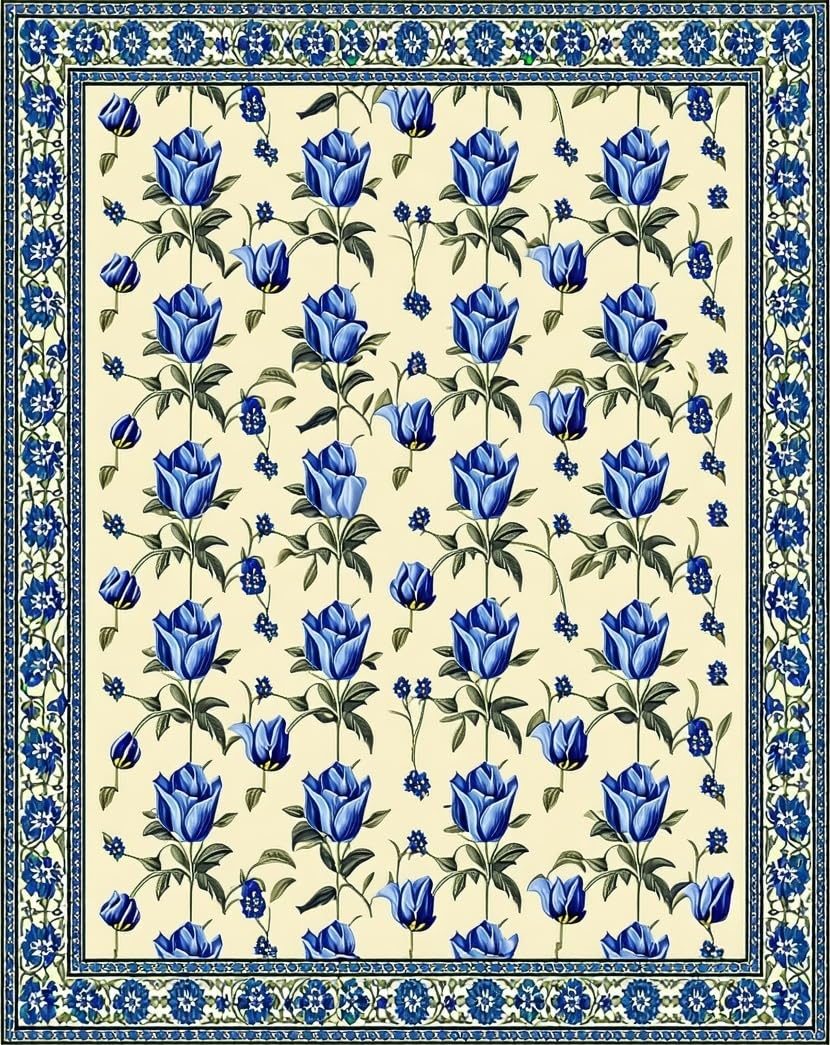 Floral Symphony Beige & Azure Crafted Area(Beige)