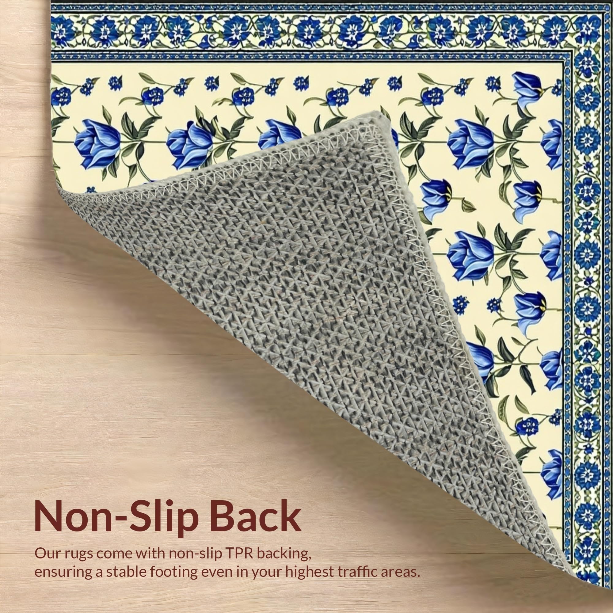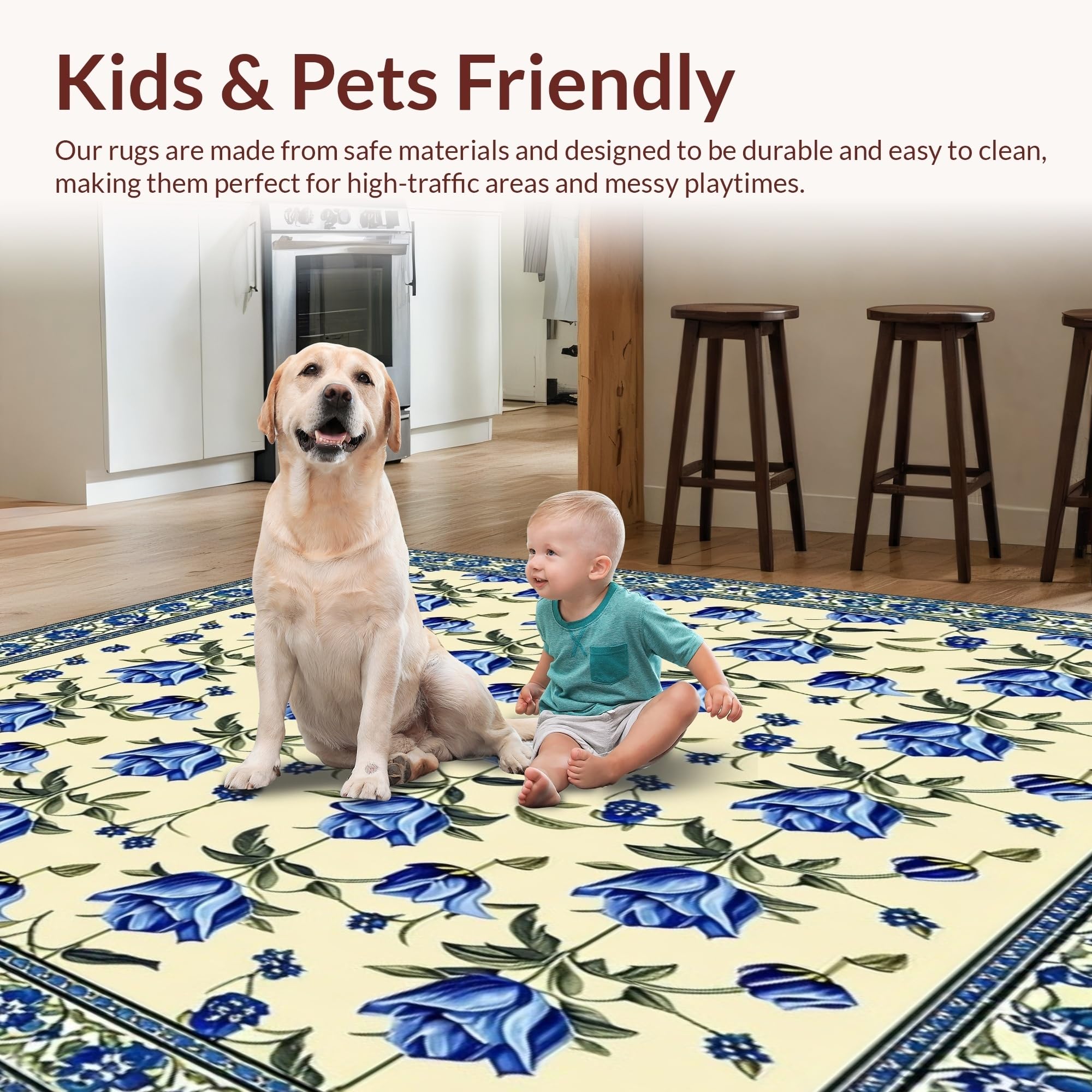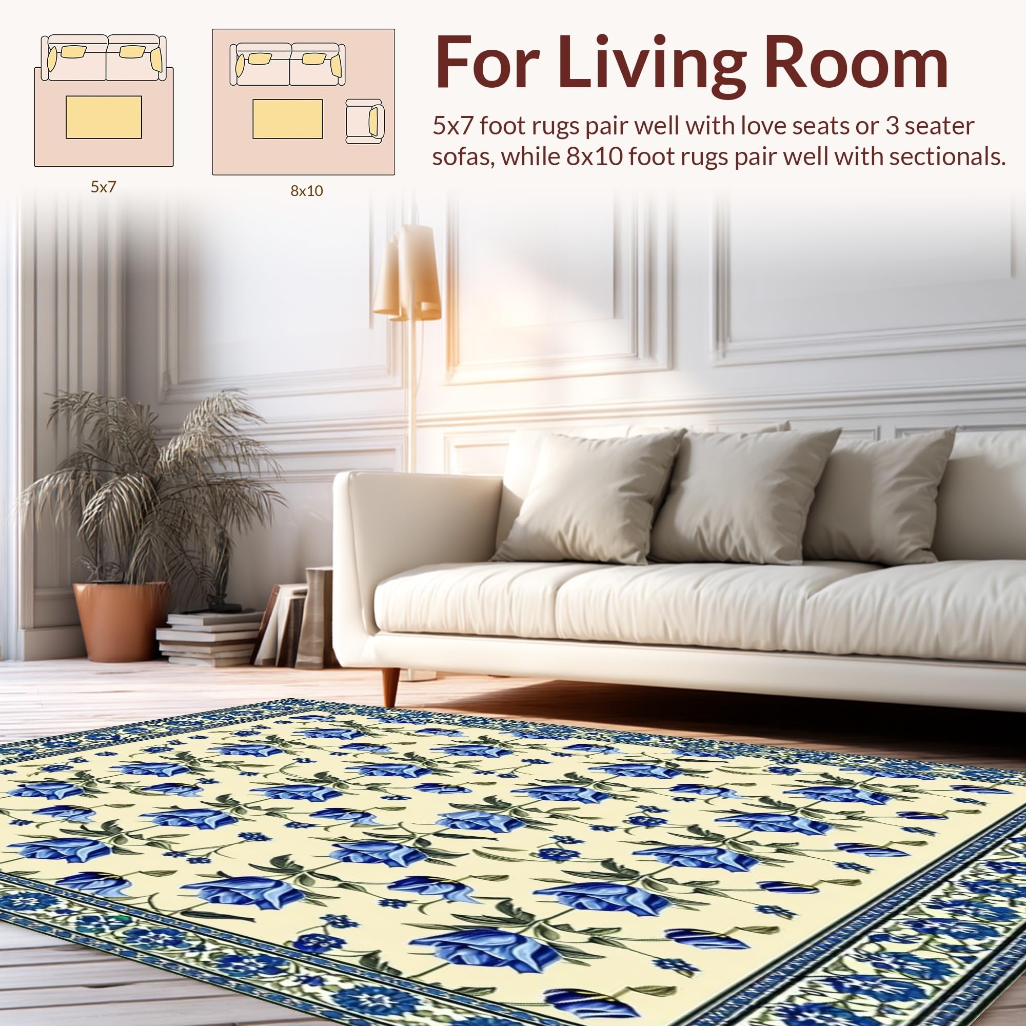 Ultra Soft Area Rug, Non Slip, Stain Resistant, Washable Area Rugs for Living Room, Bedroom, Floral Symphony Beige & Azure Crafted Area(Beige) Overview:
