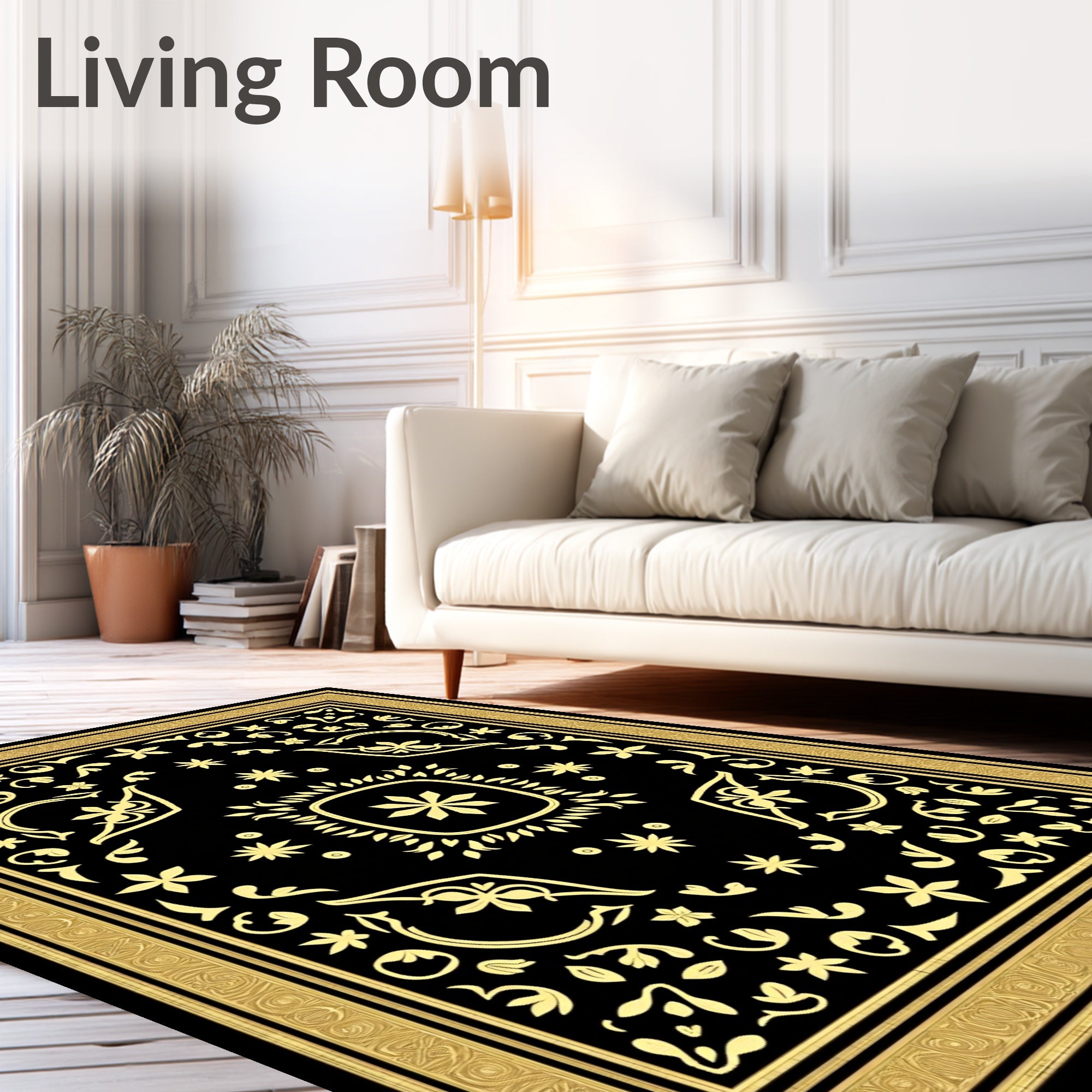 Ultra Soft Area Rug, Non Slip, Stain Resistant, Washable Area Rugs for Living Room, Bedroom, Floral Symphony Intricate Stylish Foyer Jewel(Black) Overview:
