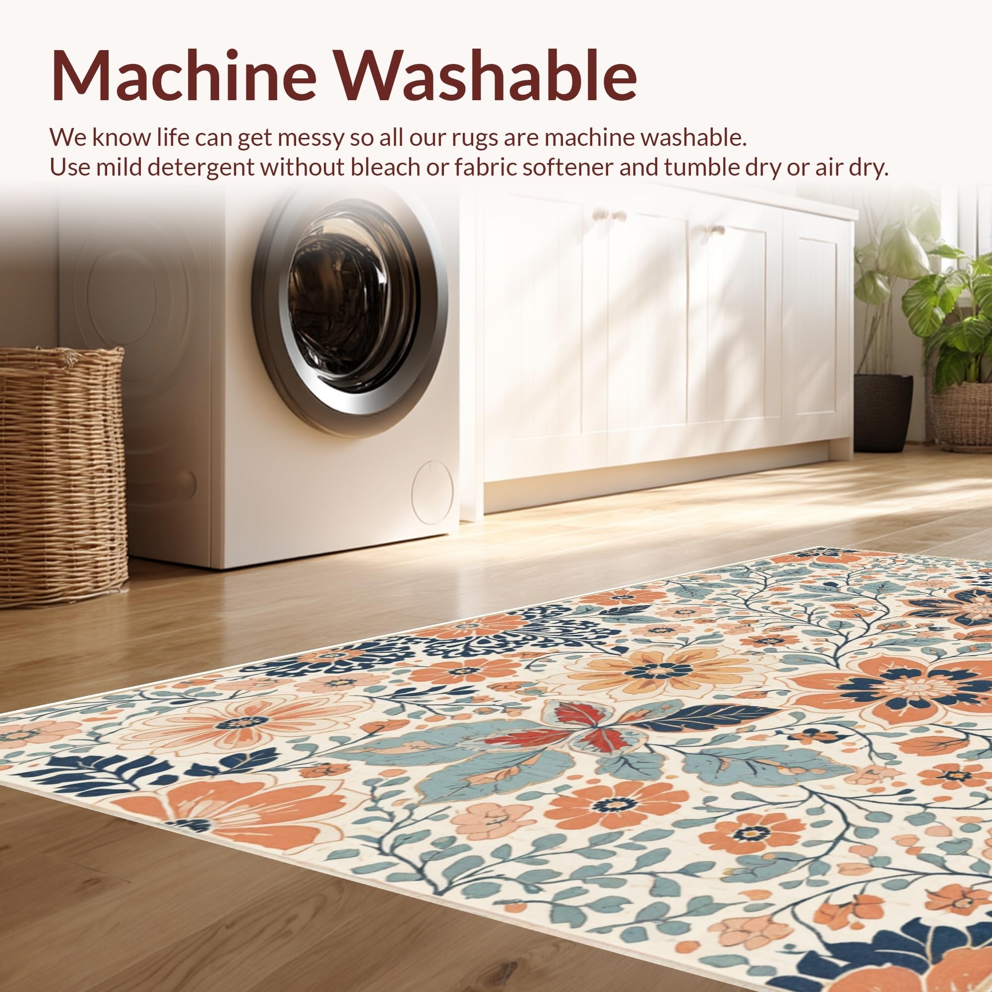 - Machine Washable: Our rugs can be easily thrown in the wash machine.