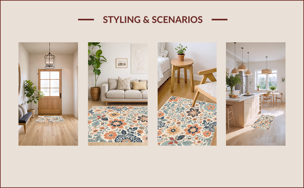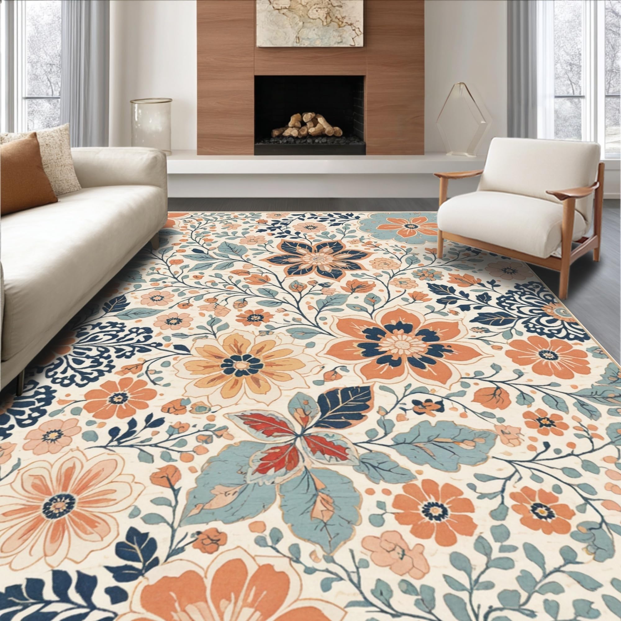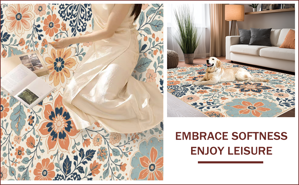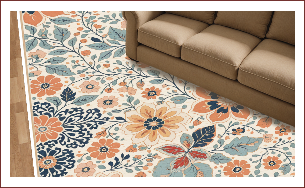 Ultra Soft Area Rug, Non Slip, Stain Resistant, Washable Area Rugs for Living Room, Bedroom, Floral Vintage Beige Living Room Washable Medallion Rug(Beige) Overview: