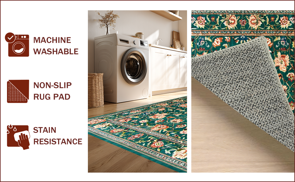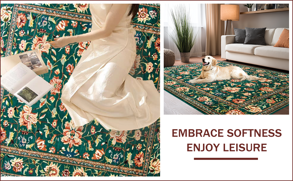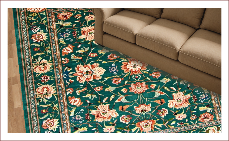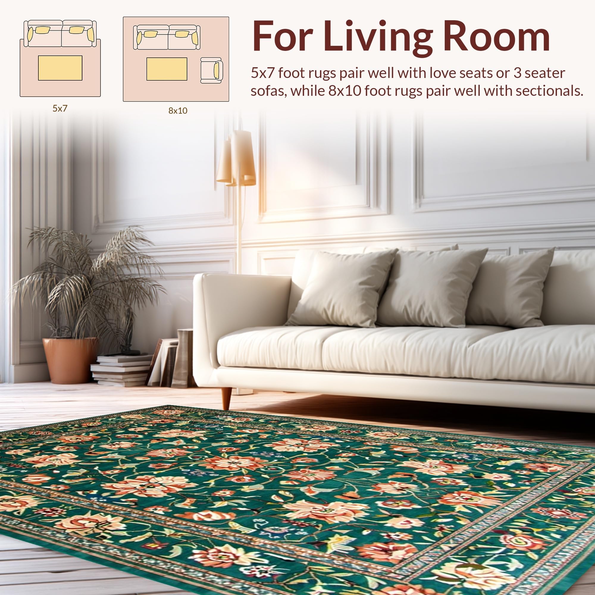 Ultra Soft Area Rug, Non Slip, Stain Resistant, Washable Area Rugs for Living Room, Bedroom, Floral Vintage Green Elegance(Green) Overview:
