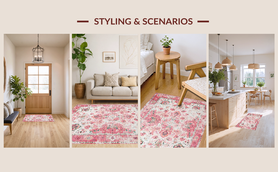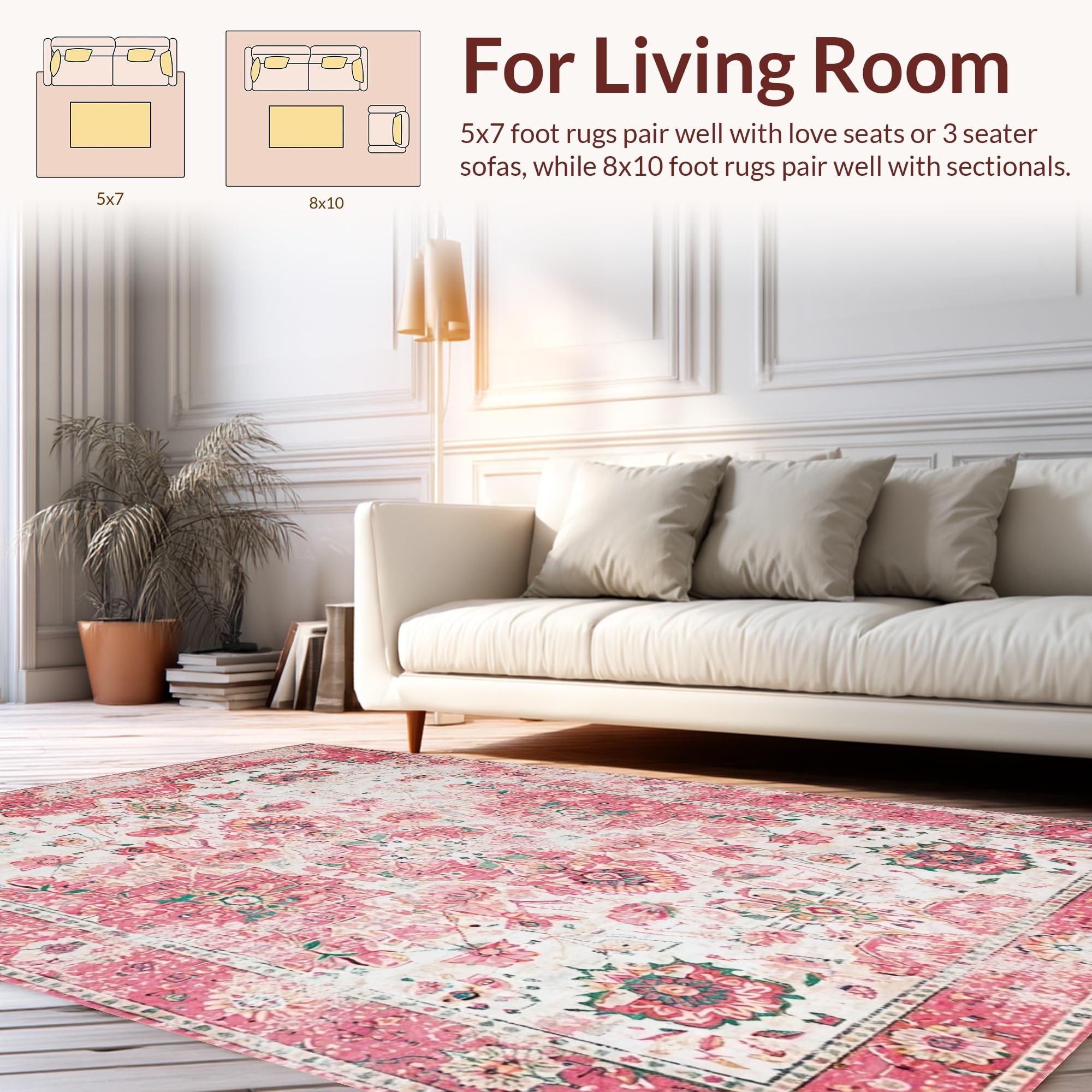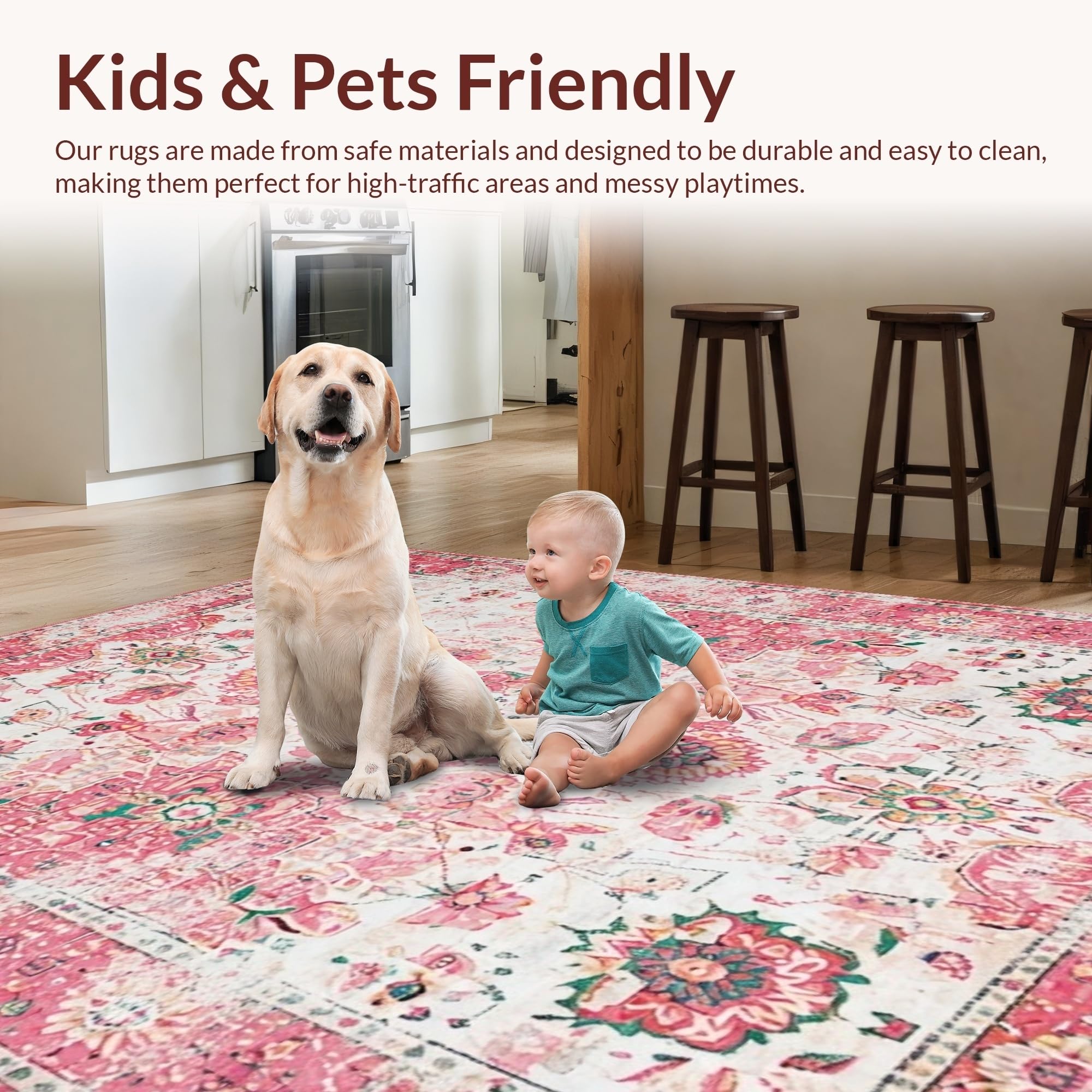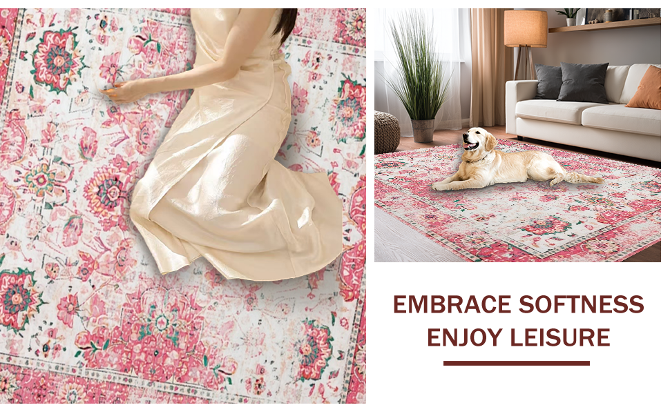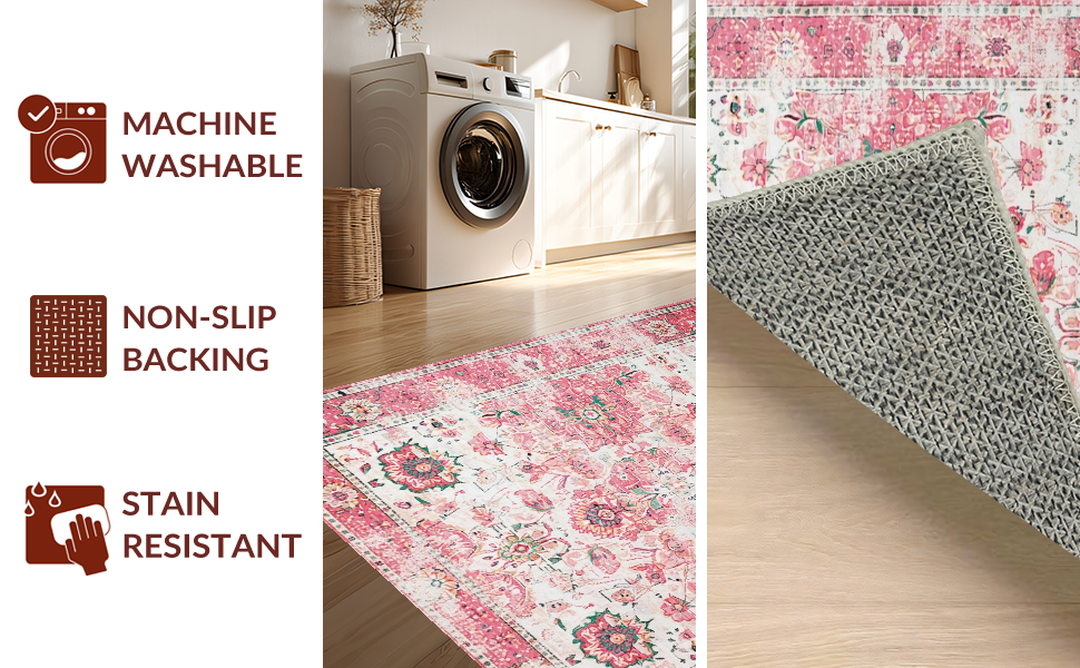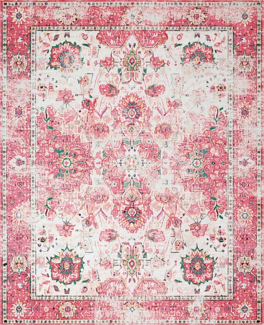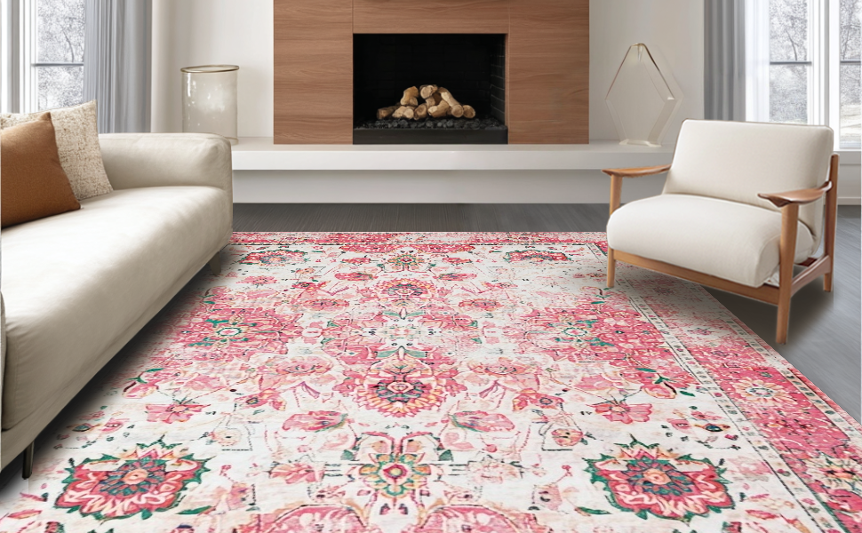 Ultra Soft Area Rug, Non Slip, Stain Resistant, Washable Area Rugs for Living Room, Bedroom, Floral Vintage Pastel Aesthetic(Pink) Overview: