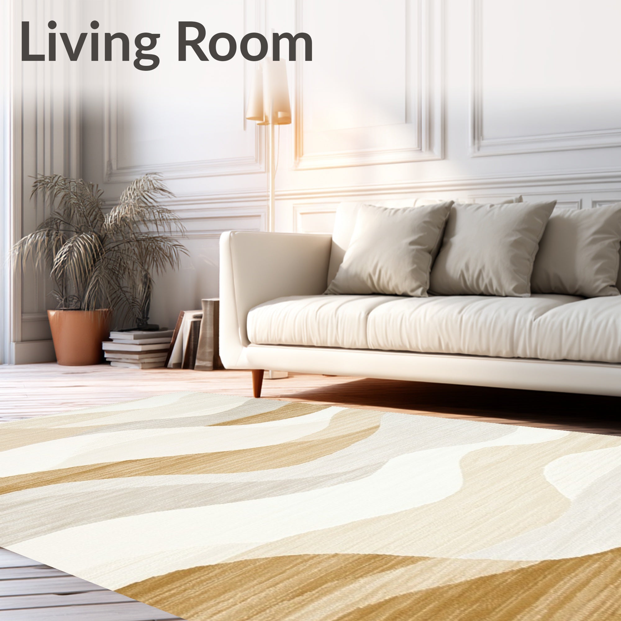 Ultra Soft Area Rug, Non Slip, Stain Resistant, Washable Area Rugs for Living Room, Bedroom, Florida Waves Luxury Area With Non Shedding Fibers For Home Elegance(Beige) Overview: