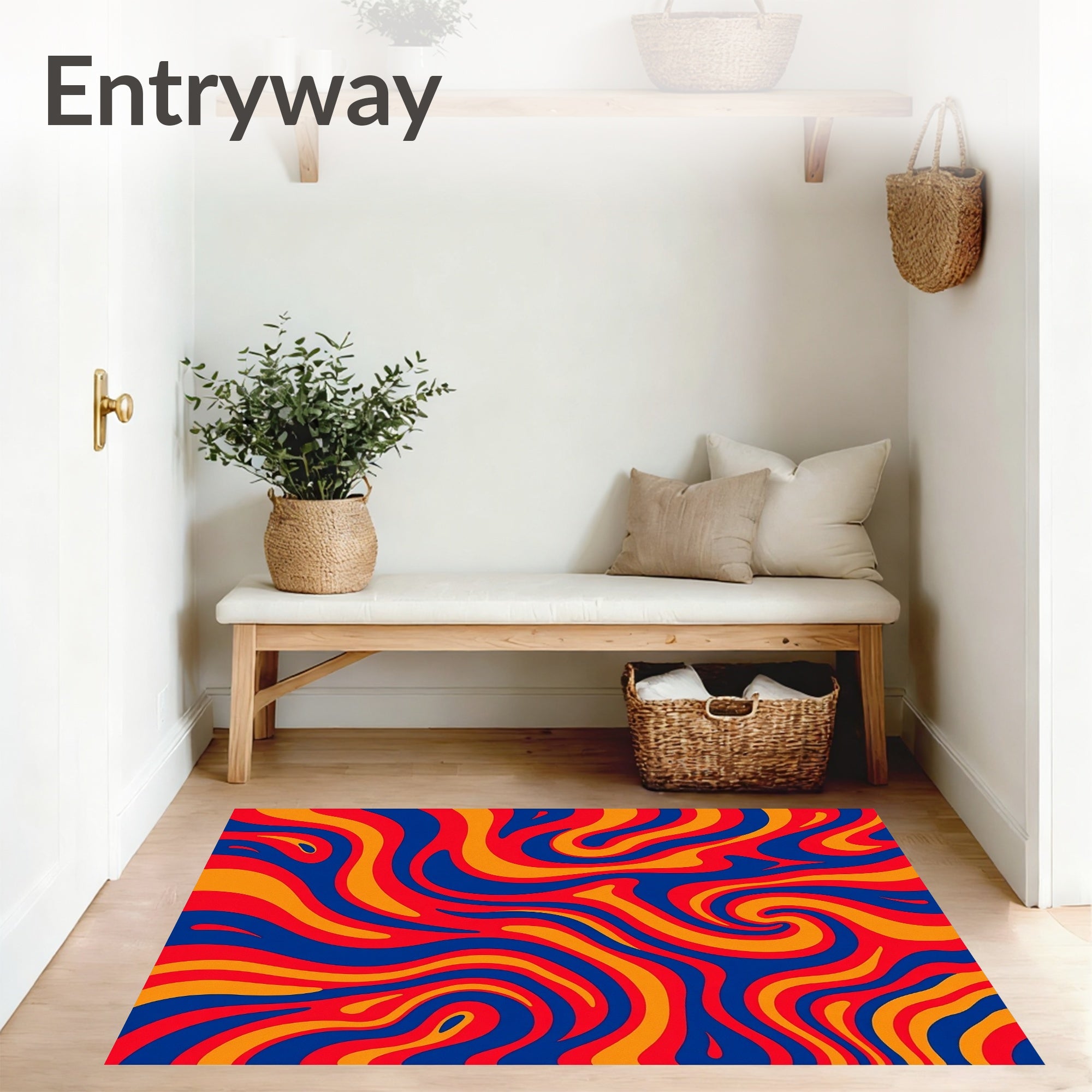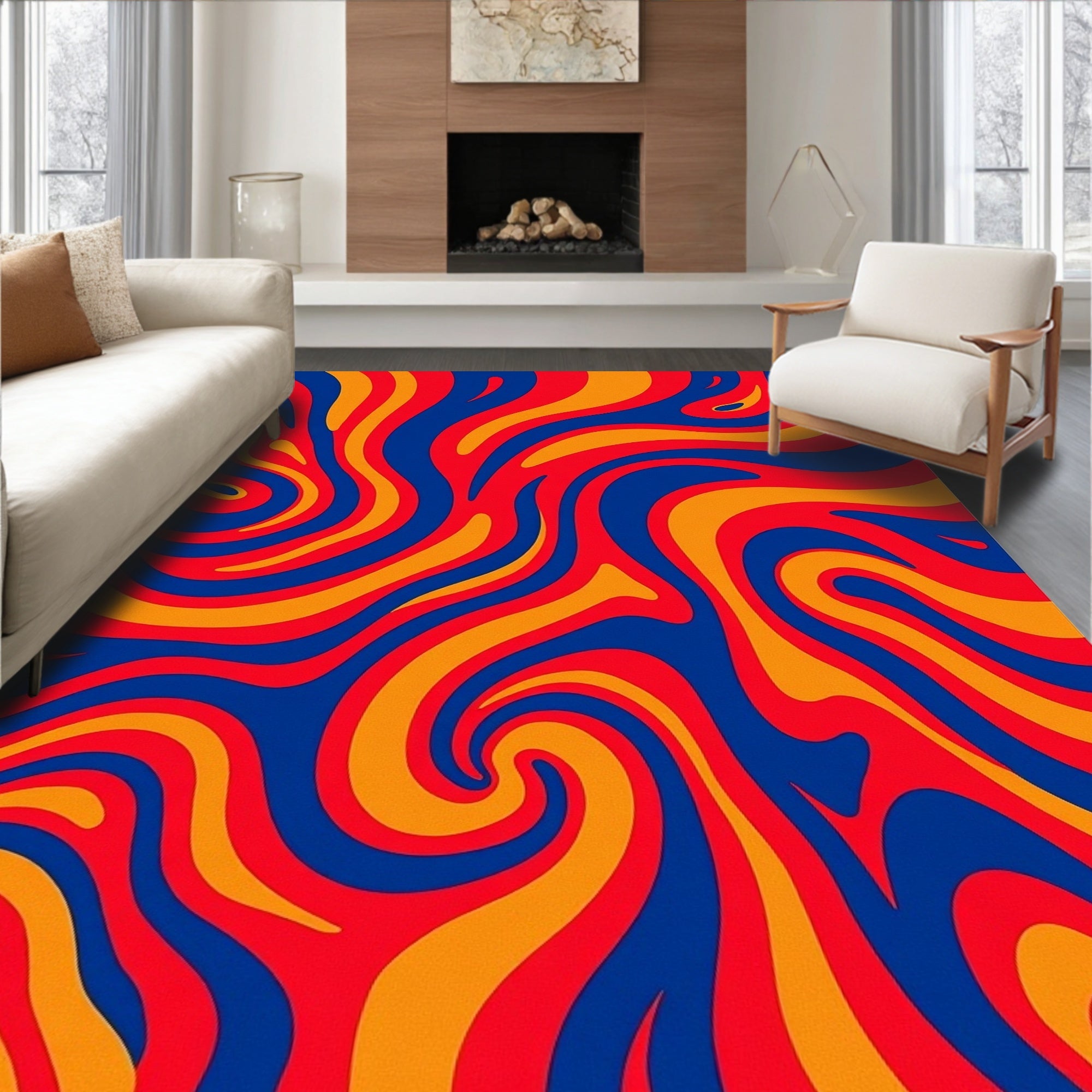 Ultra Soft Area Rug, Non Slip, Stain Resistant, Washable Area Rugs for Living Room, Bedroom, Flowing Waves Abstract Contemporary Design Artistic(Red) Overview: