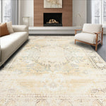 Ultra Soft Area Rug, Non Slip, Stain Resistant, Washable Area Rugs for Living Room, Bedroom, Foldable Non Slip Beige Hallway Runner With Distressed Medallion Design(Beige) Overview: