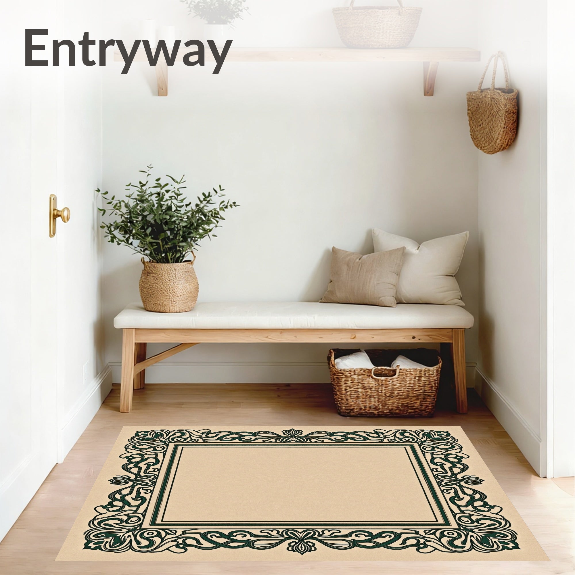 Ultra Soft Area Rug, Non Slip, Stain Resistant, Washable Area Rugs for Living Room, Bedroom, Foliage Vine Labyrinth Dynasty Artisan Creation(Beige) Overview: