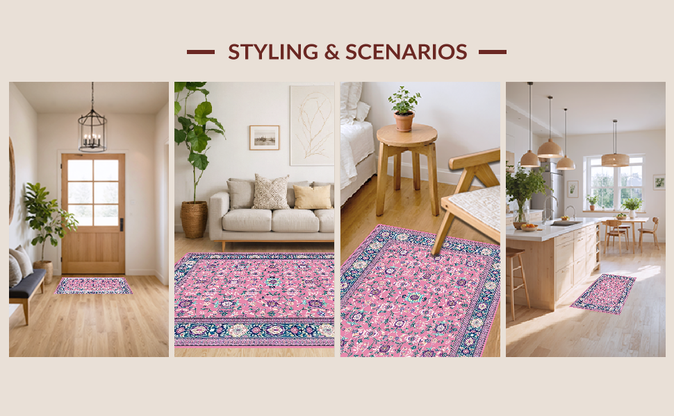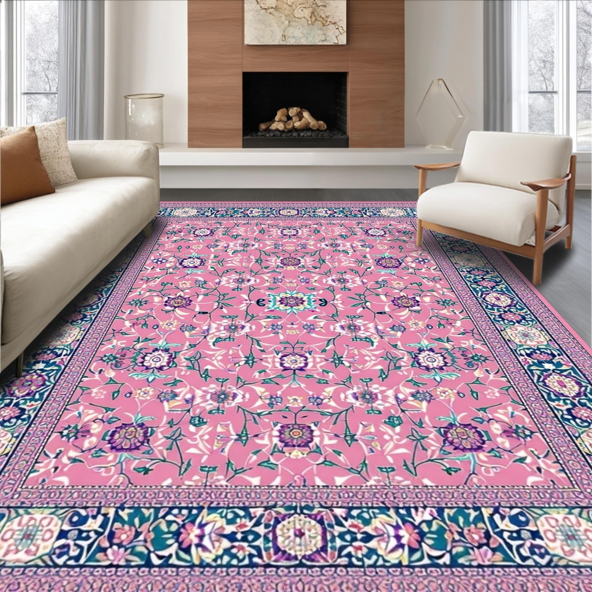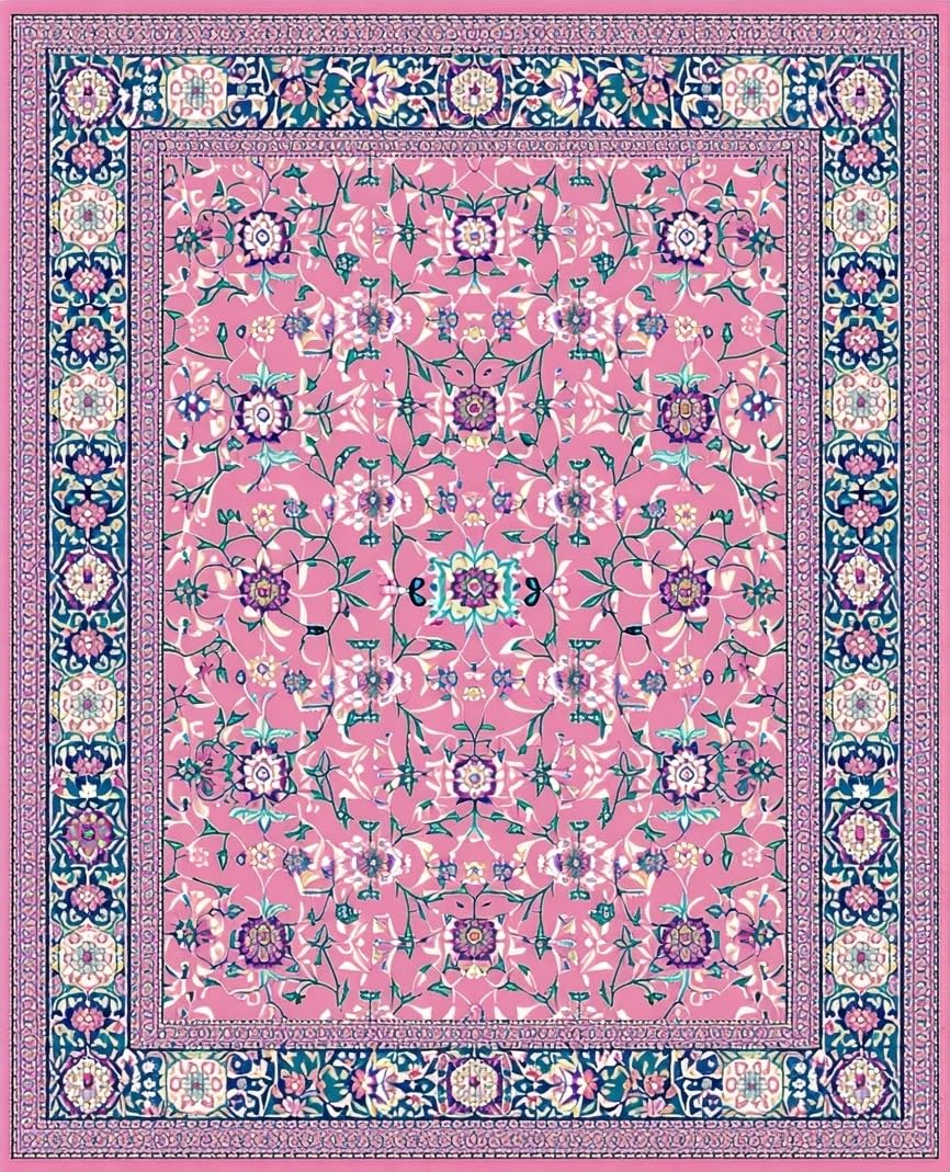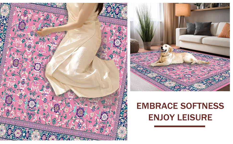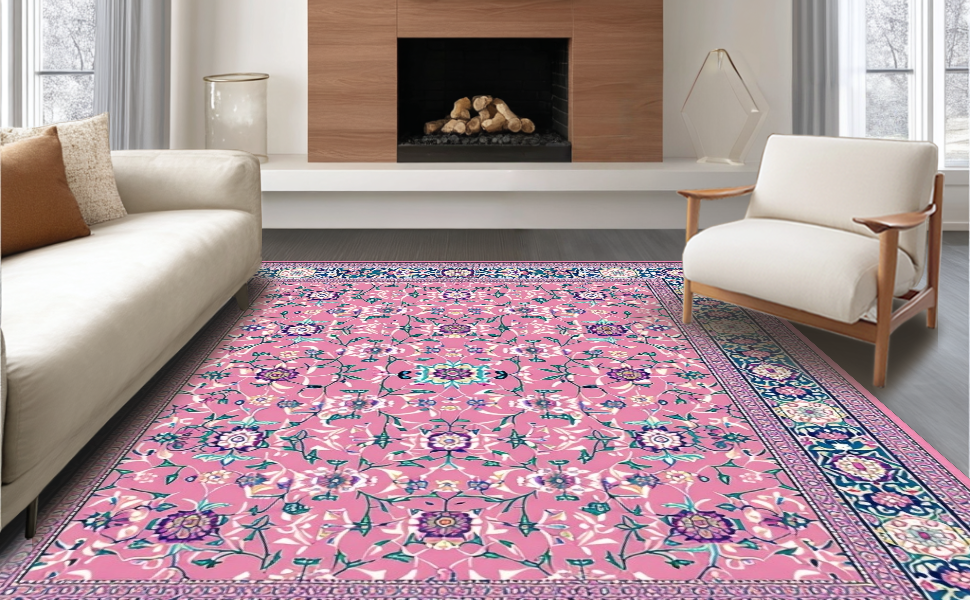 Ultra Soft Area Rug, Non Slip, Stain Resistant, Washable Area Rugs for Living Room, Bedroom, Folk Art Floral Elegance(Pink) Overview:
