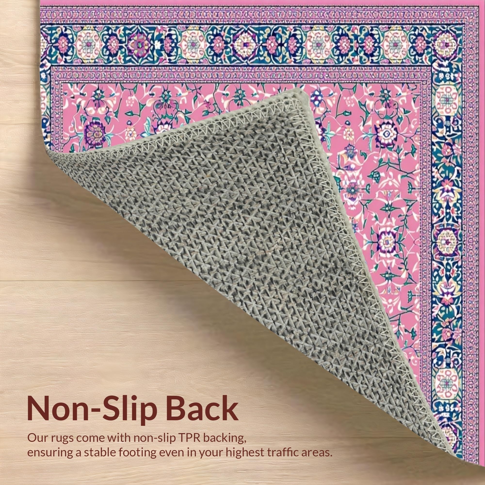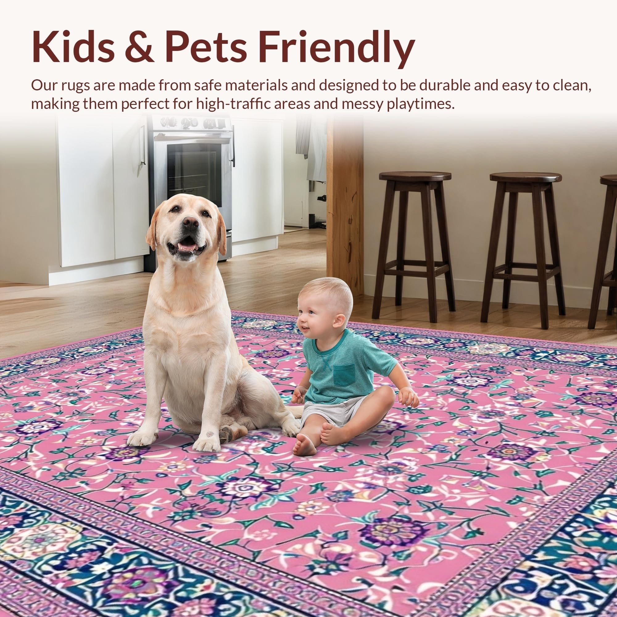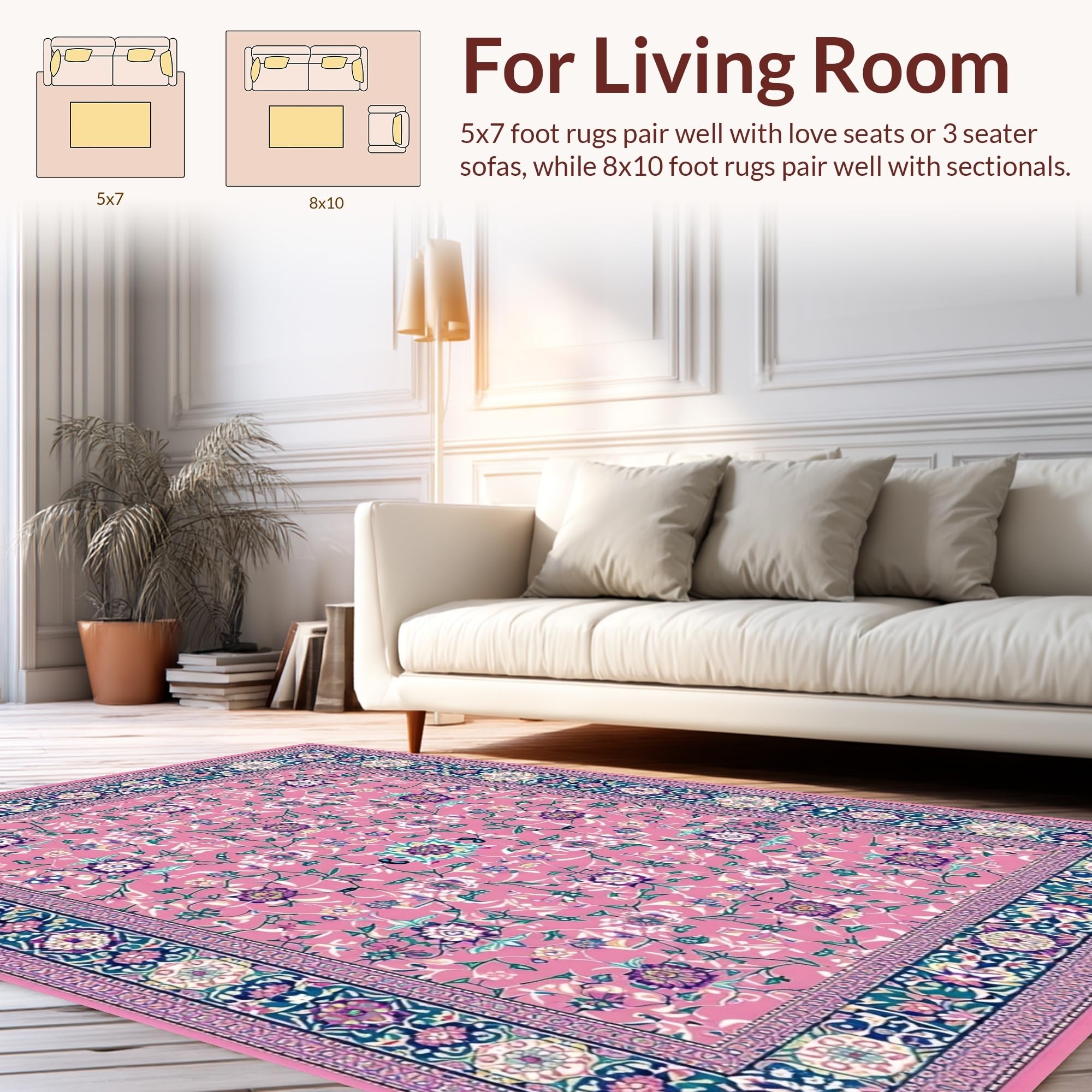 Ultra Soft Area Rug, Non Slip, Stain Resistant, Washable Area Rugs for Living Room, Bedroom, Folk Art Floral Elegance(Pink) Overview: