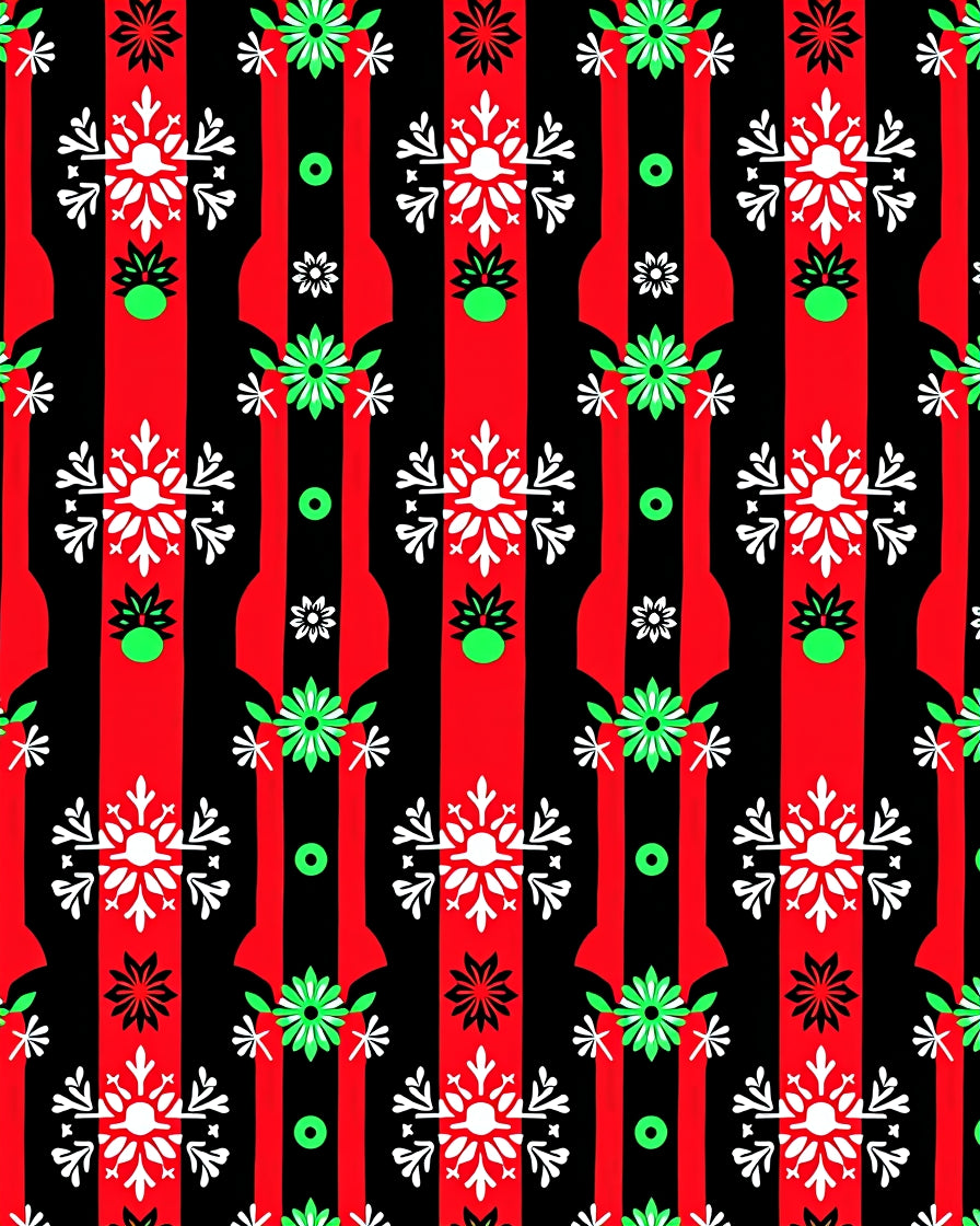 Folk Art Plaid with Interlocking Festive Starbursts(Red)