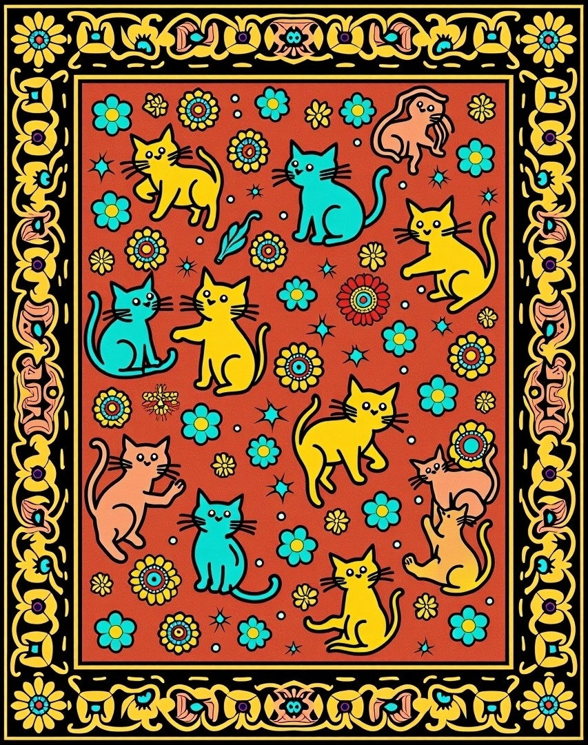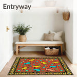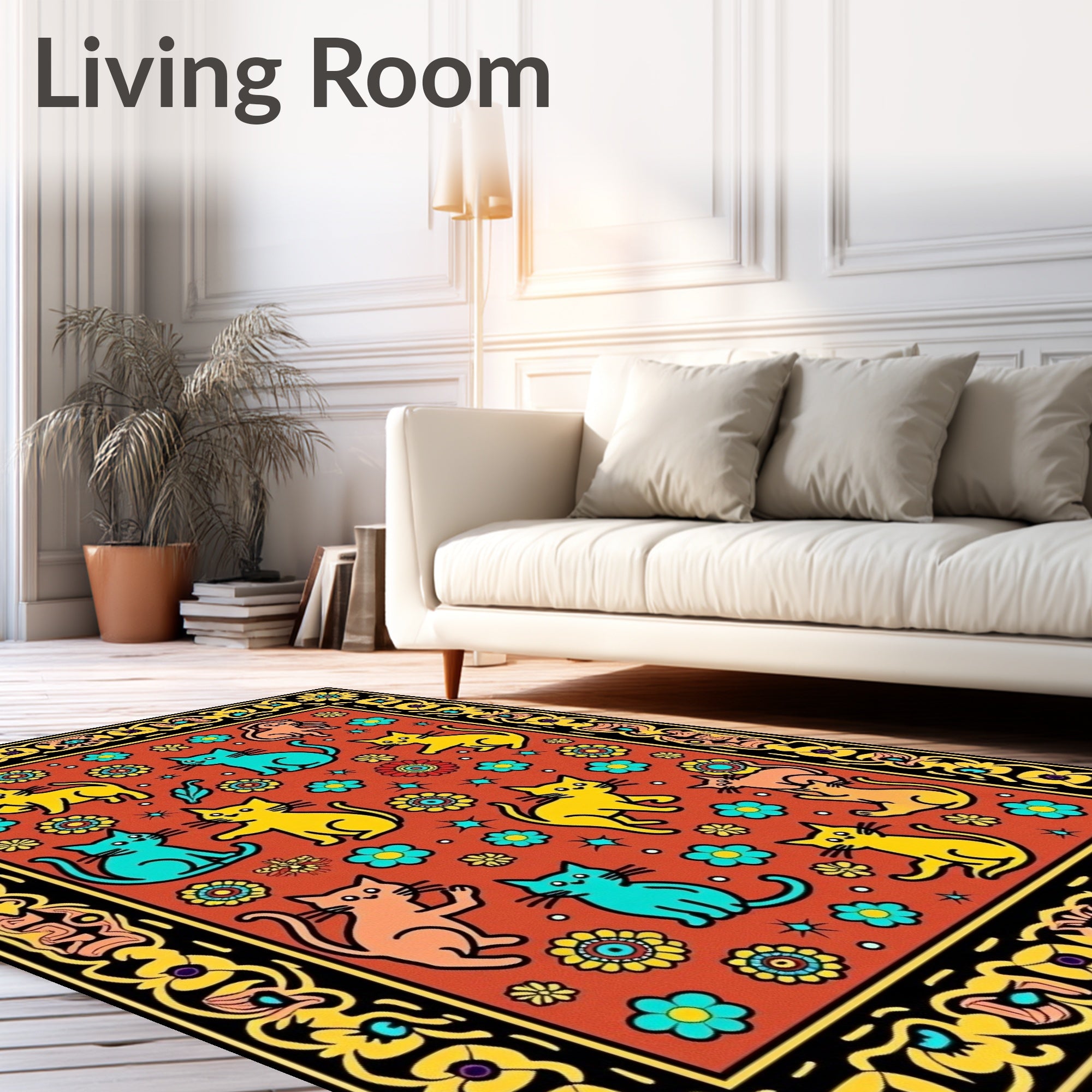 Ultra Soft Area Rug, Non Slip, Stain Resistant, Washable Area Rugs for Living Room, Bedroom, Folk Festival Cat Medley Spirited Feline Illustrations with Sparkling Motifs(Red) Overview: