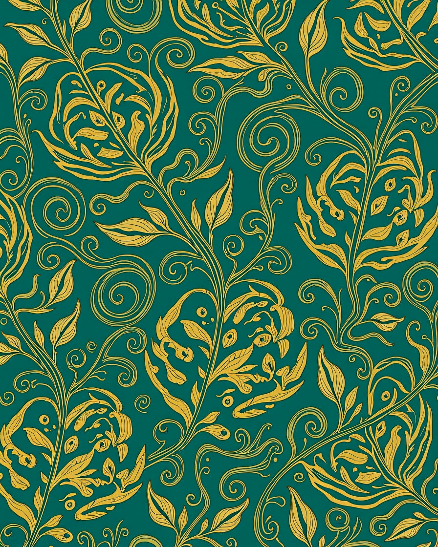 Forest Canopy Interlocking Leaf Motif with Art Nouveau Details(Gold)