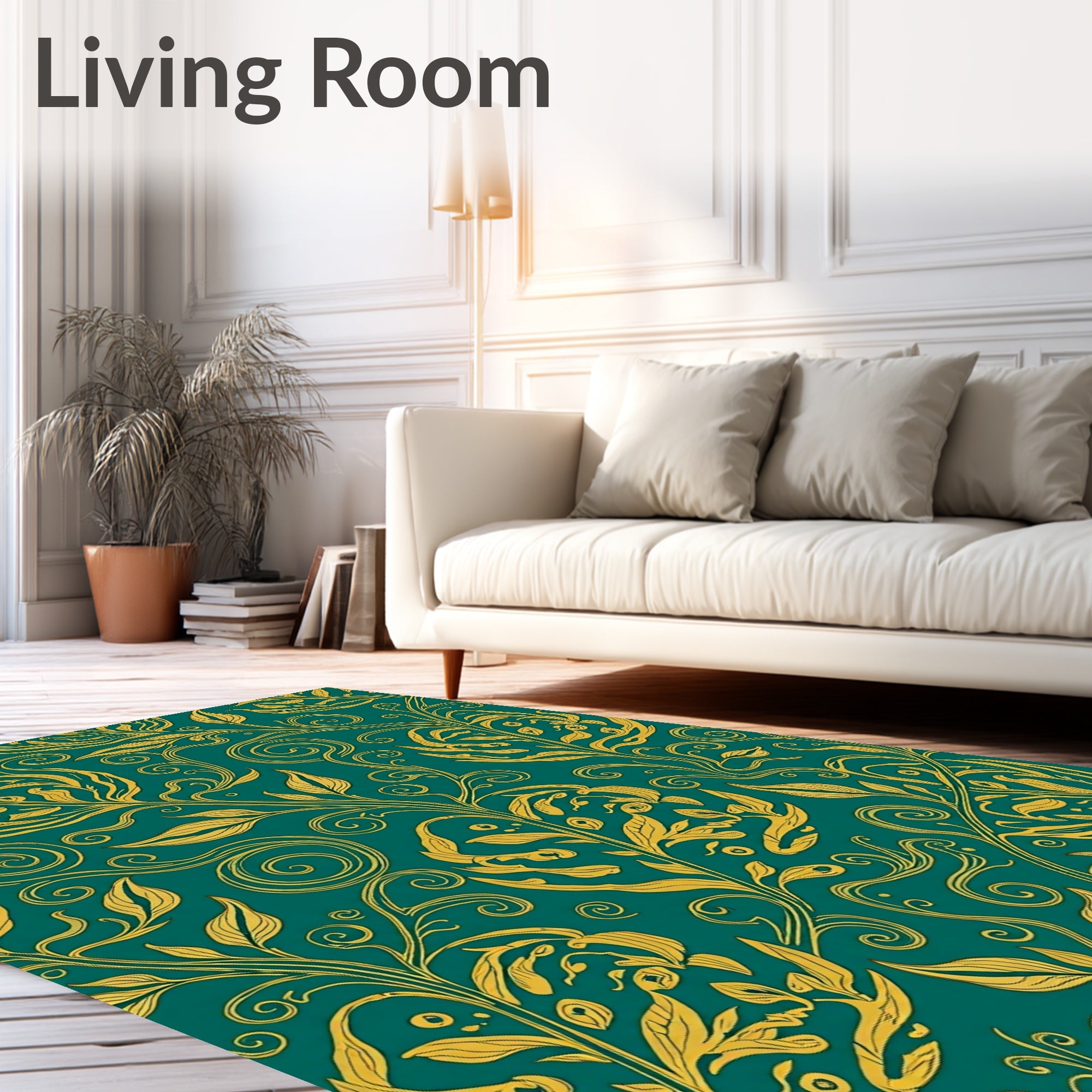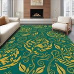 Ultra Soft Area Rug, Non Slip, Stain Resistant, Washable Area Rugs for Living Room, Bedroom, Forest Canopy Interlocking Leaf Motif with Art Nouveau Details(Gold) Overview: