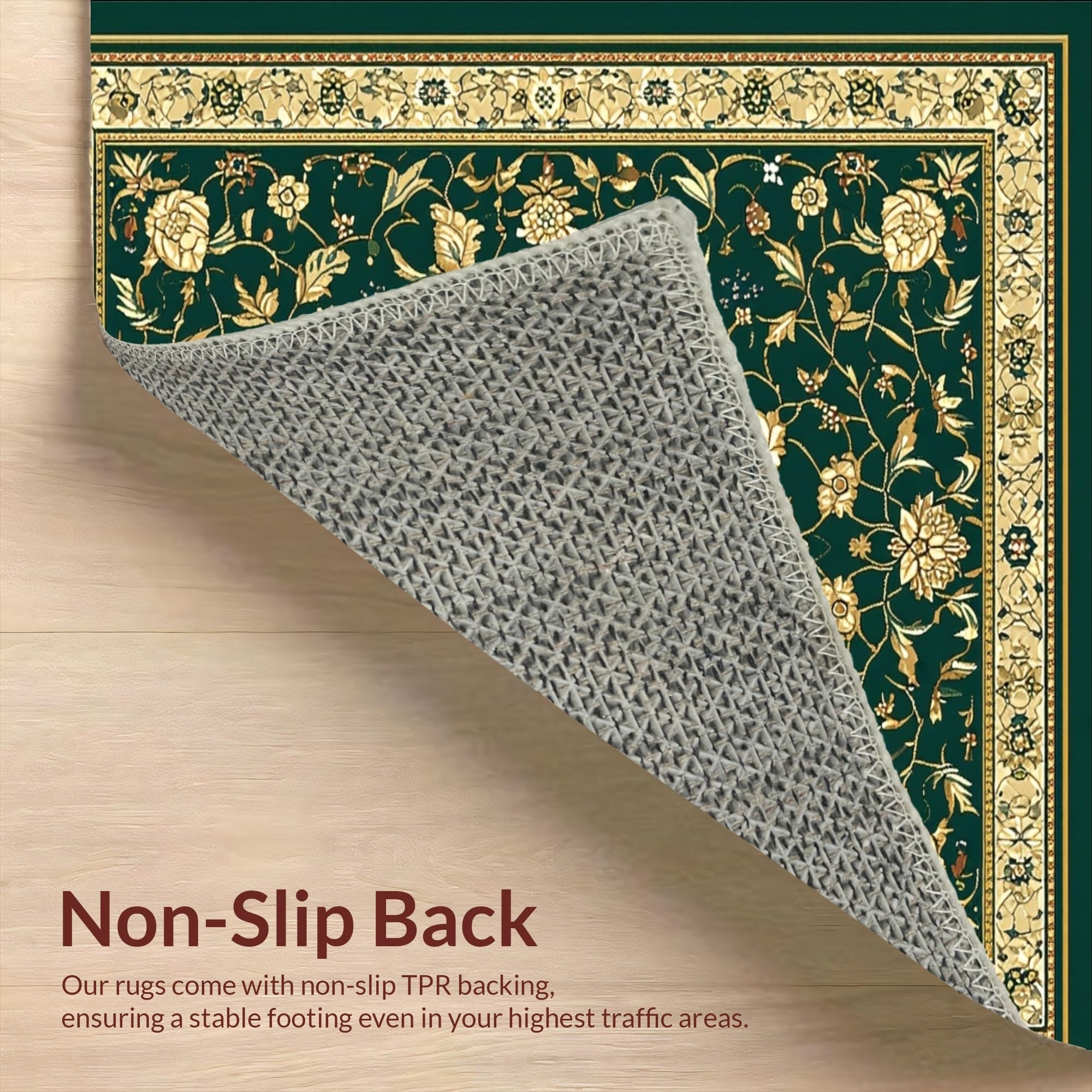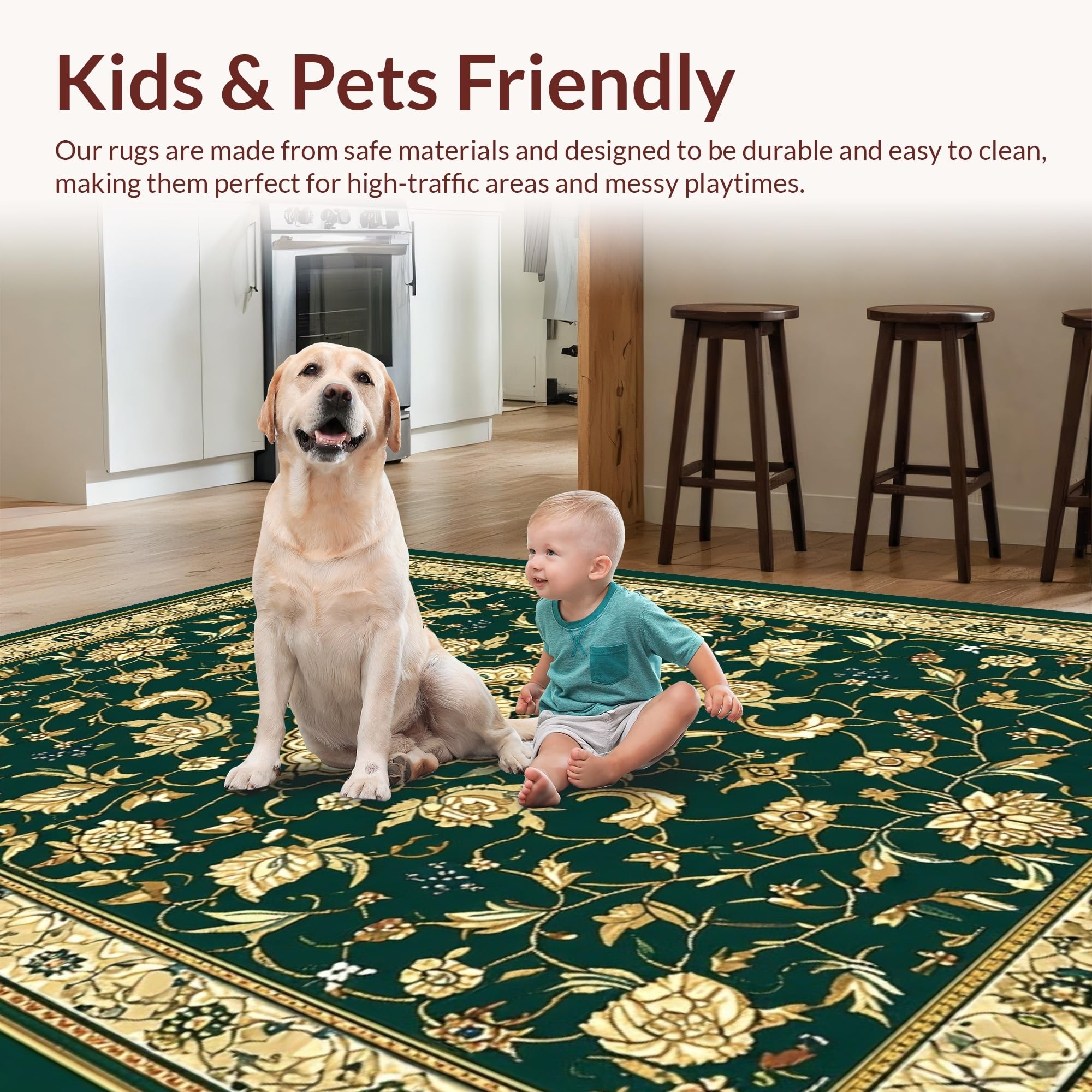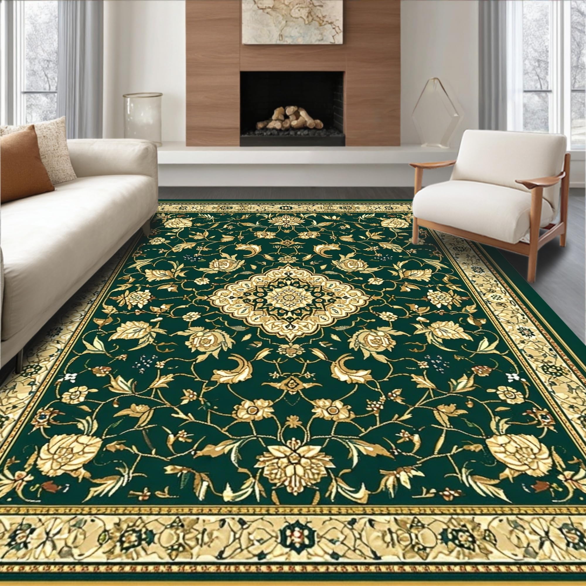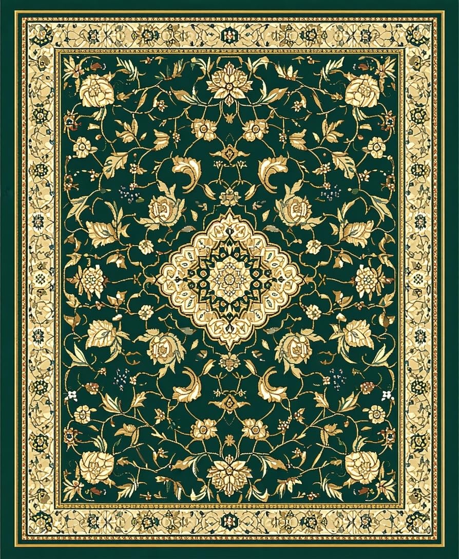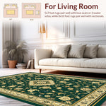 Ultra Soft Area Rug, Non Slip, Stain Resistant, Washable Area Rugs for Living Room, Bedroom, Forest Canopy Medallion with Ornate Interlocking Vines(Green) Overview: