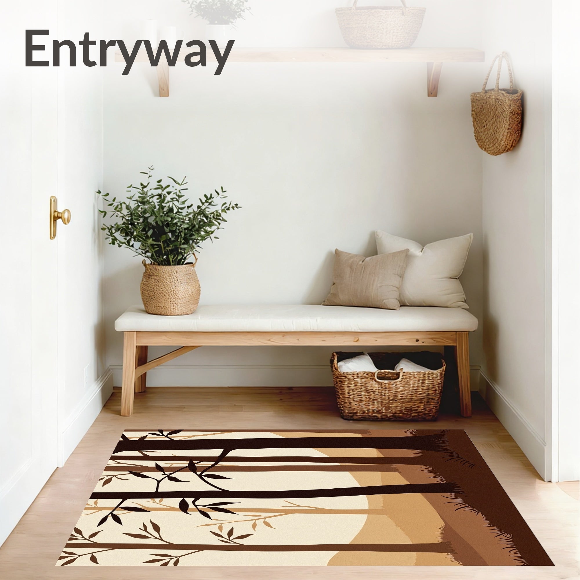 Ultra Soft Area Rug, Non Slip, Stain Resistant, Washable Area Rugs for Living Room, Bedroom, Forest Contemporary Design(Brown) Overview:
