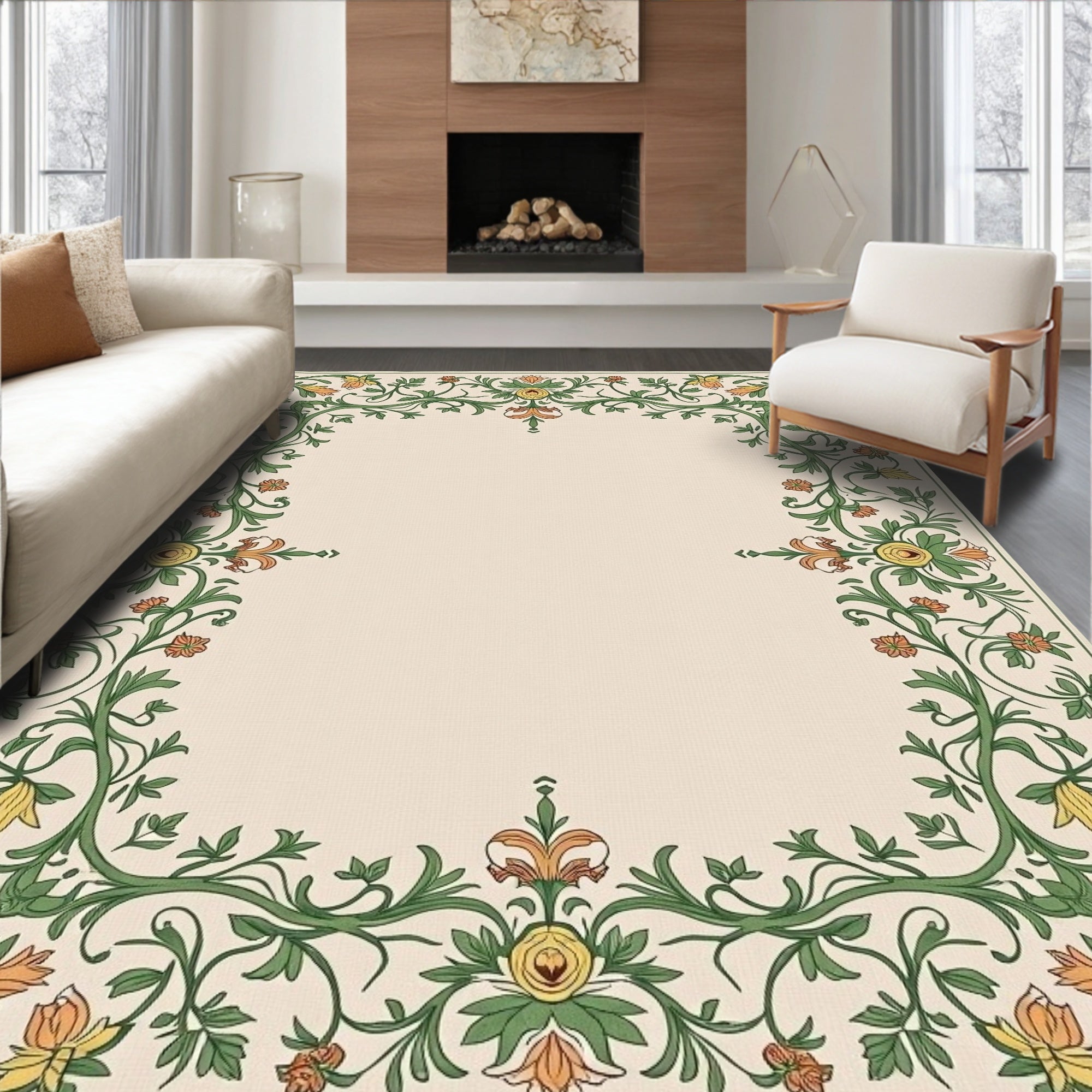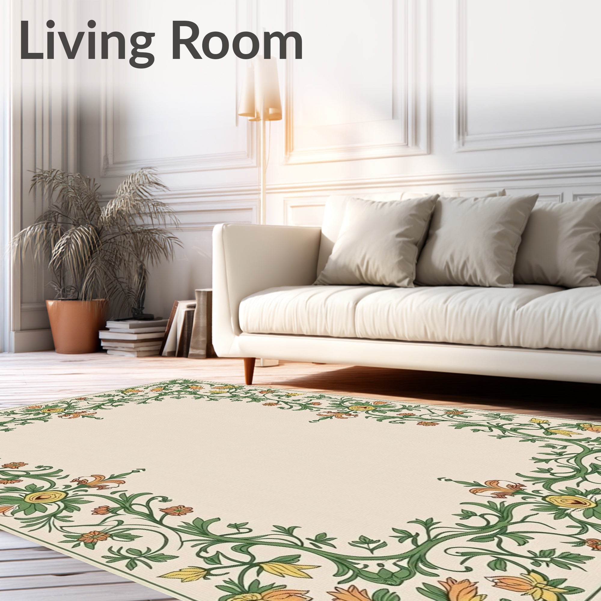 Ultra Soft Area Rug, Non Slip, Stain Resistant, Washable Area Rugs for Living Room, Bedroom, French Country Botanical Non Shedding Tapestry Design(Ivory) Overview: