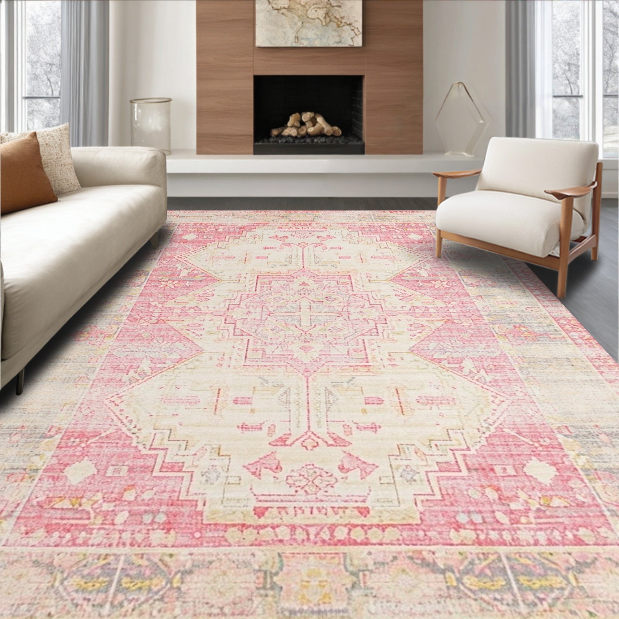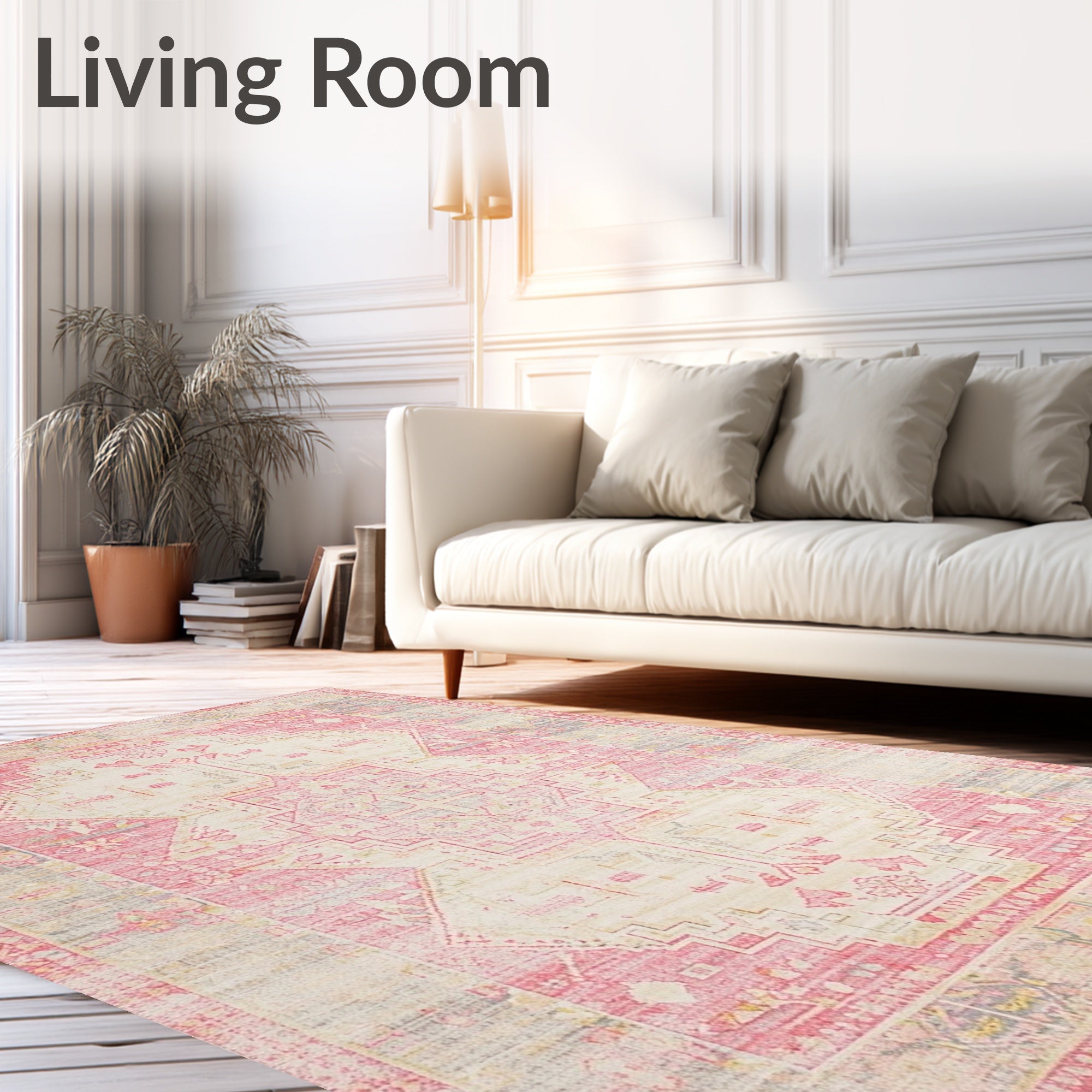 Ultra Soft Area Rug, Non Slip, Stain Resistant, Washable Area Rugs for Living Room, Bedroom, French Country Inspired Shaggy(Pink) Overview: