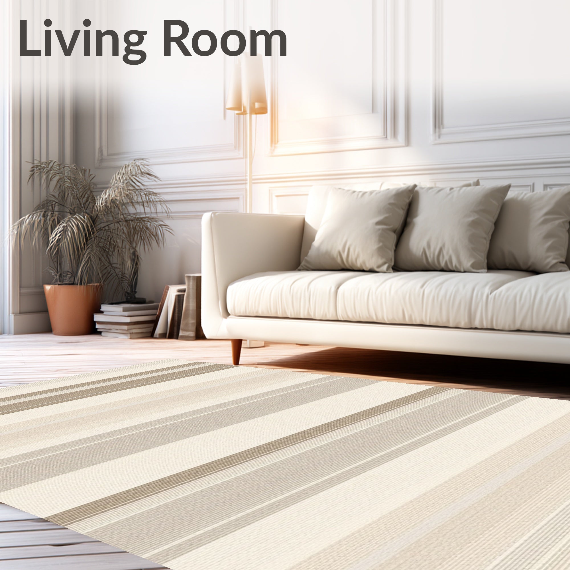 Ultra Soft Area Rug, Non Slip, Stain Resistant, Washable Area Rugs for Living Room, Bedroom, Frenshe Interiors by Ashley Tisdale Coastal Whisper Beige Striped Area(Beige) Overview: