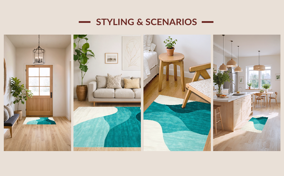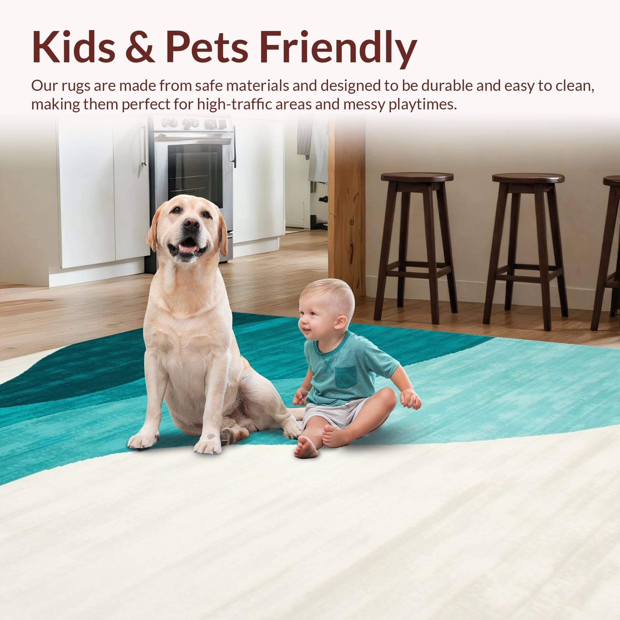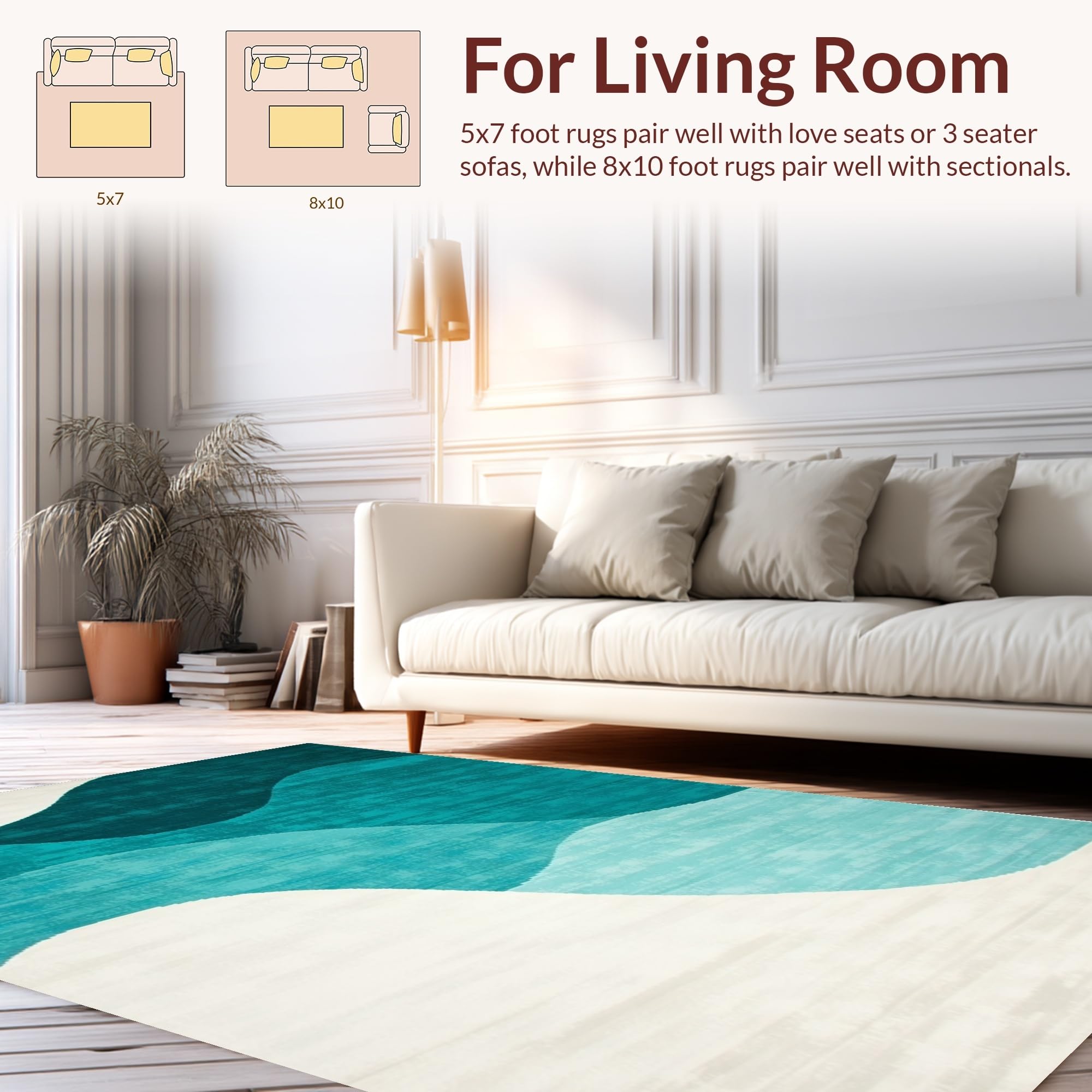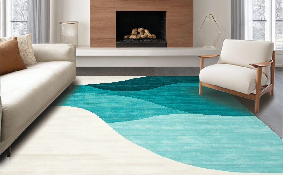 Ultra Soft Area Rug, Non Slip, Stain Resistant, Washable Area Rugs for Living Room, Bedroom, Fresh Aqua-Toned Ombre Visual Delight(Blue) Overview: