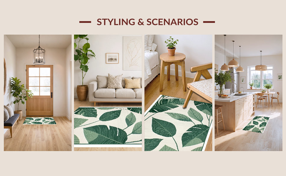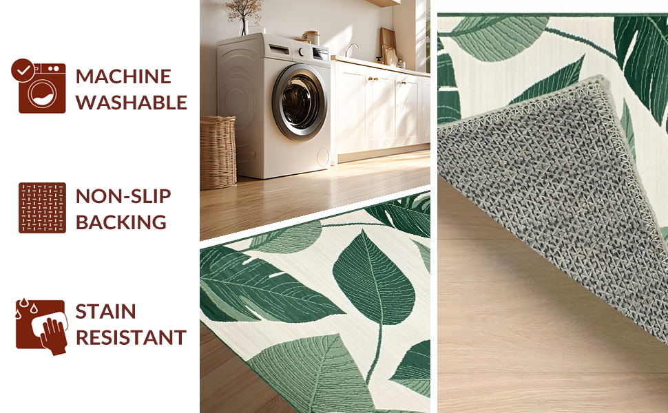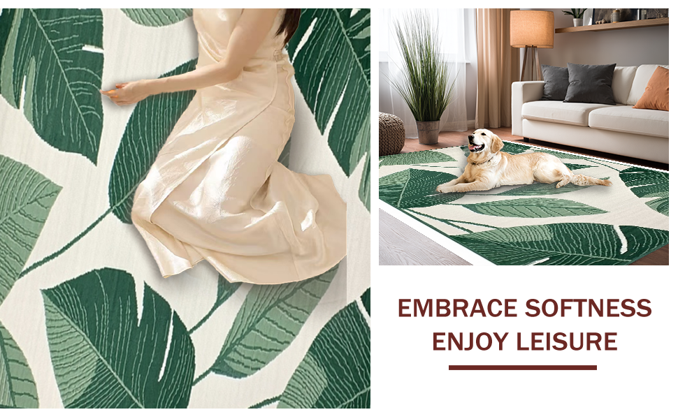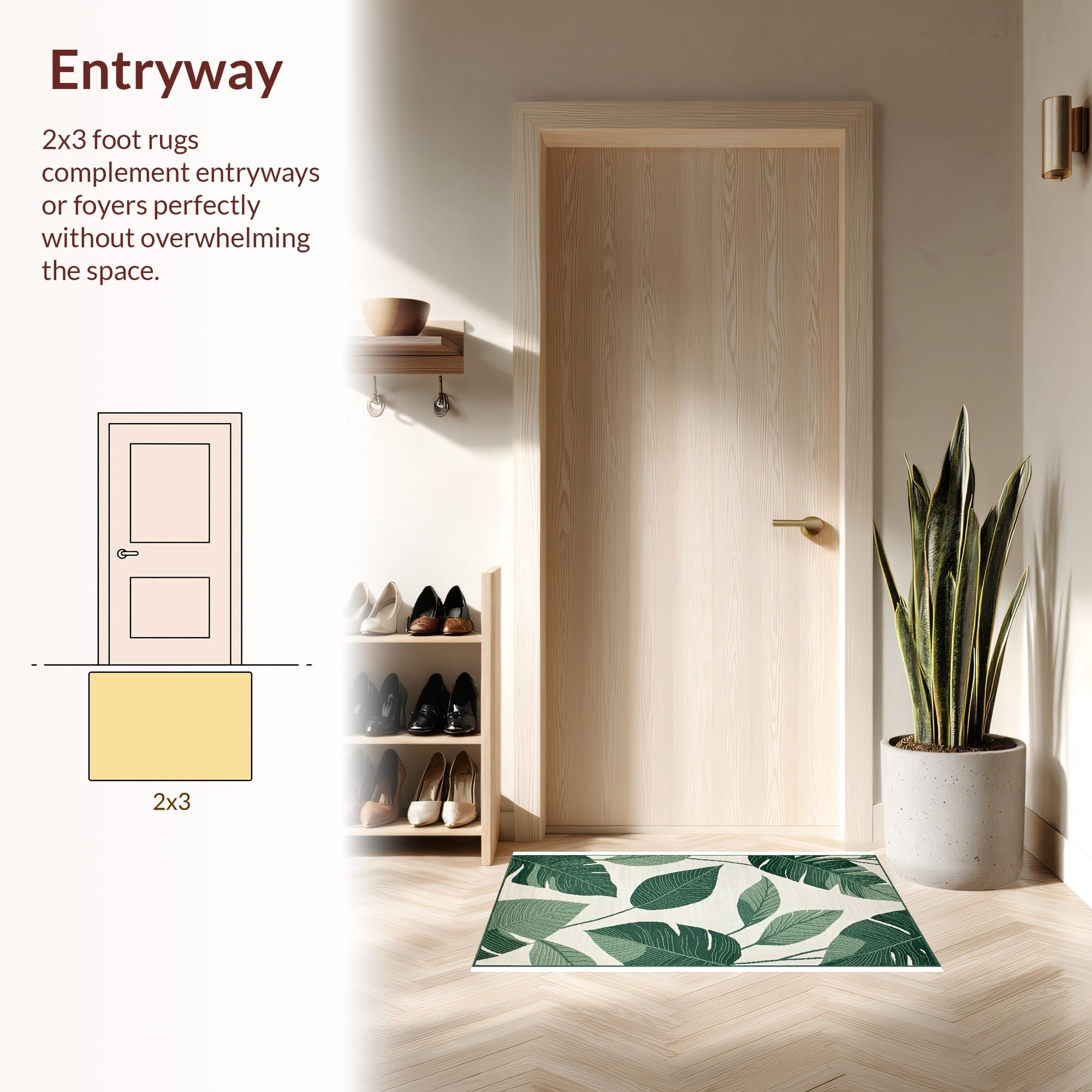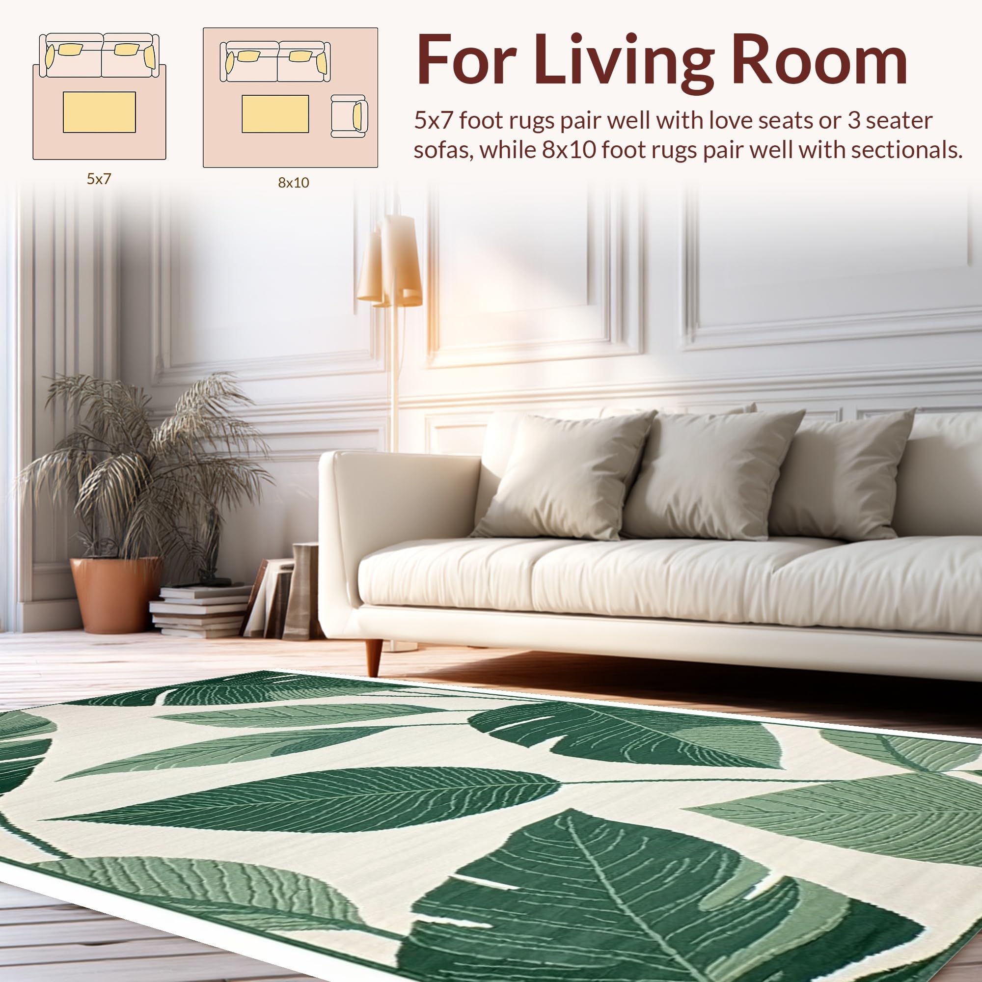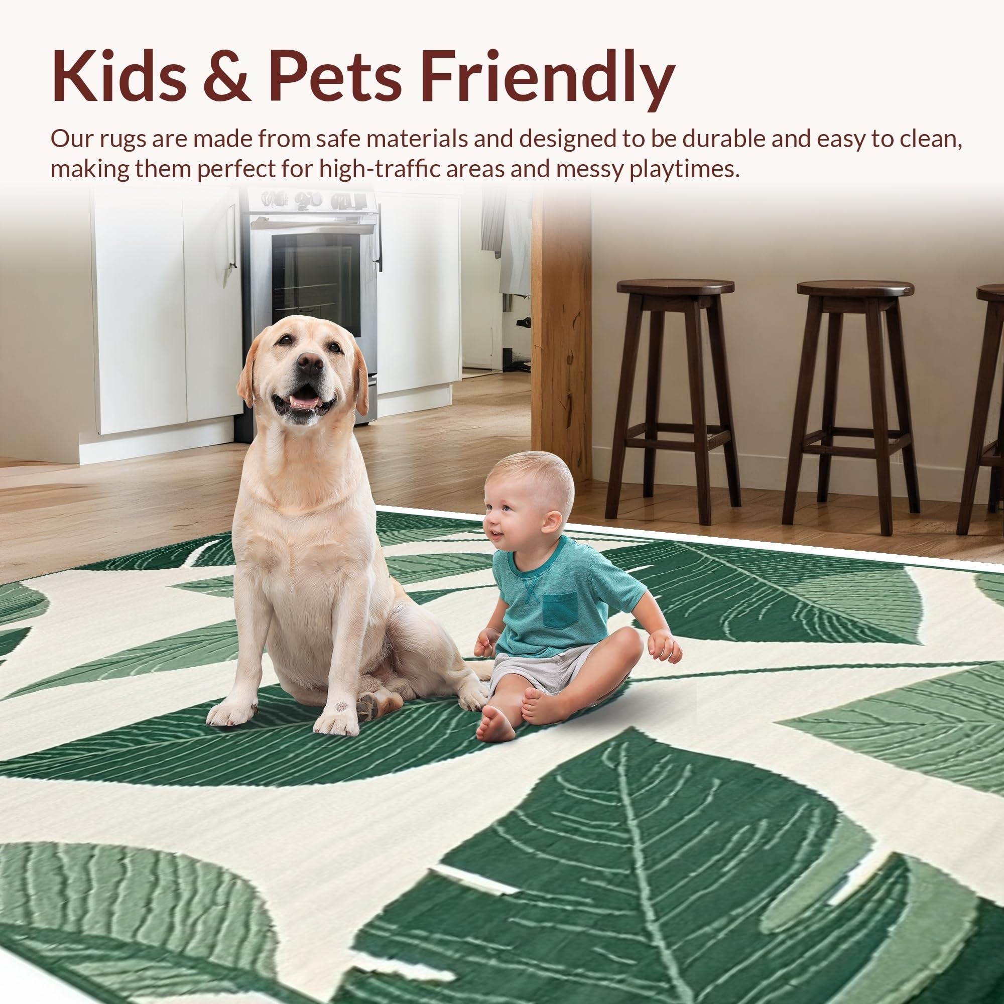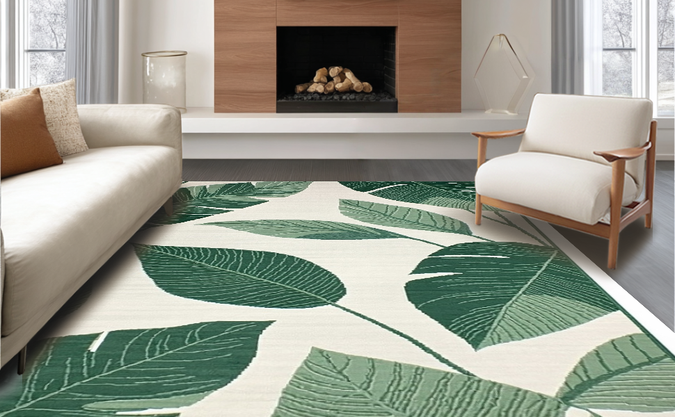 Ultra Soft Area Rug, Non Slip, Stain Resistant, Washable Area Rugs for Living Room, Bedroom, Fresh Botanical Patterned Mat(Green) Overview: