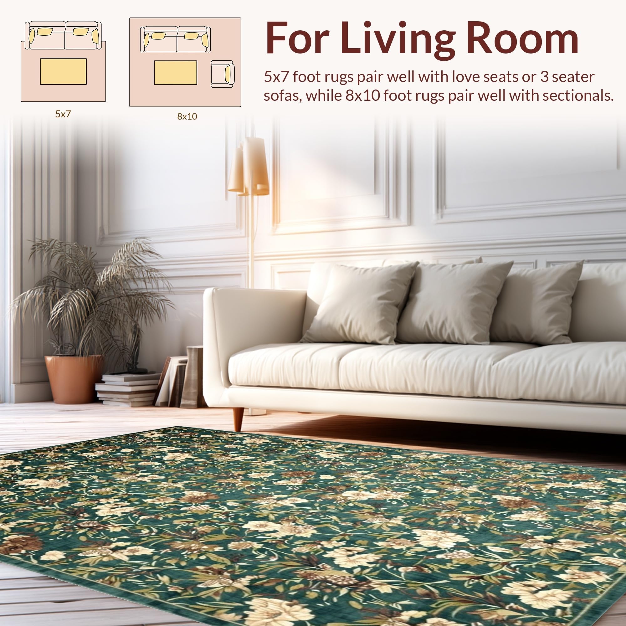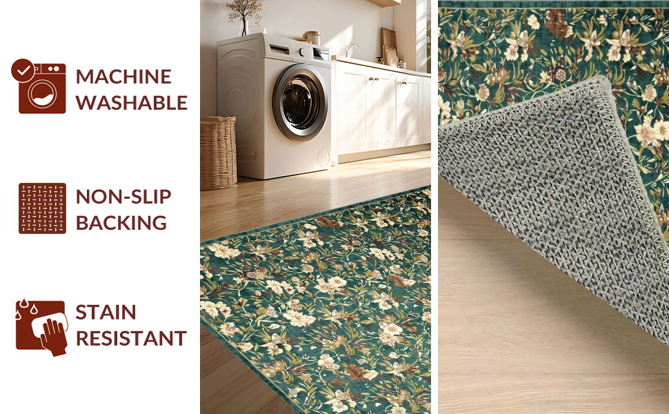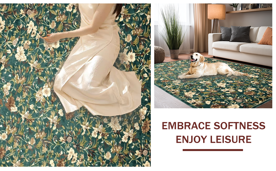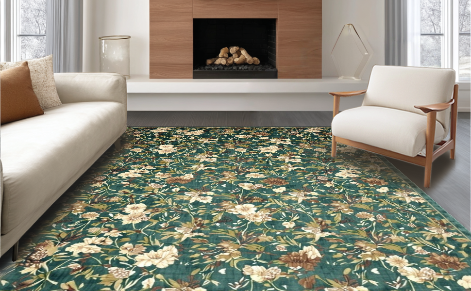 Ultra Soft Area Rug, Non Slip, Stain Resistant, Washable Area Rugs for Living Room, Bedroom, Fresh Botanical Scenery Inspired Rug(Green) Overview:
