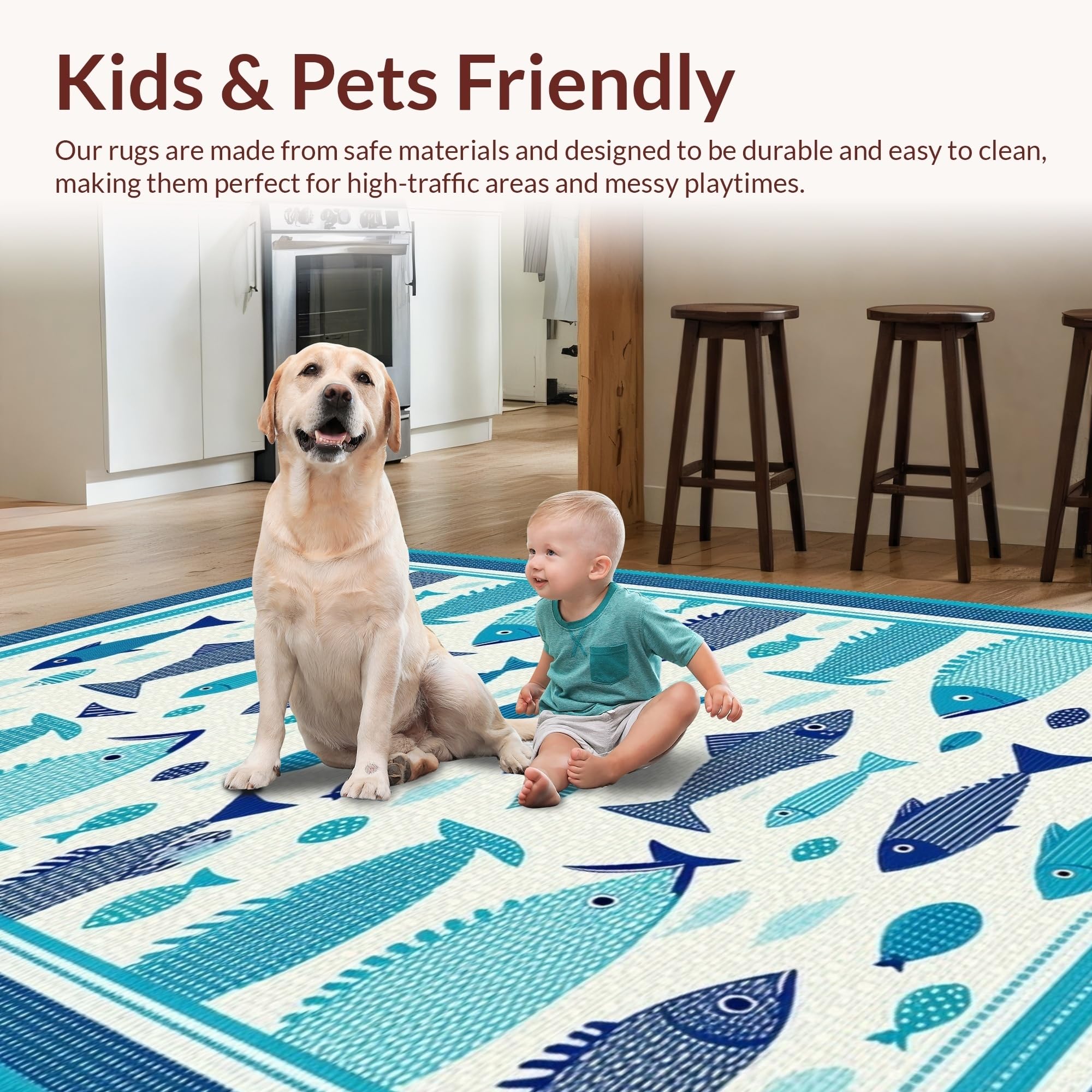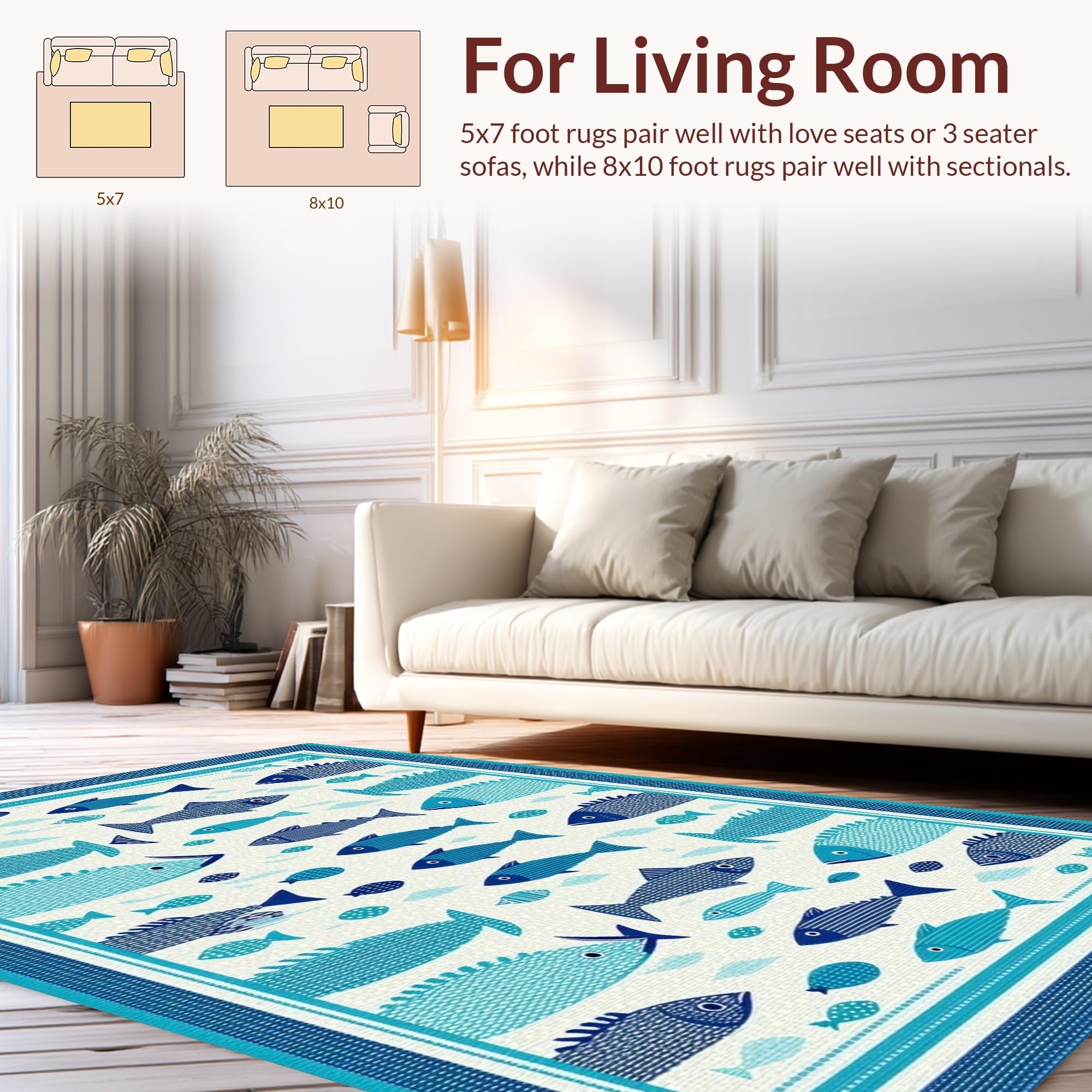 Ultra Soft Area Rug, Non Slip, Stain Resistant, Washable Area Rugs for Living Room, Bedroom, Fresh Bright Blue Aesthetic(Blue) Overview: