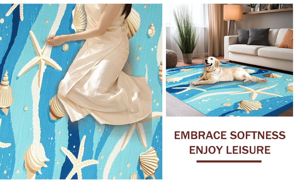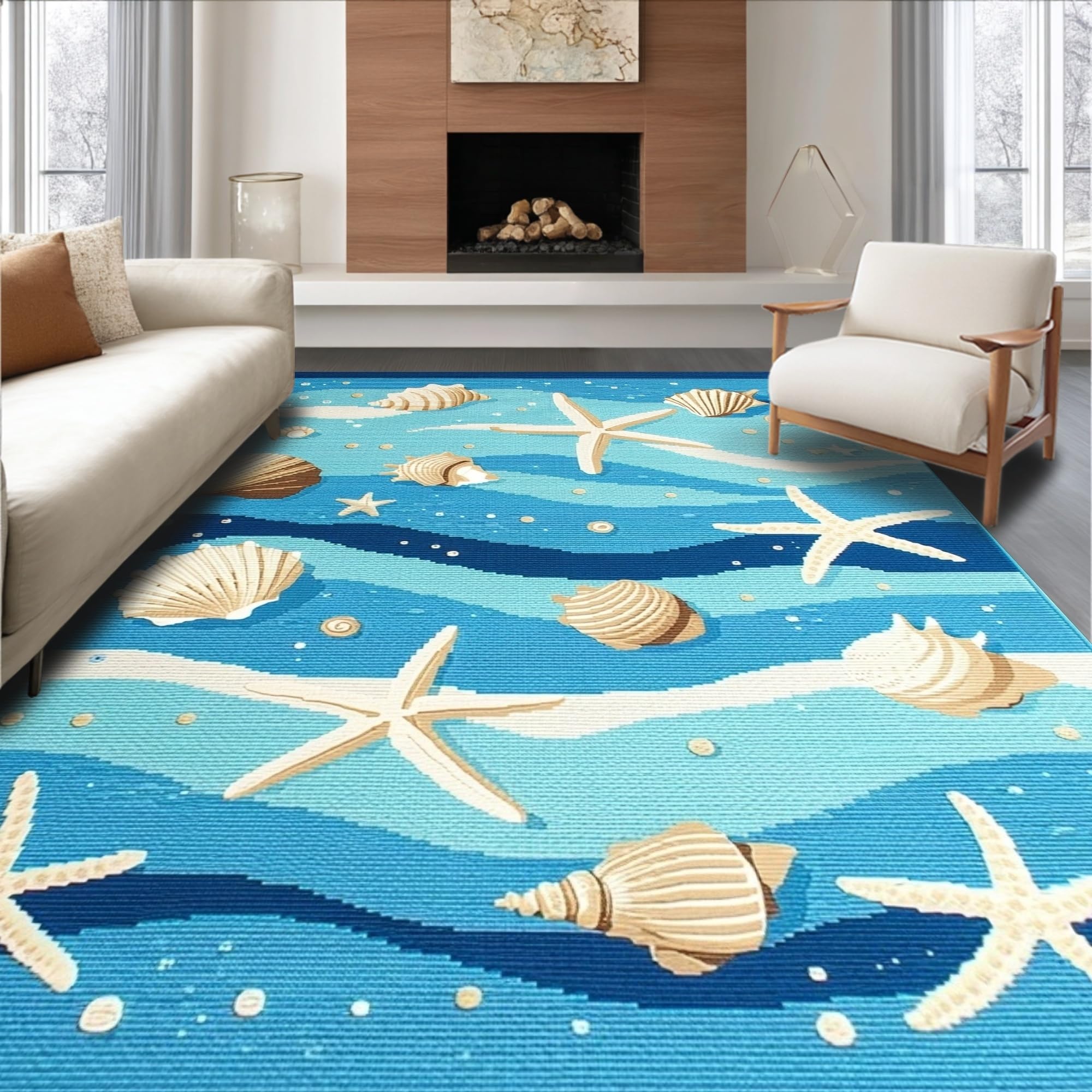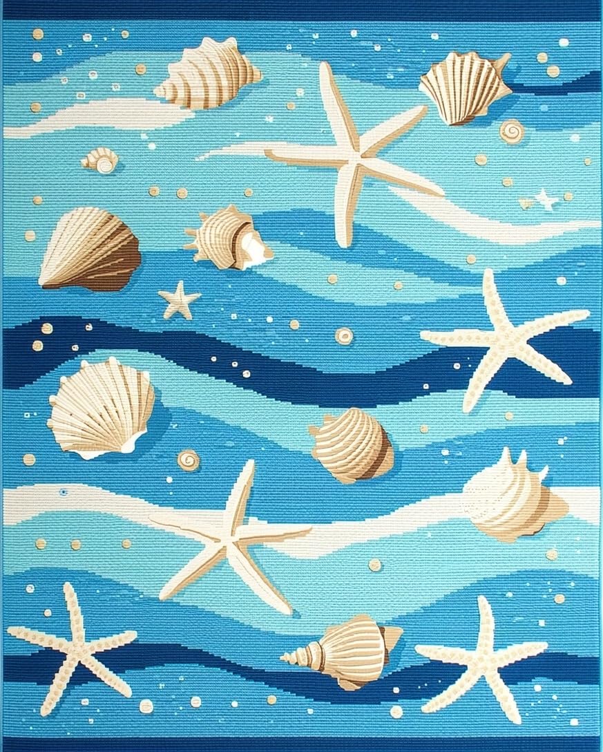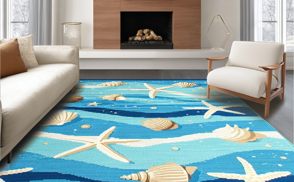 Ultra Soft Area Rug, Non Slip, Stain Resistant, Washable Area Rugs for Living Room, Bedroom, Fresh Coastal Breeze Inspired Look(Blue) Overview: