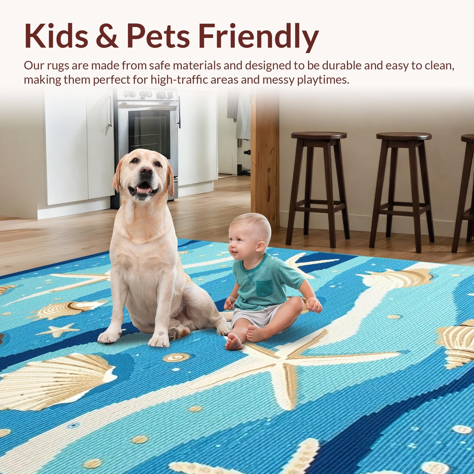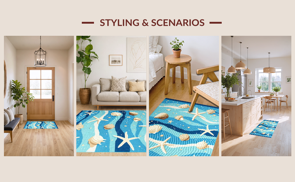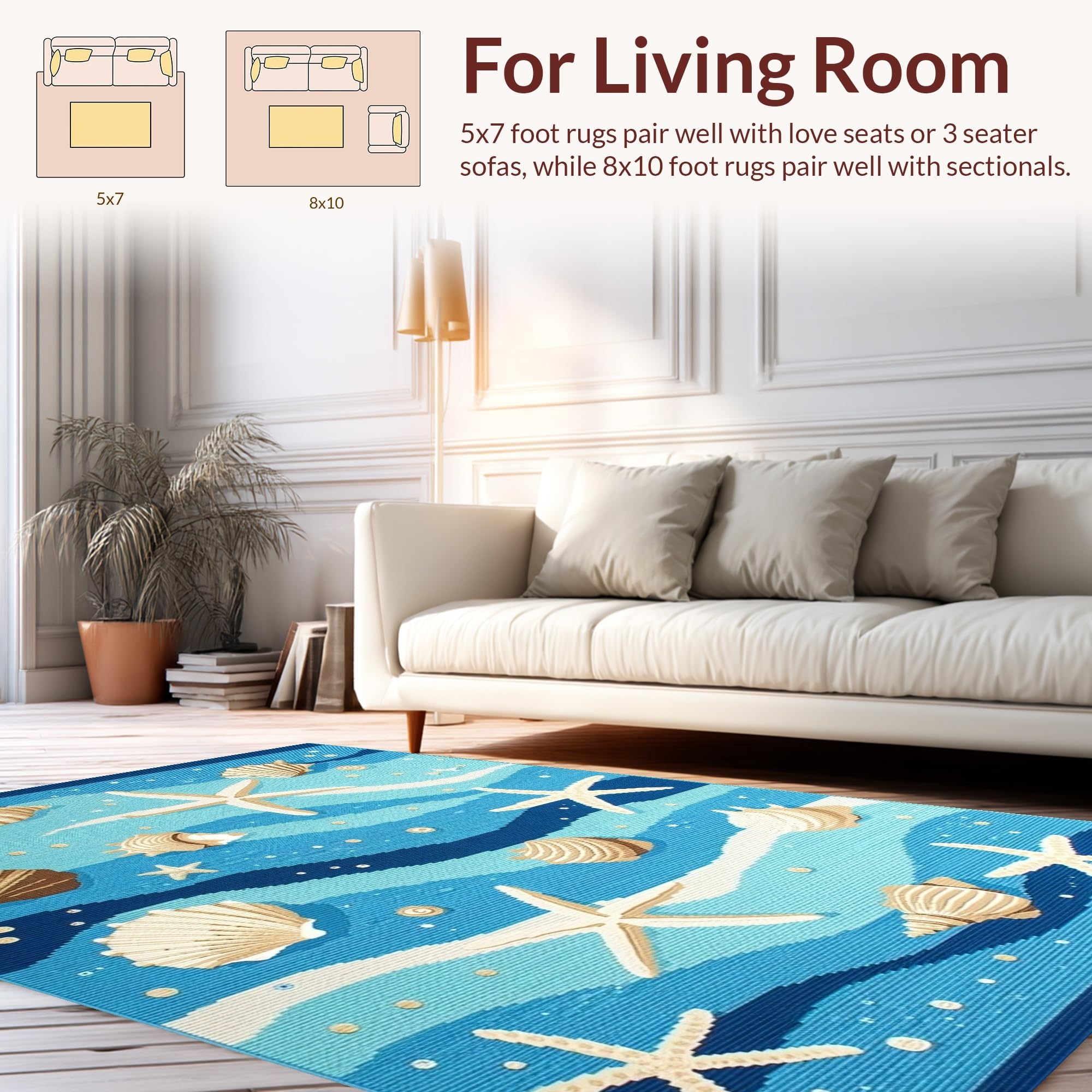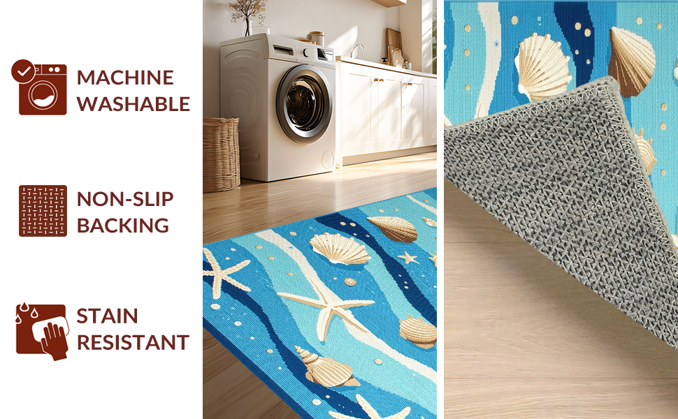 Ultra Soft Area Rug, Non Slip, Stain Resistant, Washable Area Rugs for Living Room, Bedroom, Fresh Coastal Breeze Inspired Look(Blue) Overview: