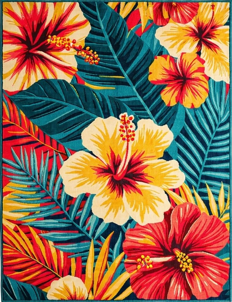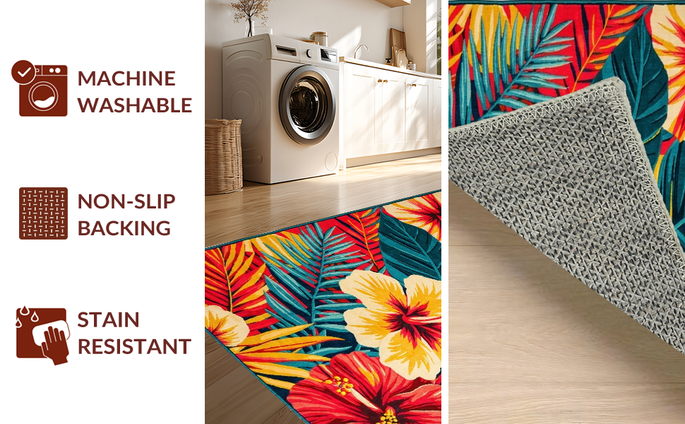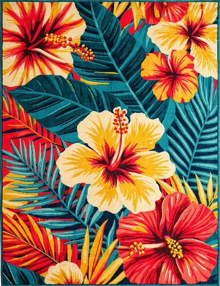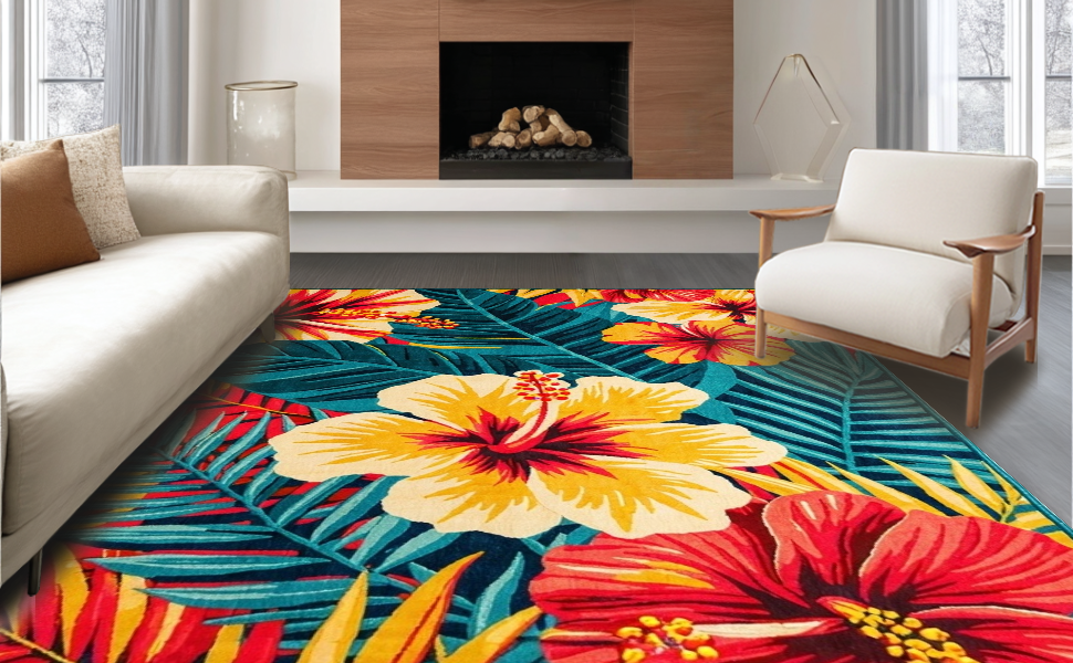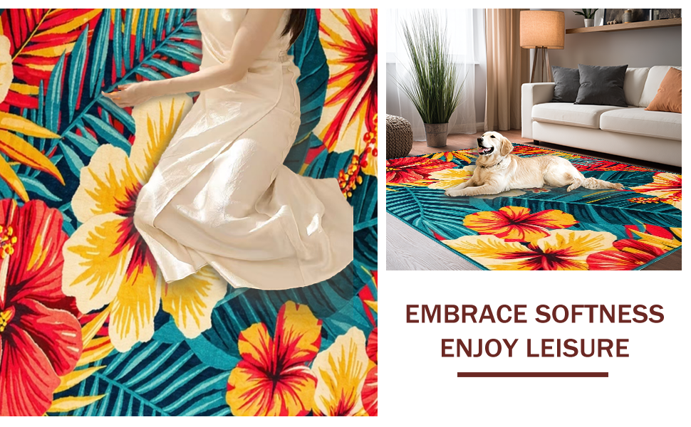 Ultra Soft Area Rug, Non Slip, Stain Resistant, Washable Area Rugs for Living Room, Bedroom, Fresh Coastal Inspired Floral Theme(Red) Overview: