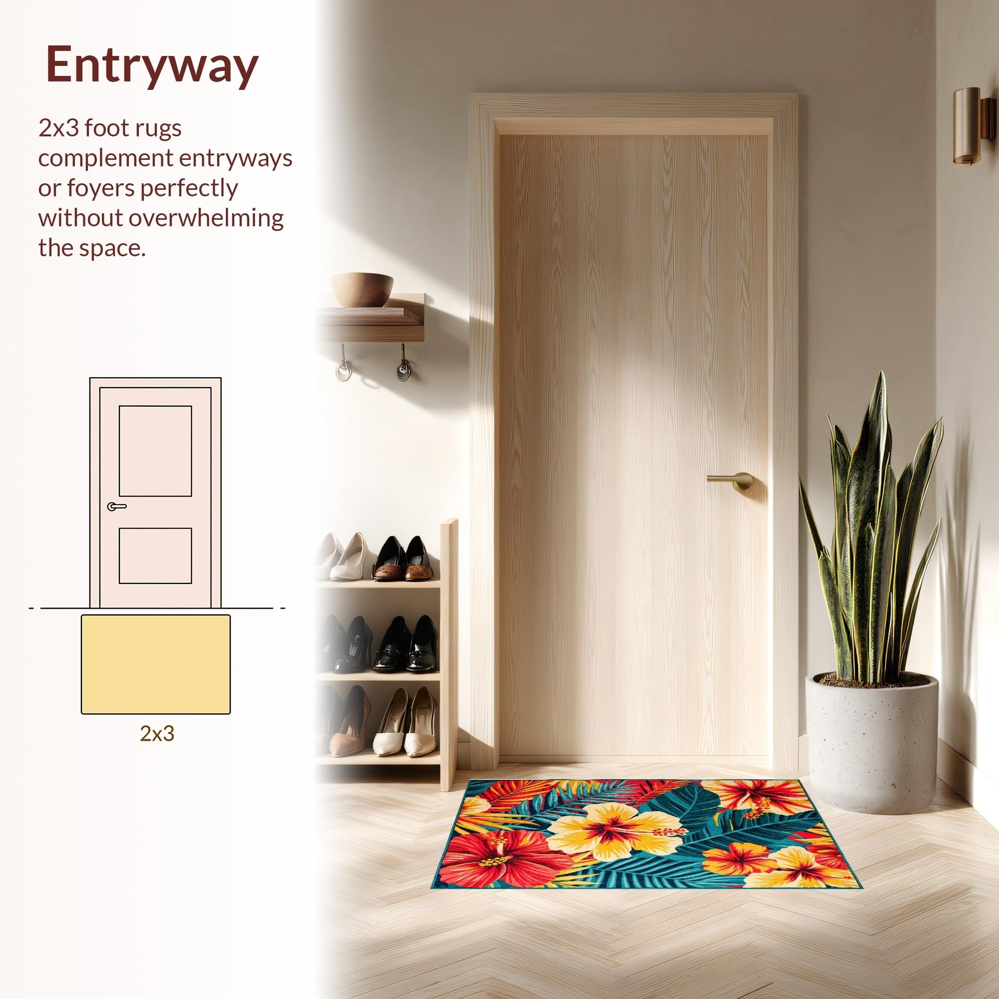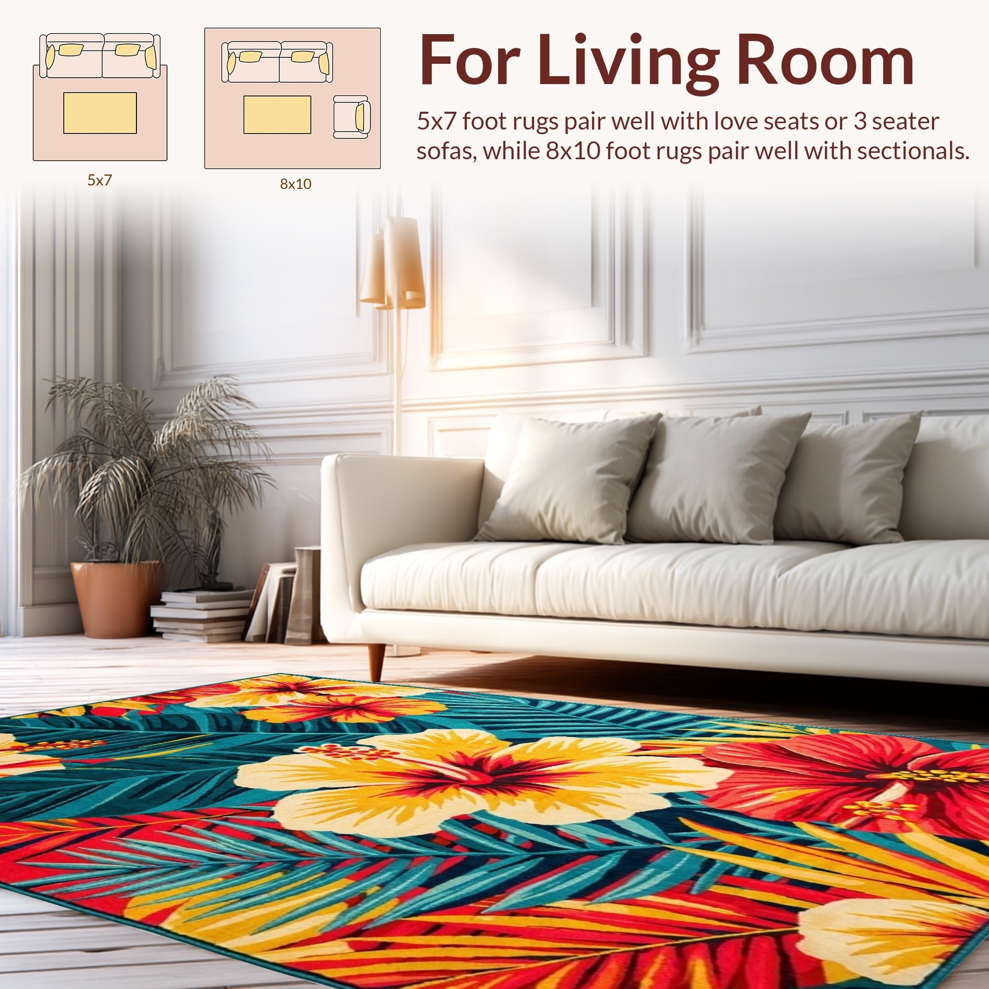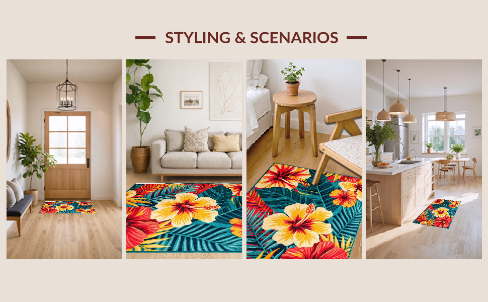 Ultra Soft Area Rug, Non Slip, Stain Resistant, Washable Area Rugs for Living Room, Bedroom, Fresh Coastal Inspired Floral Theme(Red) Overview: