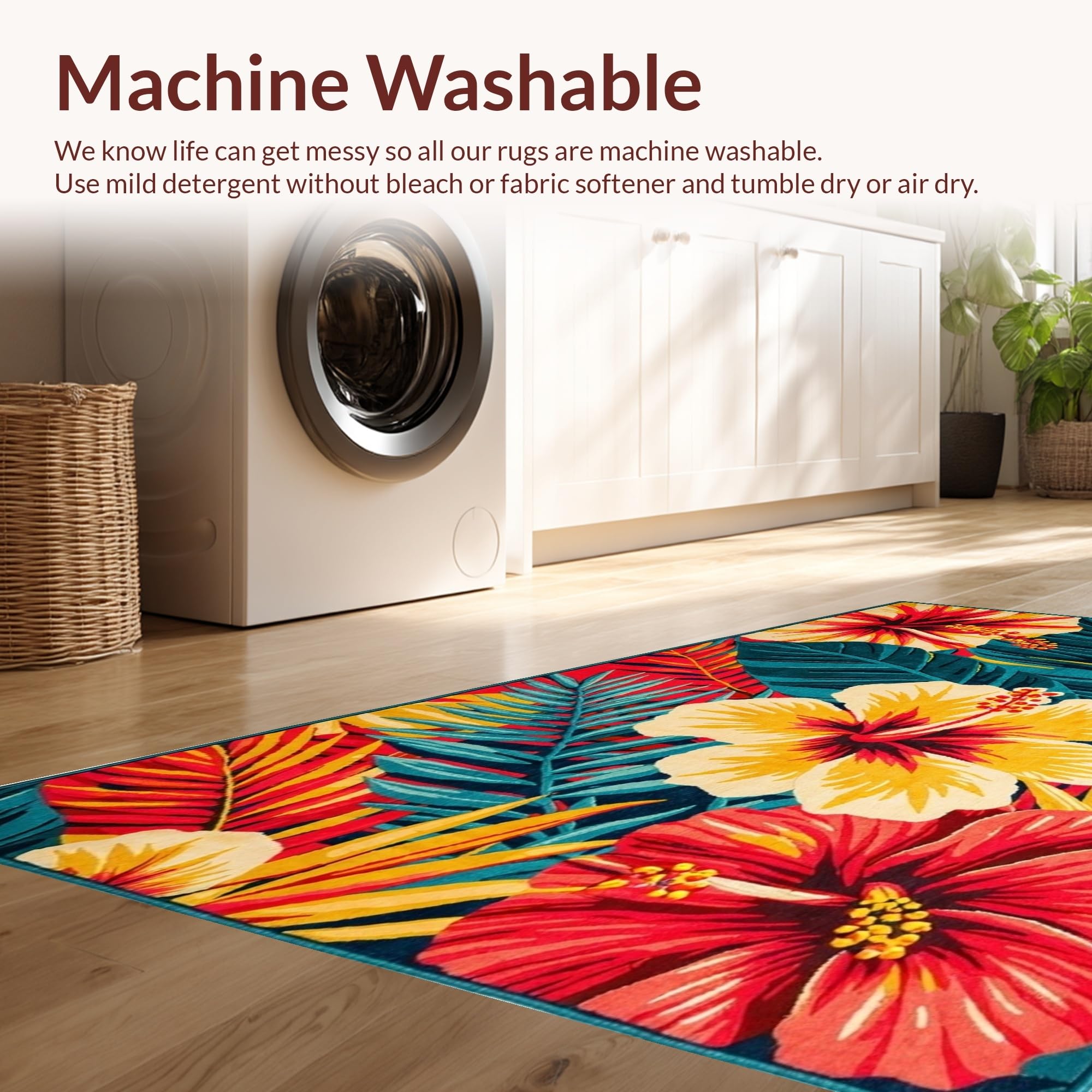 - Machine Washable: Our rugs can be easily thrown in the wash machine.