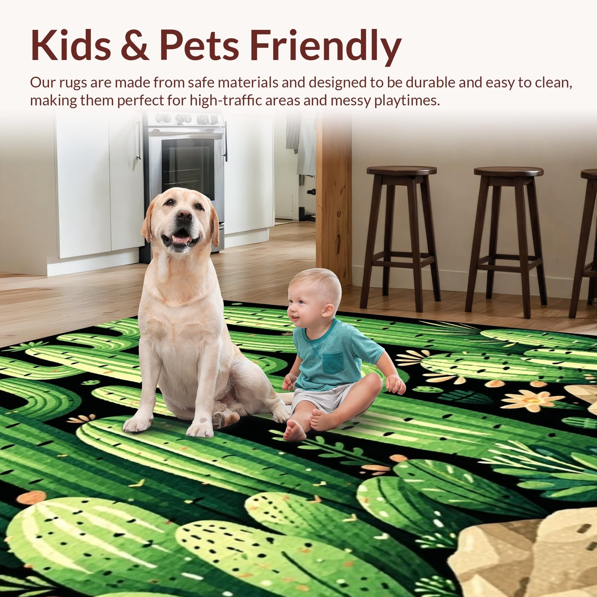 Ultra Soft Area Rug, Non Slip, Stain Resistant, Washable Area Rugs for Living Room, Bedroom, Fresh Contemporary Botanical Touch(Green) Overview: