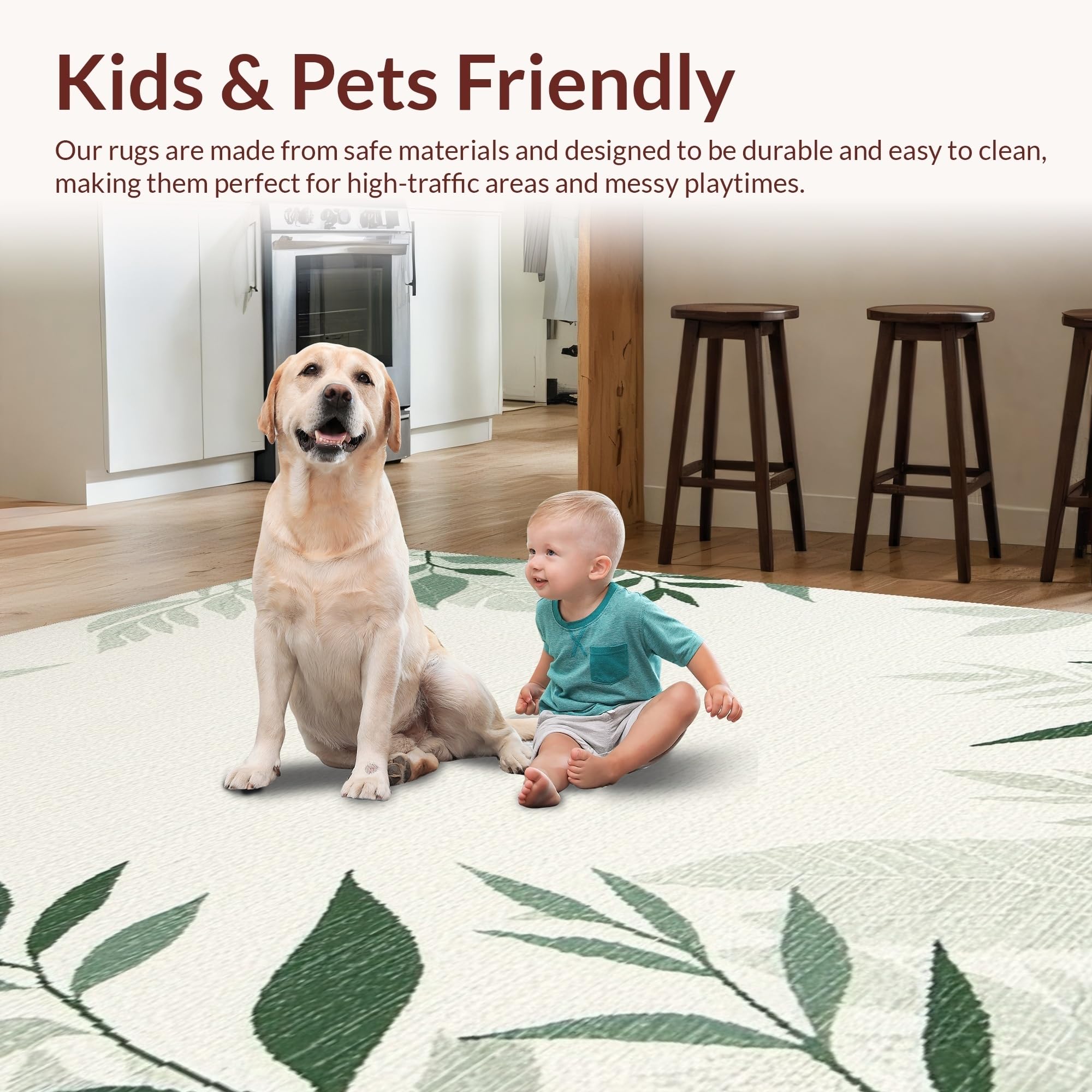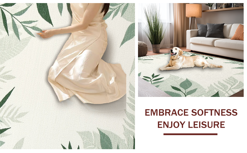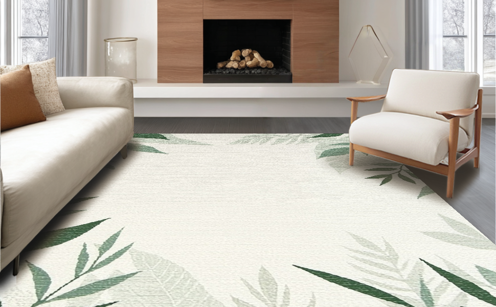 Ultra Soft Area Rug, Non Slip, Stain Resistant, Washable Area Rugs for Living Room, Bedroom, Fresh Contemporary Leaf Composition(Beige) Overview: