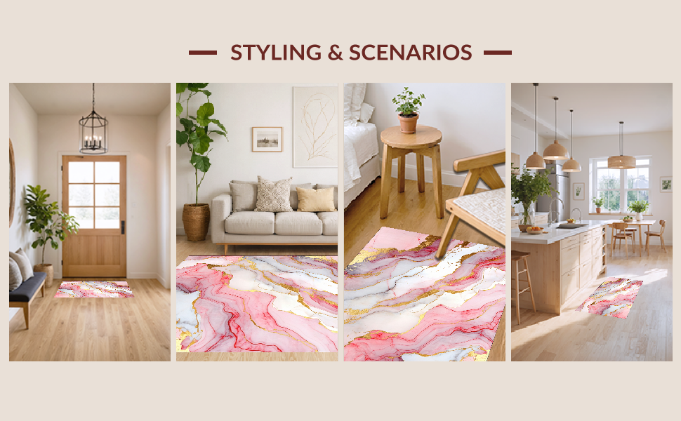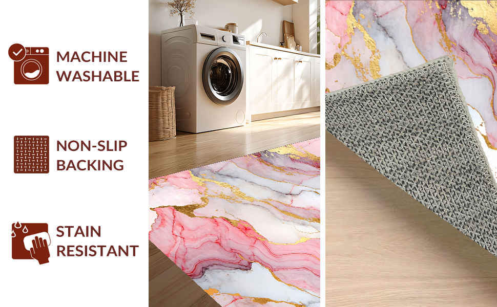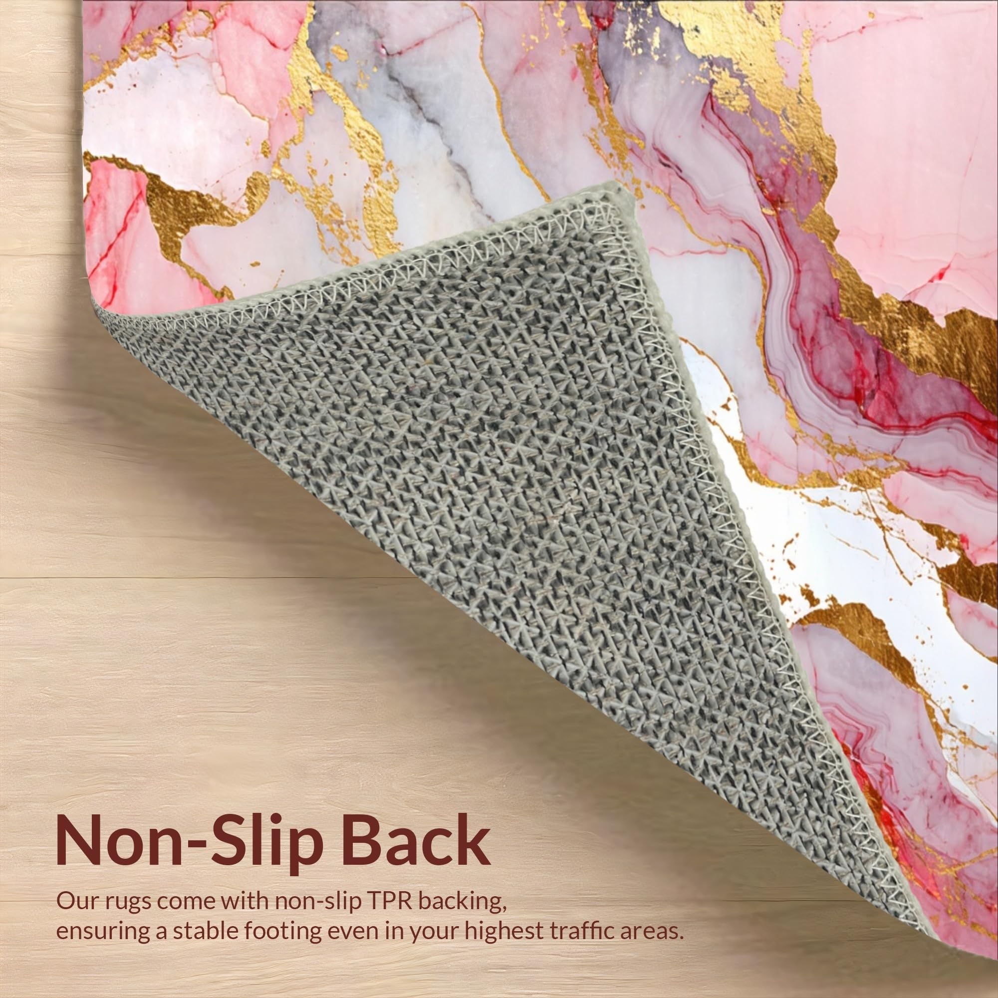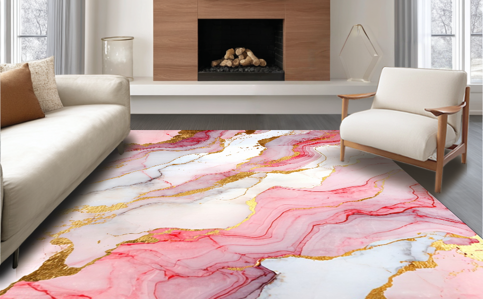 Ultra Soft Area Rug, Non Slip, Stain Resistant, Washable Area Rugs for Living Room, Bedroom, Fresh Contemporary Marble Visuals(Pink) Overview: